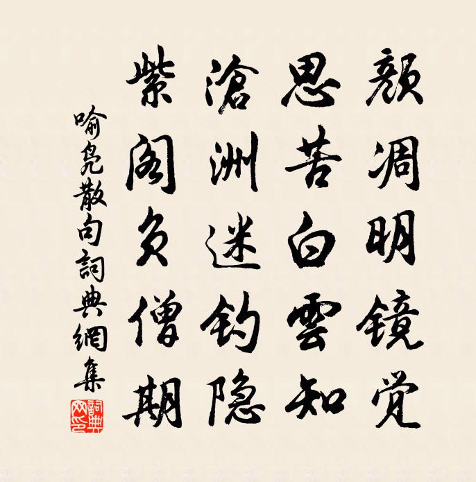 詩詞名句歷史字典書法欣賞書法字典國語詞典說文解字康熙字典古漢語字典標 題 作 者 詩 句 句作者:喻鳧 朝代:唐代句原文顏凋明鏡覺,思苦白雲知。滄洲迷釣隱,紫閣負僧期。詩詞問答問:句的作者是誰?答:喻鳧問:句寫於哪個朝代?答:唐代問:句是什麼體裁?答:句喻鳧句書法欣賞句書法作品注釋全唐詩:卷543-64詩詞推薦丁都護歌 ( 都一作督 )李白〔唐代〕雲陽上征去,兩岸饒商賈。吳牛喘月時,拖船一何苦。水濁不可飲,壺漿半成土。一唱督護歌,心摧淚如雨。萬人賀吉州李守臘雪楊萬里〔宋代〕仁侯妙手作廬陵,民歌敏惠如神明。歌聲動天天降瑞,一夜幻出瓊瑤城。麗譙一新玉樓觀,郡治別起銀設廳。曉上新居用韓昌黎詩辛勤三十年以有此屋廬為韻蔡戡〔宋代〕晏子近囂塵,蕭何處窮僻。我居城市間,而有山林適。一水帶清泚,萬竹環翠密。亦足了此生,人壽稀七十。錢塘晚望鄭協〔宋代〕錢塘江上夜潮過。秋靜寒煙白露多。吳越青山明月里,舟人齊唱異鄉歌。獨坐看海棠二絕王柏〔宋代〕沈香亭下太真妃,一笑嫣然國已危。當日杜陵深有恨,何心更作海棠詩。琴鶴二詩送賈治安同知 其二王冕〔元代〕宰宰華表鶴,古質清且閒。曠哉萬里懷,皓月同蹁躚。飢琢芝田春,渴飲瑤池泉。一鳴九皋遠,夢澆瓊華寒。下視王推官載酒來會於逍遙堂陳元晉〔宋代〕路入煙蘿杳靄中,良宵一笑美人同。壺觴盡攬平湖月,弦管時飄雖岸風。三宿未忘境地勝,一燈相對坐詩窮。姓名熙寧蜡祭十三首佚名〔宋代〕於穆明祀,莫如報功。靈之利澤,惠我無窮。齊以條志,幣以過衷。撫寧四極,永錫登豈。次韻林梅卿尚書新塘之什黃公度〔宋代〕翬翼東西勢欲翔,高懷卜築白雲鄉。蝦須半卷山排闥,屬玉雙飛水拍塘。天上功名身未老,年來邱壑意何長。萬間有感王冕〔元代〕春風花開洛陽縣,此處與子初相見。亂離相去五十秋,我□星星子皺面。莫言今日重淒涼,且說當年與華宴。細腰殘絲曲盧郢〔宋代〕春風駘蕩吹人衣,殘絲罥花曳空飛。間愁十丈斷不得,雄蜂雌蝶相因依。高樓夾路凌雲起,瑣窗鸞柱彈流水。鸞聲寄贈柳殿院開授崇儀使赴邊上潘閬〔宋代〕從來長見說兵機,今日君恩志豈違。驄馬不騎騎鐵馬,繡衣休掛掛戎衣。雄師已聽心皆伏,醜虜將聞魄盡飛。應笑璉監寺1釋紹曇〔宋代〕烹金爐里脫胚{左車右軍},妙斲初無爺鑿痕。汝質自成瑚璉器,我儂甘作破沙盆。凝露堂木犀惡人二首楊萬里〔宋代〕雪花四出剪鵝黃,金屑千麩糝露囊。看去看來能幾大,如何著得許多香。題張萱遊行士女圖宋光宗〔宋代〕閒來洞口訪劉君,緩步輕抬玉線裙。細白桃花擲流水,更無言語倚彤雲。金陵雜興二百首蘇泂〔宋代〕青帝言歸速駕忙,荼醾架底靜年芳。輕風乍染陰陰綠,微月低籠淡淡香。欲明韓偓〔唐代〕欲明籬被風吹倒,過午門因客到開。忍苦可能遭鬼笑,息機應免致鷗猜。岳僧互乞新詩去,酒保頻征舊債來。唯有又中秋分韻得處字高斯得〔宋代〕西風滌殘{俟左換火},秋水靜如濾。客心悲未央,感茲年芳去。聊攜池上酌,相與豁煩慮。我餚楚以陳,曾未舉道室述懷陸游〔宋代〕養心功用在還嬰,肯使秋毫有妄情?二寸藤冠狂道士,一編蠹簡老書生。狐妖從汝作人立,金價在吾如十輕。地肺孟子湍水陳普〔宋代〕湍水縈迴隨所決,亦須順道乃從流。若非所性元趨下,料可東西決得不。名句推薦論山水,則循聲而得貌;言節侯,則披文而見時。劉勰《文心雕龍·辨騷》 孤花片葉,斷送清秋節。納蘭性德《清平樂·孤花片葉》 秋草六朝寒,花雨空壇。朱彝尊《賣花聲·雨花台》 十輪霜影轉庭梧,此夕羈人獨向隅。晏殊《中秋月》 兩岸桃花烘日出,四圍高柳到天垂。一尊心事百年期。姜彧《浣溪沙·山滴嵐光水拍堤》 滿目飛花萬點,回首故人千里,把酒沃愁腸。葛長庚《水調歌頭·江上春山遠》 淅淅西風淡淡煙,幾點疏疏雨。葛立方《卜運算元·席間再作》 霸業成空,遺恨無窮。查德卿《蟾宮曲·懷古》 神女生涯原是夢,小姑居處本無郎。李商隱《無題·重幃深下莫愁堂》 掃眉才子知多少,管領春風總不如。王建《寄蜀中薛濤校書》