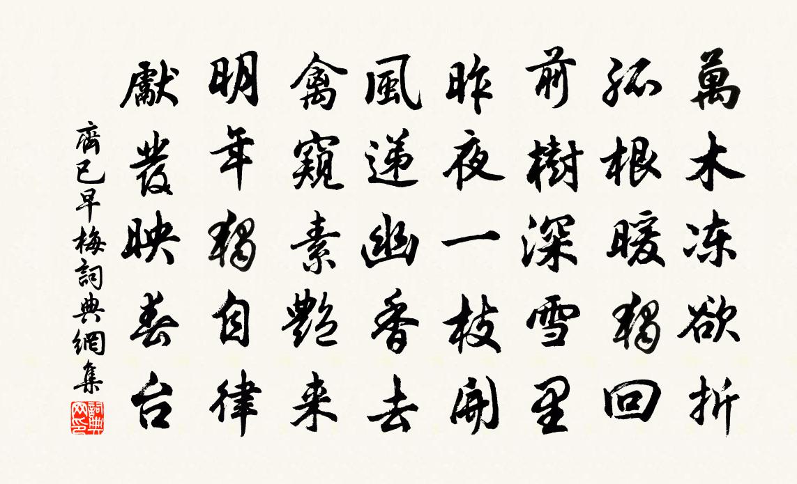 這是一首詠物詩。詩人以清麗的語言,含蘊的筆觸,刻畫了梅花傲寒的品性,素艷的風韻,並以此寄託自己的意志。其狀物清潤素雅,抒情含蓄雋永。