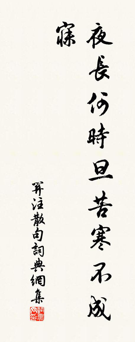 詩詞名句歷史字典書法欣賞書法字典國語詞典說文解字康熙字典古漢語字典標 題 作 者 詩 句 句作者:關注 朝代:宋代句原文夜長何時旦,苦寒不成寐。詩詞問答問:句的作者是誰?答:關注問:句寫於哪個朝代?答:宋代關注句書法欣賞句書法作品詩詞推薦與郭敬叔單煒〔宋代〕蘭亭一入昭陵後,筆法於今未易回。誰識定齋三昧筆,又傳璧拆到江梅。豐乾騎虎贊釋智遇〔宋代〕萬德不將來,猛獸自馴伏。一嘯出林,陰風拔木。只知附掌放憨,不覺山青水綠。頌古三十一首釋如本〔宋代〕威音王佛是兒孫,王老當時開大言。黃蘗見機分主伴,典刑千古定宗門。雜賦陸游〔宋代〕夢裡曾作南柯守,少時元是東陵侯。今朝半醉歸草市,指點青簾上酒樓。題滕學士九華山書堂梅堯臣〔宋代〕處山方畏淺,曾慕結深廬。要與雲峰近,寧將野客疏。澗苗來入俎,林鳥或窺書。何事輕茲樂,而從出塞車。感故府二首李建勛〔唐代〕戚戚復戚戚,期懷安可釋。百年金石心,中路生死隔。新墳應草合,舊地空苔色。白日燈熒熒,凝塵滿幾席。悒悒夜泊湖上韓維〔宋代〕春風淡無力,池色晚更靜。人歸簫鼓歇,月出樓觀迥。驚鷗啄浮星,游鯉下明鏡。誰當拿畫船,徹夕縱孤泳。相和歌辭。襄陽曲施肩吾〔唐代〕大堤女兒郎莫尋,三三五五結同心。清晨對鏡冶容色,意欲取郎千萬金。樂府雜擬黃彥平〔宋代〕用意崎嶇外,人貴真相知。張耳望陳餘,汲黯是魏其。所謂刎頸交,首身果不隨。太行摧車險,蜀道登天危。坐度送友人宰潯陽杜荀鶴〔唐代〕高興那言去路長,非君不解愛潯陽。有時猿鳥來公署,到處煙霞是道鄉。釣艇滿江魚賤菜,紙窯連岳楮多桑。陶潛嶺外出巡曾幾〔宋代〕嶺外身逾老,江南首重回。有猿啼夢破,無雁寄書來。山雨晴猶濕,蠻煙晝不開。如何緣許事,奪我手中杯。送春林景熙〔宋代〕蜀魄聲聲訴綠陰,誰家門巷落花深。遊絲不系春暉住,愁絕天涯寸草心。定風波(魯卿見和,復答之)葉夢得〔宋代〕斜漢初看素月流。坐驚金餅出雲頭。華發蕭然吹素領。光景。何妨分付屬滄洲。莫待霜花飄爛漫。苹岸。更憑佳句酬次李辰甫所寄三首吳說〔宋代〕扁舟東下初乘興,明月南飛竟失群。田父語言時近道,世人嘲笑尚論文。九山斂氣橫寒野,一塢朝陽聚暖雲。勝處塞外寄張侍御姚鵠〔唐代〕千里入黃雲,羈愁日日新。疏鐘關路曉,遠雨寒山春。南眺有歸雁,北來無故人。卻思陪宴處,回望與天鄰。答日休皮字詩歸氏子〔唐代〕八片尖裁浪作球,火中燖了水中揉。一包閒氣如長在,惹踢招拳卒未休。挽虞滄江提刑三首李曾伯〔宋代〕自得滄江勝,歸來伴鶴龜。晚年尤好易,暇日且論詩。欲問更生佛,非關二豎醫。諸生毋試袂,公訓有餘師。簡韓仲朋朱翌〔宋代〕老范好客老更豪,長恨無人陪痛飲。我嘗解帶坐南軒,閉門投轄則大窘。小韓雲是故人子,酒量直須吞萬頃。昨宵□□□王質〔宋代〕夜茫茫,春寂寂。寒煙叫裂空山石。吸盡東風,化作垂紅滴。漏將闌,情轉極。月明繞樹聲聲急。無數閒花,盡染題雲夢亭崔櫓〔唐代〕薄煙如夢雨如塵,霜景晴來卻勝春。好住池西紅葉樹,何年今日伴何人。名句推薦詩成自寫紅葉,和恨寄東流。晏幾道《訴衷情·憑觴靜憶去年秋》 不管垂楊珠淚進,滴碎荷聲千頃。王夫之《清平樂·詠雨》 等閒變卻故人心,卻道故人心易變。納蘭性德《木蘭花·擬古決絕詞柬友》 揚子江頭楊柳春,楊花愁殺渡江人。鄭谷《淮上與友人別》 歲暮遠為客,邊隅還用兵。杜甫《歲暮》 且欲近尋彭澤宰,陶然共醉菊花杯。崔曙《九日登望仙台呈劉明府容》 帝里重清明,人心自愁思。孟浩然《清明即事》 背若泰山,翼若垂天之雲。莊周《逍遙遊(節選)》 閒碾鳳團消短夢,靜看燕子壘新巢。周邦彥《浣溪沙·水漲魚天拍柳橋》 把酒送君天上去,瓊玉琚玉佩軝鴻列。嚴羽《滿江紅·送廖叔仁赴闕》
