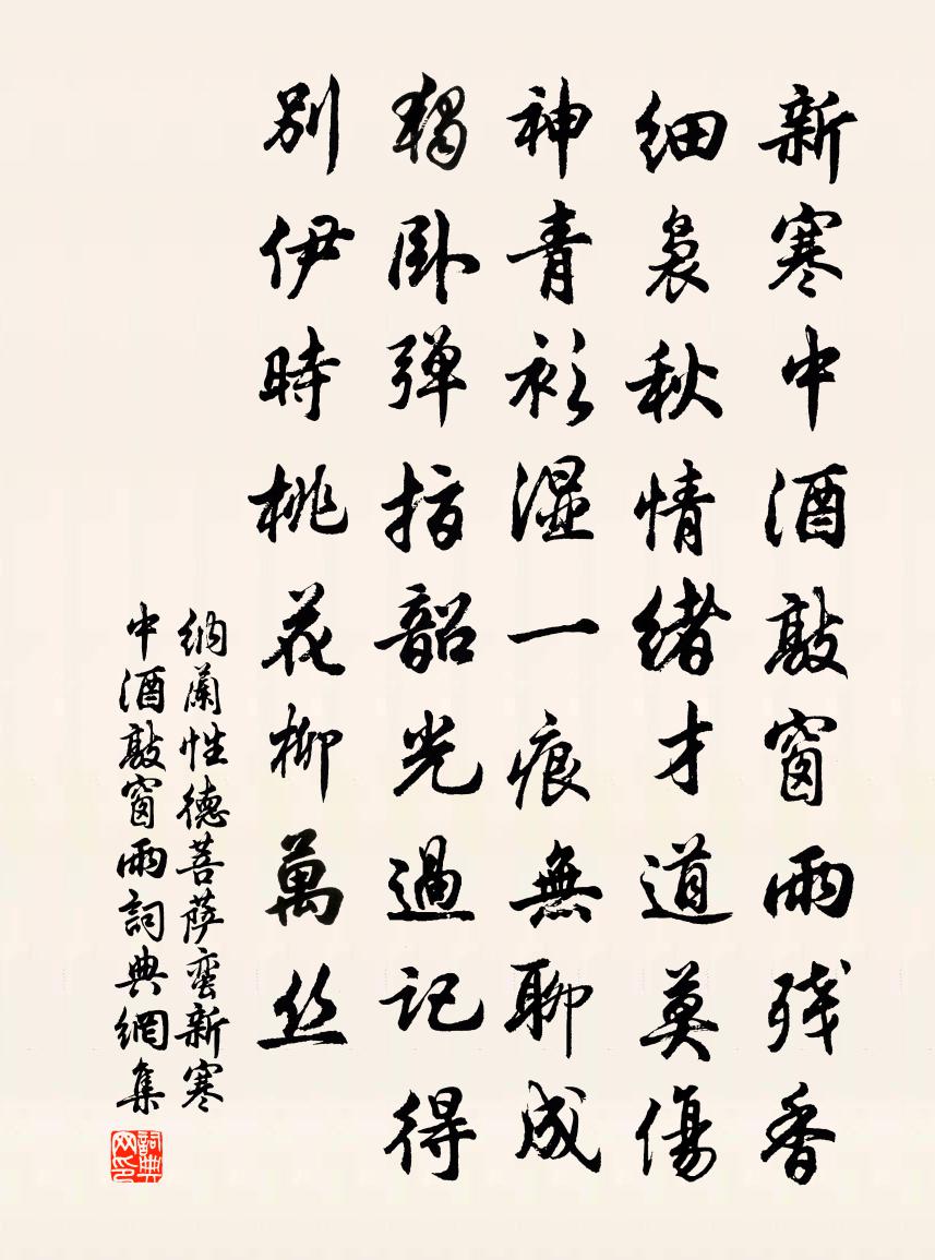 納蘭性德菩薩蠻·新寒中酒敲窗雨書法欣賞