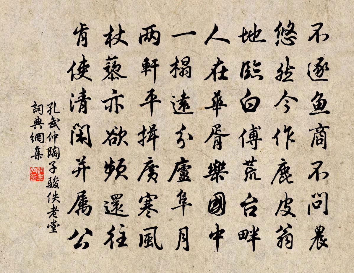 詩詞名句歷史字典書法欣賞書法字典國語詞典說文解字康熙字典古漢語字典標 題 作 者 詩 句 陶子駿佚老堂作者:孔武仲 朝代:宋代陶子駿佚老堂原文不逐魚商不問農,悠然今作鹿皮翁。地臨白傅荒台畔,人在華胥樂國中。一榻遠分廬阜月,兩軒平揖廣寒風。杖藜亦欲頻還往,肯使清閒並屬公。詩詞問答問:陶子駿佚老堂的作者是誰?答:孔武仲問:陶子駿佚老堂寫於哪個朝代?答:宋代孔武仲陶子駿佚老堂書法欣賞陶子駿佚老堂書法作品詩詞推薦秋日野步和王覺民十六首王之道〔宋代〕人言會飲辰嫌西,我為求醫日問除。老去誰能遵百忌,秋來只欲上三書。別陳少卿鄧肅〔宋代〕平生杯酒百無憂,四海風流陳太丘。據景筆端凌鮑謝,當年門下得伊周。那知避世嶔{上山下欹}跡,也許從公汗劉太尉輓歌辭陸游〔宋代〕羌胡忘覆育,師旅備非常。南服更旄節,中軍鑄印章。馳書諭燕趙,開府冠侯王。赫赫今何在,門庭冷似霜。拙庵白玉蟾〔宋代〕笑攜藜杖倚寒松,現世神仙一拙翁。冠簡投關離玉闕,天人推出鎮琳宮。身居星弁霞裾上,心在煙都月府中。豈是伯夷列傳司馬遷〔兩漢〕夫學者載籍極博。尤考信於六藝。《詩》、《書》雖缺,然虞、夏之文可知也。堯將遜位,讓於虞舜,舜、禹之間偈二十七首釋守淨〔宋代〕我有折腳鐺,三子共提掇。一著一著高,一步一步闊。從此活業興,清風動寥泬。夜半放烏雞,頭上一點雪。聞文潛舍人出試院約毅父考功尋春晁補之〔宋代〕上界官府多文書,我臞猶比山澤儒。閒忙態異亡羊等,一月不見霜侵須。雖無京兆白花瀝,還有太官青玉壺。武安余作生墳何生謙致檜十株答以六言二首劉克莊〔宋代〕一奴荷鍤足矣,二客穿塚誰哉。宰上又添十檜,庭前不必三槐。重約游山董嗣杲〔宋代〕江州廬山陰,萬象蘊奇秘。笑扶鬼面行,趁雲步幽邃。虎跡過溪明,龍氣蟠松翠。香爐紫煙合,燦若金布地。諸佛浪淘沙(朱都大和荊州作,次韻謝之)丘崈〔宋代〕瀟灑五湖仙。踏遍塵寰。吟喔長憶兩松閒。邂逅天涯還一笑,璧合珠連。風采照衰殘。妙語冷然。妓圍香暖簇金蟬寄是正字王昌齡〔唐代〕正字芸香閣,經過宛如昨。幽人竹桑園,歸臥寂無喧。高鳥能擇木,羝羊漫觸藩。物情今已見,從此欲無言。[一次韻林參議小雪快晴喻良能〔宋代〕著地晶瑩月在沙,忍寒聊作短歌夸。暖肌未辦裁駝褐,露趾唯應有革鞾。細點竹梢添爽灑,偶經梅蕊映橫斜。何當春秋戰國門章子周曇〔唐代〕在家能子必能臣,齊將功成以孝聞。改葬義無欺死父,臨戎安肯背生君。玉葉重黃晁端禮〔宋代〕玉纖初拈梅花蕊。早憶著、上元天氣。重尋舊曲聲韻,收拾放燈歡計。況人生、百歲能幾。任東風、笑我雙鬢里。刈獲後書事陸游〔宋代〕鄰里西成例少蘇,貧家生業得徐圖。雖非五鼎豈無食,未辦復褌猶著襦。牢彘漸肥堪奉祭,耕牛已買不求租。卻思鍾陵秋夜陳陶〔唐代〕洪崖嶺上秋月明,野客枕底章江清。蓬壺宮闕不可夢,一一入樓歸雁聲。題寶雞縣斯飛閣蘇軾〔宋代〕西南歸路遠蕭條,倚檻魂飛不可招。野闊牛羊同雁鶩,天長草樹接雲霄。昏昏水氣浮山麓,泛泛春風弄麥苗。誰使段宥廳孤桐王昌齡〔唐代〕鳳凰所宿處,月映孤桐寒。槁葉零落盡,空柯蒼翠殘。虛心誰能見,直影非無端。響發調尚苦,清商勞一彈。次韻題琴譜三首汪炎昶〔宋代〕三峽嗁猿恨滿編,樂於此外本來全。累雖獨泥調兼操,高在已忘徵與弦。紙上陳言奚足恃,指間妙趣不容傅。須知人日立春盧仝〔唐代〕春度春歸無限春,今朝方始覺成人。從今克己應猶及,顏與梅花俱自新。名句推薦用兵之道,先勝後戰。陳壽《三國志·魏書·荀彧攸賈詡傳》 隋堤上、曾見幾番,拂水飄綿送行色。周邦彥《蘭陵王·柳》 所作福德不應貪著。鳩摩羅什譯《金剛經·不受不貪》 池台竹樹三畝餘,至今人道江家宅。劉禹錫《金陵五題·並序》 盈盈一水間,脈脈不得語。佚名《迢迢牽牛星》 起來搔首,梅影橫窗瘦。汪藻《點絳唇·新月娟娟》 砌下落花風起,羅衣特地春寒。馮延巳《清平樂·雨晴煙晚》 可堪更近乾龍節,眼中淚盡空啼血向子諲《秦樓月·芳菲歇》 天涯海角悲涼地,記得當年全盛時。趙鼎《鷓鴣天·建康上元作》 心逐南雲逝,形隨北雁來。江總《於長安歸還揚州九月九日行薇山亭賦韻 / 長安九日詩》
