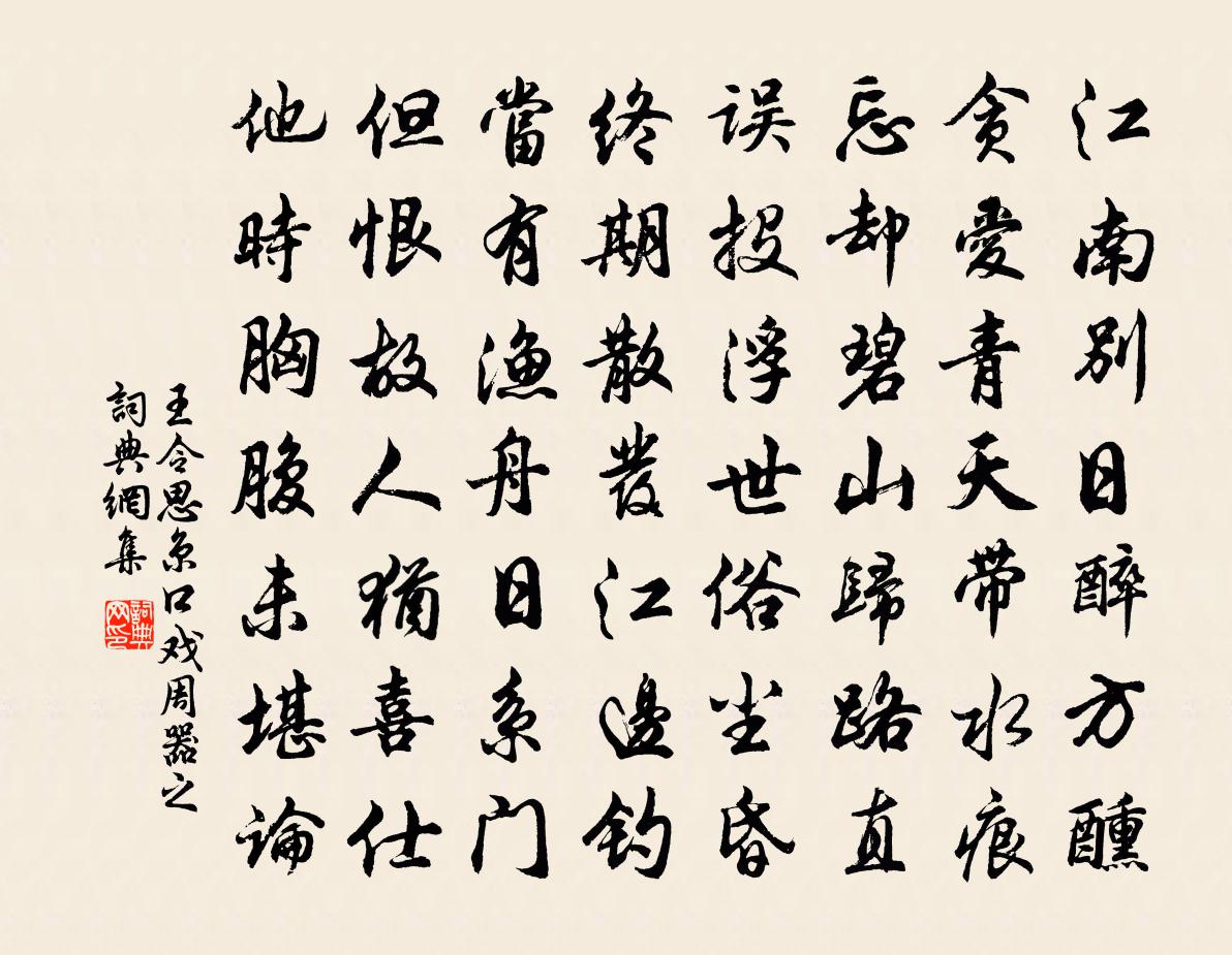 詩詞名句歷史字典書法欣賞書法字典國語詞典說文解字康熙字典古漢語字典標 題 作 者 詩 句 思京口戲周器之作者:王令 朝代:宋代思京口戲周器之原文江南別日醉方醺,貪愛青天帶水痕。忘卻碧山歸路直,誤投浮世俗塵昏。終期散發江邊釣,當有漁舟日系門。但恨故人猶喜仕,他時胸腹未堪論。詩詞問答問:思京口戲周器之的作者是誰?答:王令問:思京口戲周器之寫於哪個朝代?答:宋代王令思京口戲周器之書法欣賞思京口戲周器之書法作品詩詞推薦謝往桂林至彤庭竊詠李商隱〔唐代〕辰象森羅正,句陳翊衛寬。魚龍排百戲,劍佩儼千官。城禁將開晚,宮深欲曙難。月輪移枍詣,仙路下欄乾。共賀朝中措黃公度〔宋代〕屑瑤飄絮滿層空。人在廣寒宮。已覺樓台改觀,漸看桃李春融。一城和氣,賓筵不夜,舞態迴風。正是為霖手段,和陳待制江城畢工遇雪項安世〔宋代〕魚釜鶉衣救叔寒,犧樽羊餼度姑山。瑞花一夜圍青嶂,扶葉平明射白間。偏雨麥田知地瘠,怕冰戌土謝天慳。威稜途次口占三首蘇泂〔宋代〕鼓棹泛瀰茫,驅車道莽蒼。功名中底用,奔走為誰忙。白浪高揚子,青山入建康。從來懷古意,秋至轉悲涼。白髮嘆盧綸〔唐代〕發白曉梳頭,女驚妻淚流。不知絲色後,堪得幾回秋。途中詩楊奇鯤〔唐代〕(首缺二句)風裡浪花吹更白,雨中山色洗還青。海鷗聚處窗前見,林狖啼時枕上聽。此際自然無限趣,王程不敢福聖觀李建中〔宋代〕永懷間訪道,斗上上仙居。瀑水磬聲外,桂花林影疏。山名孫綽賦,觀額葛玄書。已負秋來約,誅茅興有餘。偈頌二十一首釋堅璧〔宋代〕皓月當空,寒江不動。萬里清光,曾非別共。蚌孕珠而無從,兔懷胎而非種。萬別千差,波騰海涌。卷舒只在一毫南嶽魏監廟曩自請奉祠恬於聲利十餘年來益閉牟巘五〔宋代〕人生一世匆匆爾,筵帙亡何已旅酬。南嶽爐頭芋初熟,等閒知閱幾春秋。疊韻春日雜興五首陳棣〔宋代〕經春衣帶剩,過午食簞垂。嫩綠方迷眼,輕黃未上眉。世情無足語,節物總堪詩。未展摶風翼,鷦鷯且一枝。送陳君舉守桂陽樓鑰〔宋代〕重尋漫壁認題名,十五年來一夢驚。誰料今朝攜客至,卻成此地送君行。桂陽臥治真談笑,魯史遺編賴發明。文定逍遙詠宋太宗〔宋代〕表里分明說,深窮妙更玄。愚迷行不到,聖事法中傳。真空本自然。今生隨曩劫,清淨照三天。最高樓(詠梅)陳亮〔宋代〕春乍透,香早暗偷傳。深院落,斗清妍。紫檀枝似流蘇帶,黃金須勝辟寒鈿。更朝朝,瓊樹好,笑當年。花不向沈李先生別墅望僧舍寶剎,因作雙韻聲溫庭筠〔唐代〕棲息消心象,檐楹溢艷陽。簾櫳蘭露落,鄰里柳林涼。高閣過空谷,孤竿隔古岡。潭廬同淡盪,仿佛復芬芳。欲棲烏宋祁〔宋代〕湘竿風急未成棲,御史台前見落暉。桂冷欲依秦氏宿,柳深先望白門歸。迎秋別恨填銀漢,未夜啼聲怨玉徽。悵望偈頌一百六十首釋宗杲〔宋代〕門外春將半,山房總不知。可憐拄杖子,暗裡自抽枝。興福寺真山民〔宋代〕為厭市喧雜,攜詩來此吟。鳥聲山路靜,花影寺門深。樓閣莊嚴界,池塘清淨心。松風亦好事,送客出前林。句陳瓘〔宋代〕拶破黃龍第四關,世人猶問生緣法。張章簡康寧帖贊岳珂〔宋代〕予官京口,前後十年,接公之枌榆兮。讀耆舊傳,慨想其人,莫覿其居兮。維帖之得,題標失真,幾以迷其初兮。書感楊再十一〔宋代〕潦倒江南一布衣,家貧歲晚寸心違。不堪倚仗楓江路,手種青松大十圍。名句推薦翻被梨花冷看,人生苦戀天涯。張炎《朝中措·清明時節》 山際見來煙,竹中窺落日。吳均《山中雜詩》 內不失真,而外不殊俗王通《中說·卷六·禮樂篇》 好水好山看不足,馬蹄催趁月明歸。岳飛《池州翠微亭》 家有千口,主事一人。佚名《增廣賢文·下集》 美人自刎烏江岸,戰火曾燒赤壁山,將軍空老玉門關。張可久《賣花聲·懷古》 善言天者必有徵於人,善言古者必有驗於今班固《漢書·傳·董仲舒傳》 乃知兵者是兇器,聖人不得已而用之。李白《戰城南》 靈山多秀色,空水共氤氳。張九齡《湖口望廬山瀑布泉 / 湖口望廬山瀑布水》 正蹇驢吟影,茶煙灶冷,酒亭門閉。吳文英《無悶·催雪》
