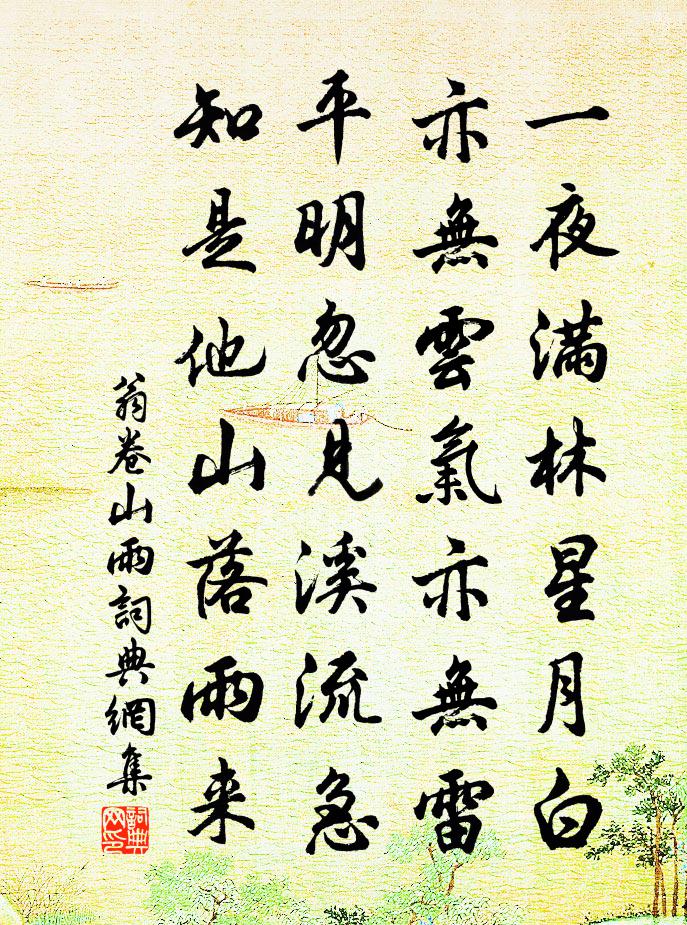 一夜滿林星月白,亦無雲氣亦無雷。平明忽見溪流急,知是他山落雨來。