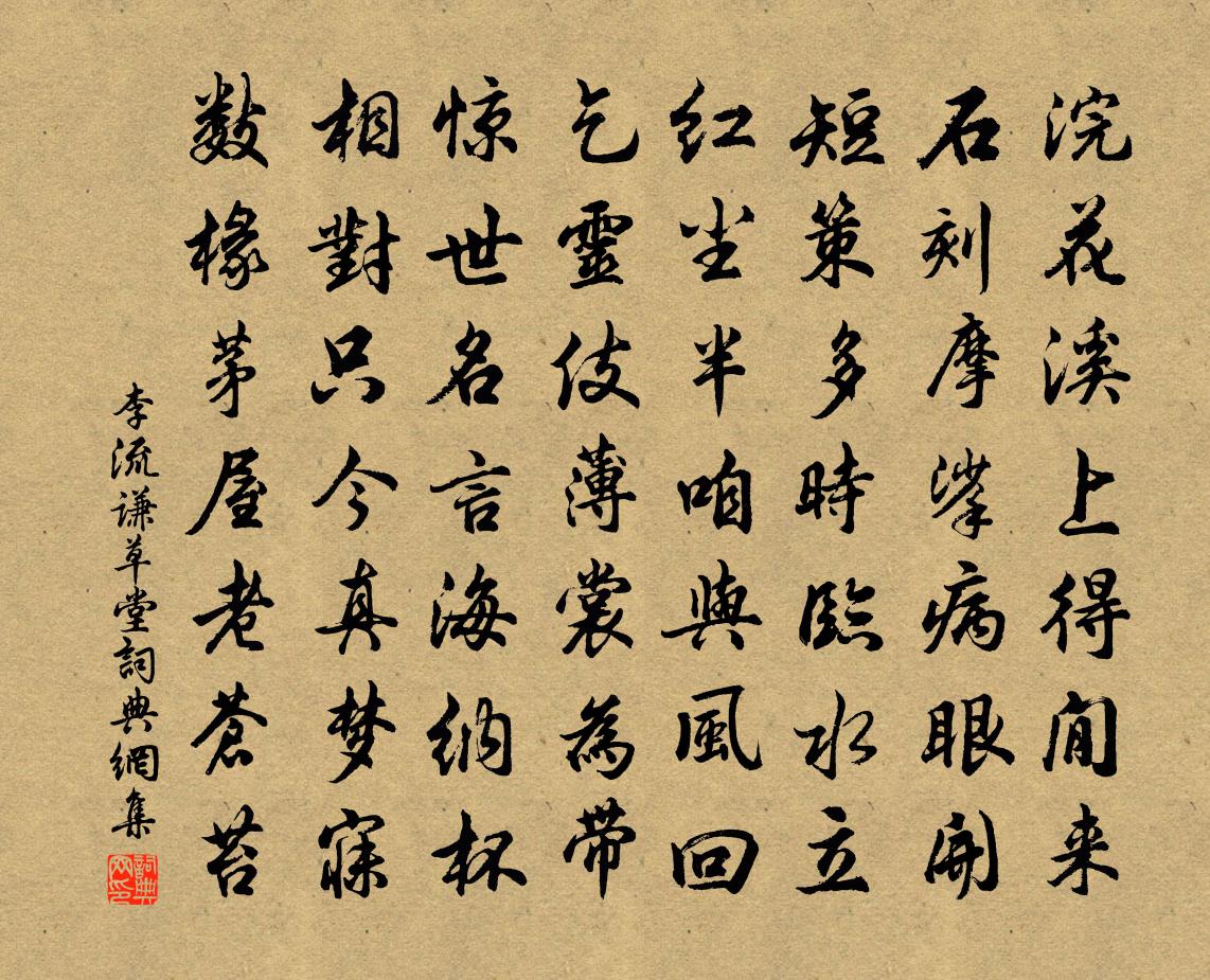 詩詞名句歷史字典書法欣賞書法字典國語詞典說文解字康熙字典古漢語字典標 題 作 者 詩 句 草堂作者:李流謙 朝代:宋代草堂原文浣花溪上得閒來,石刻摩挲病眼開。短策多時臨水立,紅塵半咱與風回。乞靈伎薄裳為帶,驚世名言海納杯。相對只今真夢寐,數椽茅屋老蒼苔。詩詞問答問:草堂的作者是誰?答:李流謙問:草堂寫於哪個朝代?答:宋代李流謙草堂書法欣賞草堂書法作品詩詞推薦幽澗泉李白〔唐代〕拂彼白石,彈吾素琴。幽澗愀兮流泉深,善手明徽高張清。心寂歷似千古,松颼飀兮萬尋。中見愁猿弔影而危處兮武夷楊希古〔宋代〕萬壑千岩疊翠微,幔亭紅日浸漣漪。紫陽去後無訊息,留得溪山九曲詩。因覽仰山小釋迦語成唱道二首釋正覺〔宋代〕一念全超曠劫初,玉人端坐白牛車。往來歷盡傍參妙,回首途中物物渠。又次韻帥初諸前七首陳著〔宋代〕幻景為生何短長,痴人得夢亦推詳。餐英漫效獨清屈,飲乳誰皆百世蒼。七夕泛舟盧照鄰〔唐代〕鳳杼秋期至,鳧舟野望開。微吟翠塘側,延想白雲隈。石似支機罷,槎疑犯宿來。天潢殊漫漫,目暮獨悠哉。送王七錄事赴虢州岑參〔唐代〕早歲即相知,嗟君最後時。青雲仍未達,白髮欲成絲。小店關門樹,長河華岳祠。弘農人吏待,莫使馬行遲。冬至日作蘇轍〔宋代〕羲和飛轡留不住,小兒逢節喜欲舞。人言老翁似小兒,烝豚釀酒多為具。潁川本自非吾鄉,鄰里十年成舊故。誰令簡全真二首趙蕃〔宋代〕捐棄悲歌詠白團,未忘衛霍內金盤。要知公子貂裘暖,孰若山人短褐寒。承宮樵薪苦學佚名〔先秦〕承宮,琅邪姑幕人。少孤,年八歲,為人牧豬。鄉里徐子盛明《春秋》經,授諸生數百人。宮過其廬下,見諸生講三奠子 都城七夕王惲〔元代〕渺新秋節物,客思天涯。岩桂重,碧雲賒。煙華縈紫禁,心事夢長沙。青銅里,人未老,鬢先華。*簾望月,得巧宮漏謠司馬光〔宋代〕宮漏清高處處聞,六待寂寂夜將分。南下河梁緬詰曲,北瞻禁闕郁繽紛。黃金鎖閒斗城斜,高玉樓通上帝家。若木壽富陽宰曾豐〔宋代〕秋途琴劍留東坰,午夜齋房發西欞。協氣橫流太白嶺,祥光上屬長庚星。詰朝廉訪太丘長,三千珠履羅芝庭。誕彌涌翠亭梅花熊禾〔宋代〕來者為新去為陳,陰陽如代各還香。花開花謝亦常理,對花不必尤花神。平生性耆不在花,兩年頗與梅相親。何人題徑山大覺禪師影堂張祜〔唐代〕超然彼岸人,一徑謝微塵。見相即非相,觀身豈是身。空門性未滅,舊里化猶新。謾指堂中影,誰言影似真。和延州龐龍圖見寄宋祁〔宋代〕交戟多年著皂衣,乞州初逐阮鹹麾。驚殘鳥翮虛弓笑,傾盡葵心白日知。宿莽騷人傳麗賦,女蘿山鬼賽叢祠。自慚升山即事方士繇〔宋代〕一徑西風裡,閒房客未歸。砌苔侵野屐,林葉上秋衣。黃卷經心懶,青綸入夢稀。還書報妻子,莫厭故山薇。次韻譙仲甫致聞南遷見寄魏了翁〔宋代〕夢余不省臥山城,猶記封章入殿榮。蜑雨蠻風喚甦醒,譙南殘點一聲聲。題三月梅花捲黃庚〔宋代〕紛紛姚魏家,顏色競嫵媚。人方眩春華,樂皇出古意。素花飾鼎實。縞袂立蒼翠。猶如喧啾中,孤鳳忽呈端。巋然句楊蟠〔宋代〕浮生同是客。次韻蔡資政答朱寺丞惠千葉桃花菊蘇頌〔宋代〕分得濃華質,依然苦薏香。繁紅如上苑,密蕊勝南陽。不用尋根葉,須留過雪霜。殷勤送東閣,聊薦百年觴。名句推薦故勢不便,非所以逞能也。韓非及後人《韓非子·說林下》 發號施令,若汗出於體,一出而不復也。吳兢《貞觀政要·卷八·論赦令》 記當日、門掩梨花,翦燈深夜語。史達祖《綺羅香·詠春雨》 黃雞白酒,君去村社一番秋。辛棄疾《水調歌頭·送楊民瞻》 少年易老學難成,一寸光陰不可輕。朱熹《偶成》 荷絲傍繞腕,菱角遠牽衣蕭綱《採蓮曲》 山泉散漫繞階流,萬樹桃花映小樓。元稹《離思五首》 水滿田疇稻葉齊,日光穿樹曉煙低。徐璣《新涼》 不知三江水,何事亦分流?陳子龍《三洲歌》 秋娘渡與泰娘橋,風又飄飄,雨又蕭蕭。蔣捷《一剪梅·舟過吳江》