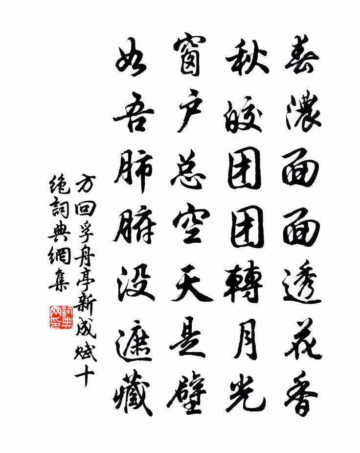 詩詞名句歷史字典書法欣賞書法字典國語詞典說文解字康熙字典古漢語字典標 題 作 者 詩 句 孚舟亭新成賦十絕作者:方回 朝代:宋代孚舟亭新成賦十絕原文春濃面面透花香,秋皎團團轉月光。窗戶總空天是壁,如吾肺腑沒遮藏。詩詞問答問:孚舟亭新成賦十絕的作者是誰?答:方回問:孚舟亭新成賦十絕寫於哪個朝代?答:宋代方回孚舟亭新成賦十絕書法欣賞孚舟亭新成賦十絕書法作品詩詞推薦句吳沆〔宋代〕樵歌催日晚,村樂見年豐。……雁陣橫衝霧,酒軍酣戰風。憶王孫汪元量〔宋代〕心中無事氣神和。不覺忻忻言語多。劍用衠磨更磨。害風哥。割了舌頭趕退魔。紫瑞香三首陳藻〔宋代〕中開素粉笑濃霜,外帶凝脂妒夕陽。縱有寒梅只一色,暗香不似撲人香。奉題付珠二首劉克莊〔宋代〕象罔得來還失了,寒齋拾去閟藏之。臨行此物猶難忍,不付他人付二兒。永叔席上分韻送裴如晦梅堯臣〔宋代〕霜華夜夜濃,汴水日日減。行邁唯恐遲,離懷不須黯。遠輕吳江潮,乃見丈夫膽。君意應洗然,吾方困塵慘。和余時升周子美江雨有懷雨不絕詩韻各賦一首郭印〔宋代〕天作淫雨似秋中,沾濕恐侵河伯宮。螟螣欲傷禾黍秀,黿鼉尚快波濤風。誰驅天際亂雲墨,且放山巔晴日紅。有酒關門望華山劉長卿〔唐代〕客路瞻太華,三峰高際天。夏雲亘百里,合沓遙相連。雷雨飛半腹,太陽在其巔。翠微關上近,瀑布林梢懸。愛此初秋閒記園池草木范成大〔宋代〕一株蕭索倚宣華,東苑香風屬內家。丹碧屠蘇銀燭照,平生奇絕象山花。送人歸山釋文珦〔宋代〕君歸西山去,為愛山中雲。雲亦喜君歸,日夕常氤氳。雲蹤渺難期,別恨徒殷勤。他時望山色,眼中如見君。牽牛花三首楊萬里〔宋代〕莫笑渠儂不服箱,天孫為織碧雲裳。浪言偷得星橋巧,只解冰盤染茈姜。墨君十詠欺雪王銍〔宋代〕愛竹高風已自賢,興來更泛剡溪船。枝間清響風驚雪,憶得東林夜宿年。流杯池趙汝鐩〔宋代〕分得蘭亭勝,今才二十年。飛觴流古罅,曲水出天然。古意欠修竹,清香足舊蓮。嶙峋裂奇怪,兩獸臥山邊。皇甫郎中親家翁赴任絳州宴送出城贈別白居易〔唐代〕慕賢入室交先定,結援通家好復成。新婦不嫌貧活計,嬌孫同慰老心情。洛橋歌酒今朝散,絳路風煙幾日行?欲識唐宣宗餌藥金朋說〔宋代〕長生妄誕誑愚言,覆轍前途不自悛。若餌金丹人不死,北邙青冢盡神仙。寄袁校書(一作袁都校書)許渾〔唐代〕擾擾換時節,舊山琪樹陰。猶乖清漢志,空負白雲心。廣陌埃塵遠,重門管吹深。勞歌極西望,芸省有知音。臨江王節士歌李白〔唐代〕洞庭白波木葉稀,燕鴻始入吳雲飛。吳雲寒,燕鴻苦。風號沙宿瀟湘浦,節士悲秋淚如雨。白日當天心,照之可以禽言九首布穀劉克莊〔宋代〕牆壁雖有勸農文,不如禽語尤殷勤。春泥滑滑陂水滿,晨出下秧薄暮返。烏呼三農養一兵,汝曹努力勿惰耕。朱門紹興以後時享二十五首真宗〔宋代〕[太簇為徽]嘉承和平,秩祀為先。乃練休辰,祝吏告虔。內心齊明,祀真吉蠲。交際恍惚,如在後前。浣溪沙(賦春雪追和東坡韻四首)王之道〔宋代〕陽氣初升土脈蘇。東郊人散欲回車。一時春雪十年無。魚枕蕉深浮酒蟻,鹿胎冠子粲歌珠。題詩不覺燭然須。高風行懷本齋王柏〔宋代〕人皆喜君出,我獨喜君歸。君出豈不媺,事業生光輝。君歸亦不惡,風味高一時。人才有消長,世運有盛衰。公論名句推薦紅旗捲起農奴戟,黑手高懸霸主鞭。 * 《七律·到韶山》 縱浪大化中,不喜亦不懼。陶淵明《形影神三首》 鐘山抱金陵,霸氣昔騰發。李白《登梅岡望金陵贈族侄高座寺僧中孚》 長恨此身非我有,何時忘卻營營。蘇軾《臨江仙·夜飲東坡醒復醉》 一叫一迴腸一斷,三春三月憶三巴。李白《宣城見杜鵑花 / 子規》 一片段預告飛減卻春,風飄萬點正愁人。杜甫《曲江二首》 天地之道,博也、厚也、高也、明也、悠也、久也。子思《中庸·第二十六章》 朝雲亂人目,帝女湘川宿。吳均《登二妃廟》 國家將興,必有禎祥;國家將亡,必有妖孽。子思《中庸·第二十四章》 雨中山果落,燈下草蟲鳴。王維《秋夜獨坐 / 冬夜書懷》