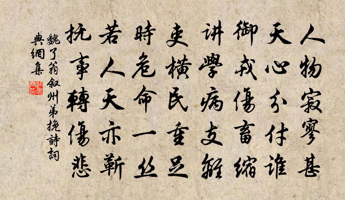 詩詞名句歷史字典書法欣賞書法字典國語詞典說文解字康熙字典古漢語字典標 題 作 者 詩 句 敘州弟輓詩作者:魏了翁 朝代:宋代敘州弟輓詩原文人物寂寥甚,天心分付誰。御戎傷畜縮,講學病支離。吏橫民重足,時危命一絲。若人天亦靳,撫事轉傷悲。詩詞問答問:敘州弟輓詩的作者是誰?答:魏了翁問:敘州弟輓詩寫於哪個朝代?答:宋代魏了翁敘州弟輓詩書法欣賞敘州弟輓詩書法作品詩詞推薦句黃庚〔宋代〕江蘺滿意馨。攜印謁新守宿至德上方翌日馬上追書十四韻強至〔宋代〕攜符拜州守,半舍度微徑。有僧謁道傍,雲我迓邑令。因徐指叢林,佛宇頗嚴淨。願驅大夫馬,一宿憩征鐙。我生次朱天球贈吳茂先韻吳則禮〔宋代〕暮年挈挈儂與君,端覺高歌有鬼神。平生王恭無長物,此事逼人殊咄咄。戲談韁馬缺鼻牛,夫子大是孫殷流。休言三伏不熱郭印〔宋代〕三伏元無暑,連旬雨復陰。朝朝閒舊扇,夜夜擁重衾。日晦浮雲翳,天愁沴氣侵。烽煙猶未息,一念一傷心。李商老酬答時帖岳珂〔宋代〕九派之物潏,注於溟渤,寓此詩筆。煙霞之痼疾,園涉以日,紓寫盤郁。偈傾一百三十三首釋法薰〔宋代〕雪峰輥球,禾山打鼓。要覓旨歸,月不破五。喜晴趙蕃〔宋代〕掃除詩癖未能空,從使人譏手病風。事業深虞一無就,壯顏都有幾時紅。中原民謠過沃州周麟之〔宋代〕過沃州,停車聽我遺民謳。茲為名邦古趙地,皇家得姓基鴻休。自胡雜居民在鼎,民心不改千年並。一日天開神火呂公亭袁說友〔宋代〕仙翁何地不翱翔,底事三游只岳陽。不是朗吟飛過疾,洞庭張樂要迎將。贈吳孟求承議二首張耒〔宋代〕我生花仕宦求餬花口,敢憚水浮兼陸走。朅來京口見花落,歸去西風未吹柳。山尋北固初知路,水飲中泠未盈缶。和黃秋韻趙必象〔宋代〕騷壇分戍打愁城,奏凱梅邊緩轡行。詩債填償難一頓,酒緣結習是三生。未能范蠡浮輕舸,且學靈均賦落英。落魄慈恩寺枸杞李復〔宋代〕枸杞始甚微,短枝如棘生。今茲七十年,巨乾何忻榮。偶以遺樵薪,遂有嘉樹名。雨露養秋實,錯落丹乳明。細蔓橫山聳翠柳敘〔宋代〕蘭陰山跨浴溪南,春破峰顏三月三。松柏森森翻野籟,竹梧隱隱撲晴嵐。高摩雲漢千尋路,倒浸峰巒百尺潭。此外送鄭谷先輩赴妝州辟命張喬〔唐代〕看花興未休,已散曲江游。載筆離秦甸,從軍過洛州。嵩雲將雨去,汝水背城流。應念依門客,蒿萊滿徑秋。出遊至僧舍及逆旅戲贈絕句陸游〔宋代〕飯炊適熟如延客,犬喜來迎似到家。雨滴茅檐草煙濕,不妨笑語暫諠嘩。林下樗白居易〔唐代〕香檀文桂苦雕鐫,生理何曾得自全。知我無材老樗否,一枝不損盡天年。樗高操王令〔宋代〕崇崇北丘,其上有樗。原校:遠者以為梁,或者爭以柱。就而睨之,曾無事於欂櫨。嗚呼木乎,其我於遠者歟。重至秀山售屋將歸十首方回〔宋代〕賃舟歸亦易,猶欠賃舟錢。殘闕書難售,空寬宅盡捐。俊□吾所慣,幼稚自堪憐。生世都能幾,嚴州十二年。天下不用車王安石〔宋代〕天下不用車,人人乘馬馳。王良雖善御,攬轡欲從誰。漢武伐大宛, * 若京坻。孝文卻走馬,獨行先安之。萬物晚霽中園喜赦作儲光羲〔唐代〕五月黃梅時,陰氣蔽遠邇。濃雲連晦朔,菰菜生鄰里。落日燒霞明,農夫知雨止。幾悲衽席濕,長嘆垣牆毀。曭朗名句推薦去時梅萼初凝粉。不覺小桃風力損。歐陽修《玉樓春·去時梅萼初凝粉》 雨中禁火空齋冷,江上流鶯獨坐聽。韋應物《寒食寄京師諸弟》 得道者多助,失道者寡助。孟子《孟子·公孫丑章句下·第一節》 酒酣應對燕山雪,正冰河月凍,曉隴雲飛。周密《高陽台·送陳君衡被召》 望章台路杳,金鞍遊蕩,有盈盈淚。章楶《水龍吟·燕忙鶯懶芳殘》 千形萬象竟還空,映水藏山片復重。來鵠《雲》 積土成山,風雨興焉;荀子《勸學》 東望鞭芙縹緲,寒光如注。劉辰翁《桂枝香· * 人去》 轉禍而為福,因敗而為功。劉向《戰國策·燕一·燕文公時》 此後錦書休寄,畫樓雲雨無憑。晏幾道《清平樂·留人不住》