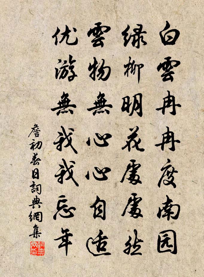 詩詞名句歷史字典書法欣賞書法字典國語詞典說文解字康熙字典古漢語字典標 題 作 者 詩 句 春日作者:詹初 朝代:宋代春日原文白雲冉冉度南園,綠柳明花處處然。雲物無心心自適,優遊無我我忘年。詩詞問答問:春日的作者是誰?答:詹初問:春日寫於哪個朝代?答:宋代詹初春日書法欣賞春日書法作品詩詞推薦石翁嫗林景熙〔宋代〕束艾楚俗愚,鑄金秦民怖。何年斲雲根,偶立此翁嫗。千春衣莓苔,偕老食風露。世人輕結髮,覆水或旦暮。乃羽太常樂章三十首其十六皇帝行奏隆安之曲楊億〔宋代〕禮備樂成,乾健天行。帝容有穆,佩玉鏘鳴。小桃紅(在襄州作)劉過〔宋代〕晚入紗窗靜。戲弄菱花鏡。翠袖輕勻,玉纖彈去,小妝紅粉。畫行人、愁外兩青山,興尊前離恨。宿酒醺難醒。笑池上與師伯渾飲酒晁公溯〔宋代〕承平玉燭四時和,處處惟聞擊壤歌。富國不須搜粟尉,勸民當應力田科。使君身似社樗老,故里賢如喬木多。今日次韻錢穆父內翰題劉掾詩集李復〔宋代〕朱弦曾聞三嘆曲,青松自長千歲枝。意來是有我輩語,佳處只應能者知。舊心洗盡萬斛水,新愁誰爭半額眉。清興螢宋祁〔宋代〕腐化何微眇,孤光只自求。單飛一金躍,群散數星流。廢苑蒼茫夜,離宮窈窕秋。戍埤同燼落,客幔共燈愁。明滅春秋戰國門田子奇周曇〔唐代〕少年為吏慮非循,一騎奔追委使臣。使者不追何所對,車中緣見白頭人。洋州三十景二樂榭鮮于侁〔宋代〕珍躋積翠外,絺結穹隆間。軒檻最佳處,四顧惟江山。喜李侍郎得西京留台司馬光〔宋代〕賤了何為者,棲棲今二毛。滄波浮片葉,大聲載秋毫。利物物何補,營身身已勞。羨君遺世綱,脫屣一何高。泉南歌謝履〔宋代〕泉州人稠山谷瘠,雖欲就耕無處辟。 州南有海浩無窮,每歲造舟通異域。陰地關見入蕃公主石上手跡雍陶〔唐代〕漢家公主昔和蕃,石上今餘手跡存。風雨幾年侵不滅,分明纖指印苔痕。松江別范至能朱伯陽韓元吉〔宋代〕彈鋏功名易白頭,歸歟未佃五湖舟。送君與我皆為守,到處逢山且縱游。薄日連雲千幛曉,斜風吹雨一江秋。買魚趙城懷古曹鄴〔唐代〕邯鄲舊公子,騎馬又鳴珂。手揮白玉鞭,不避五侯車。閒愁春日短,沽酒入倡家。一笑千萬金,醉中贈秦娥。如今除夜寄張達羅隱〔唐代〕梅花已著眼,竹葉況粘唇。只此留殘歲,那堪憶故人。亂罹書不遠,衰病日相親。江浦思歸意,明朝又一春。詩呈同院諸公六首鄧忠臣〔宋代〕秋日同文館,分場試未齊。借書窮石室,刊字費棠梨。想見英雄彀,誰當甲乙題。喜陪群彥集,通籍在金閨。夜涼蘇籀〔宋代〕白屋秋聲里,蹉跎旅食春。挑燈魯酒薄,拊枕越雞晨。學術家傳業,風流德有鄰。似聞川陝捷,吾道付峨岷。寒暑陸游〔宋代〕寒暑侵陵日夜衰,坐令齒髮不支持。愛憎徇物去忘反,神氣養形誰復知?布帔九條晨入靜,柏床五尺夜精思。舊交鳳棲梧/蝶戀花杜安世〔宋代〕整頓雲鬟初睡起。庭院無風,盡日簾垂地。畫閣巢新燕聲喜。楊花狂散無拘系。近來早是添憔悴。金縷衣寬,賽過和蕭蔘議游嶽麓八絕王炎〔宋代〕登臨須返意須留,目力無邊不著愁。收拾風光歸古錦,千岩萬壑獻清秋。詠史上揚雄二首陳普〔宋代〕展禽未必非龔勝,孤竹猶將笑薛方。可怪揚雄非桀犬,一生終倚桀門牆。名句推薦雨下飛花花上淚,吹不去,兩難禁陳子龍《唐多令·寒食》 修竹傍林開,喬松倚岩列。德隱《新秋晚眺》 志足而言文,情信而辭巧劉勰《文心雕龍·徵聖》 十年生死兩茫茫,不思量,自難忘。蘇軾《江城子·乙卯正月二十日夜記夢》 精衛銜微木,將以填滄海。陶淵明《讀山海經·其十》 草綠裙腰山染黛,閒恨閒愁儂不解文廷式《天仙子·草綠裙腰山染黛》 聖人恃道化而不恃智巧。列子及其弟子《列子·說符》 汾水碧依依,黃雲落葉初飛。孫光憲《河瀆神·汾水碧依依》 豆雨聲來,中間夾帶風聲。蔣捷《聲聲慢·秋聲》 丞相祠堂何處尋,錦官城外柏森森。杜甫《蜀相》