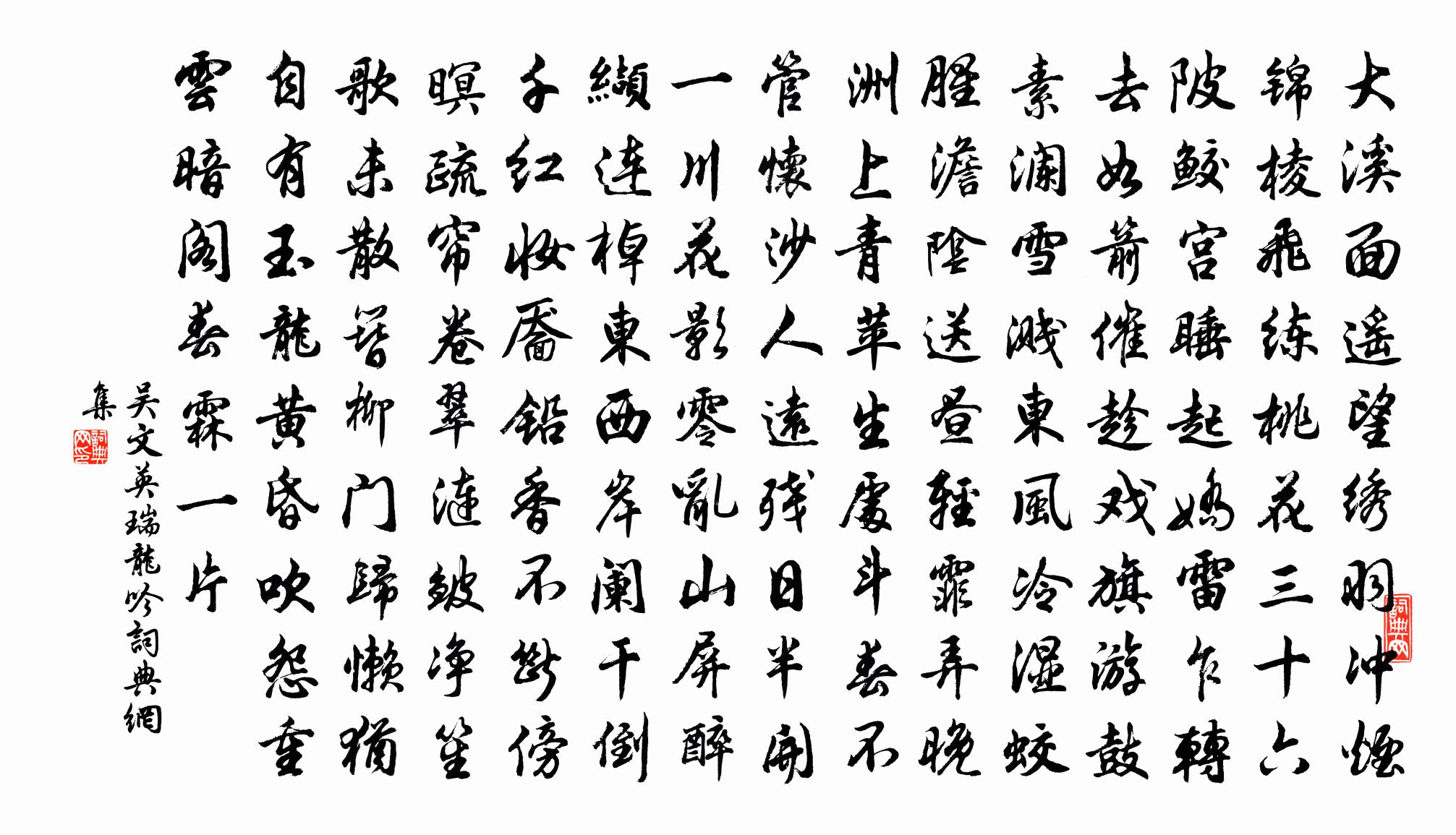 大溪面。遙望繡羽沖煙,錦棱飛練。