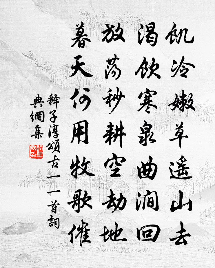 詩詞名句歷史字典書法欣賞書法字典國語詞典說文解字康熙字典古漢語字典標 題 作 者 詩 句 頌古一○一首作者:釋子淳 朝代:宋代頌古一○一首原文飢冷嫩草遙山去,渴飲寒泉曲澗回。放蕩秒耕空劫地,暮天何用牧歌催。詩詞問答問:頌古一○一首的作者是誰?答:釋子淳問:頌古一○一首寫於哪個朝代?答:宋代釋子淳頌古一○一首書法欣賞頌古一○一首書法作品詩詞推薦拍欄趙汝鐩〔宋代〕偶把欄乾拍,沙鷗水上驚。晚紅殘照在,秋碧遠山橫。盡被浮名役,皆從妄念生。不如歸去好,杖屨老柴荊。寄題辰州沅陽館鄭獬〔宋代〕張侯守辰溪,作館清溪上。峻趾擁崇岡,跋海鰲足壯。石嶝盤山回,遊人出屏障。林壑互蔽虧,昏明各異狀。辰溪苦雨雜言寄魯望皮日休〔唐代〕吳中十日涔涔雨,歊蒸庳下豪家苦。可憐臨頓陸先生,獨自翛然守環堵。兒飢仆病漏空廚,無人肯典破衣裾。蜾蠃泛舟陸游〔宋代〕山照澄波發鬌青,新蒲梢上立蜻蜓。孤舟每為尋詩出,輸與漁翁醉不醒。句陶弼〔宋代〕劍待張華時已晚,榻延徐孺禮應疏。次韻趙清獻陰字詩劉子翬〔宋代〕石磴雲房隱澗陰,昔年清獻此清吟。鳳池人物終難繼,花縣風流直到今。三尺翠碑遺墨在,一林寒竹暮煙深。平生白居易有望闕雲遮眼思鄉雨滴心之句用其韻為鄭剛中〔宋代〕涼至欲飲酒,此興不可遮。手提皤腹罌,傾之若流霞。可但飲文字,搜尋到魚蝦。忽焉見妙理,眼亂綿成花。方知賦雁史彌寧〔宋代〕雲慘胡天倦客程,西風失喜到江城。自傳屬國書來後,獵獵聲名動漢京。小飲賞菊陸游〔宋代〕菊得霜乃榮,性與凡草殊。我病得霜健,每卻稚子扶。豈與菊同性,故能老不枯?今朝喚父老,採菊陳酒壺。舉袖次韻可庵梅洪咨夔〔宋代〕點雪非耶果是耶,紫千紅萬未曾芽。蒼苔有暈龍鍾樹,幽谷無人自在花。地暖孤鴻來索伴,天空雙鷺下通家。詩翁答玉林示魏慶芝〔宋代〕一吟一詠一相思,滿紙銀鉤滿紙詩。深院沈沈人悄悄,落花片片雨垂垂。蹉跎二月還三月,點檢新枝□□□。愁絕題趙鷗波高士圖龔開〔宋代〕雪氣侵人臥欲僵,苦勞明府到藜床。主賓問答皆情語,何用閒名入薦章。悶歌行十二首楊萬里〔宋代〕新詩喔罷倦來眠,蝴蝶飛游八極邊。船外風濤如霹靂,一聲不到睡鄉天。冬夜醉宿龍門覺起言志李白〔唐代〕醉來脫寶劍,旅憩高堂眠。中夜忽驚覺,起立明燈前。開軒聊直望,曉雪河冰壯。哀哀歌苦寒,鬱郁獨惆悵。傅說雪十首楊公遠〔宋代〕堆瓊積玉遍階除,個是騷人富貴余。莫道得渠無用處,寒窗能映夜觀書。次韻晦父喜雨詩曹彥約〔宋代〕何處鳴鳩只好音,誰家孝婦有冤心。古來禋祀關仍寂,今日兵飢憶華歆。王制不堪乖用仂,春秋從此卻書霖。君詩偈五首釋覺阿上〔宋代〕掃盡葛藤與知見,信手拈來全體現。腦後圓光徹太虛,千機萬機一時轉。賢者之孝二百四十首段秀實林同〔宋代〕意其失兵久,怏怏必吾從。奪笏直前擊,那知是孝童。蒙城清燕堂王安石〔宋代〕清燕新碑得自蒙,行吟如到此堂中。吏無田甲當時氣,民有莊周后世風。庭下早知閒木索,坐間遙想御絲桐。飄然湘夫人祠大易〔唐代〕靈祠古木合,波揚大江濆。未□湘南雨,知為何處雲。苔痕澀珠履,草色妒羅裙。妙鼓彤雲瑟,羈臣不可聞。名句推薦江山代有才人出,各領風騷數百年。趙翼《論詩五首·其二》 靡靡秋已夕,淒淒風露交。陶淵明《己酉歲九月九日》 一家二貴,事乃無功。韓非及後人《韓非子·揚權》 望望不見君,連山起煙霧。李白《金鄉送韋八之西京》 一去二三里,煙村四五家。邵雍《山村詠懷》 飛來山上千尋塔,聞說雞鳴見日升。王安石《登飛來峰》 今我來思,雨雪載途。佚名《出車》 寒沙四面平,飛雪千里驚。范雲《效古詩》 閒中件件思,暗裡般般量。康海《雁兒落帶得勝令·飲中閒詠》 日中則昃,月盈則食佚名《易傳·彖傳下·豐》