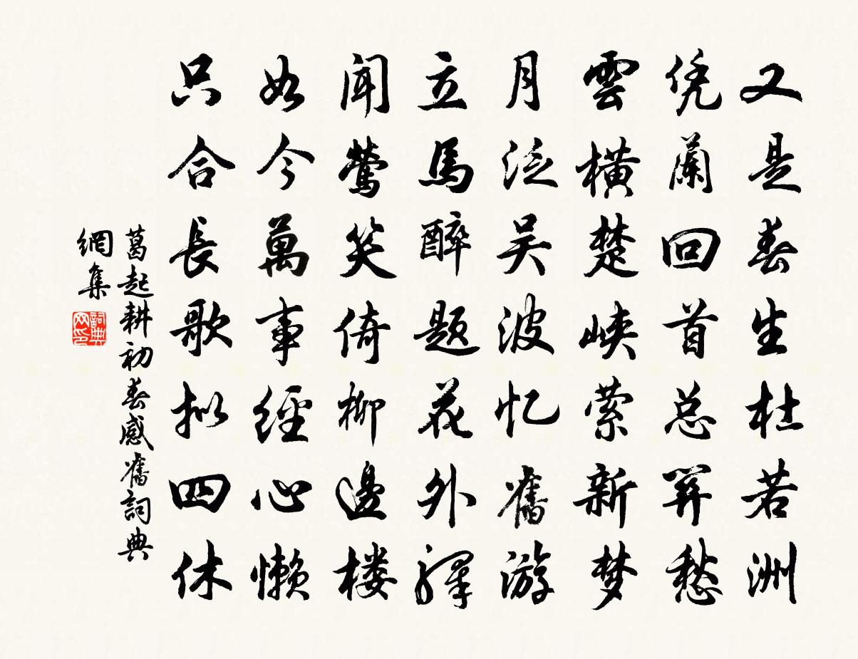 詩詞名句歷史字典書法欣賞書法字典國語詞典說文解字康熙字典古漢語字典標 題 作 者 詩 句 初春感舊作者:葛起耕 朝代:宋代初春感舊原文又是春生杜若洲,憑蘭回首總關愁。雲橫楚峽縈新夢,月泛吳波憶舊遊。立馬醉題花外驛,聞鶯笑倚柳邊樓。如今萬事經心懶,只合長歌擬四休。詩詞問答問:初春感舊的作者是誰?答:葛起耕問:初春感舊寫於哪個朝代?答:宋代葛起耕初春感舊書法欣賞初春感舊書法作品詩詞推薦陽春曲馮時行〔宋代〕柳帶抽春寒氣淺,風光曉引春樓怨。關山行人久不歸,鸞瘦舞腰雙綬緩。錦書難寄北征鴻,歸飛海燕翻晴空。芳菲小說引子羅燁〔宋代〕破盡詩書泣鬼神,發揚義士顯忠臣。試開戛玉敲金口,說與東西南北人。偈頌一百四十一首釋師範〔宋代〕從這裹流出,滔滔無盡日。巨浪涌千尋,誰知無一滴。減字木蘭花沈瀛〔宋代〕蓬門居止。竹見賓來先嘯喜。窗外敲風。果有賓朋姓字通。莫嫌村酒。且祝佳賓萬千壽。無用辭何。日出明朝事更傷故人歌妓長孫佐輔〔唐代〕愁臉無紅衣滿塵,萬家門戶不容身。曾將一笑君前去,誤殺幾多回顧人。別俞君任通判三首陳造〔宋代〕一代石湖翁,韓歐或其似。當時出門下,如君屈幾指。論定難為才,我乃輩多士。惟成方未器,正賴君礲砥。師友暮秋書齊述懷寄守能師釋智圓〔宋代〕杜門無俗交,塵事任浩浩。空齋學佛外,六經恣論討。仁義志不移,貧病誰相惱。天命唯我樂,百神非吾禱。為文破山八詠體如塔劉拯〔宋代〕妙理悟三伊,巍巍抗奇節。千尺岩下松,蕭然獨凌雪。珠影雖青黃,月輸豈圓闕。危石揚寒泉,至今伴清絕。贈沛禪師皇甫曾〔唐代〕南嶽滿湘沅,吾師經利涉。身歸沃洲老,名與支公接。淨教傳荊吳,道緣止漁獵。觀空色不染,對境心自愜。室中次希道弟韻寄竹院孚上人胡仲弓〔宋代〕閉門商古道,細雨濕青春。屬和卯君句,殷勤巳上人。 * 安地位,秀語發天真。舊日曾同社,吾今愧許詢。過楊子橋楊萬里〔宋代〕客愁滿目政無聊,忽報船經楊子橋。未到江南心已喜,隔江山色碧相招。讀句踐傳呂溫〔唐代〕丈夫可殺不可羞,如何送我海西頭。更生更聚終須報,二十年間死即休。和資政侍郎湖亭雜詠絕句十首流泉梅堯臣〔宋代〕石齒嚼寒聲,粼粼縈曲處。有時浮落英,又過城根去。長庚紹興十九年七月十九日嘗游陽華後十有二李長庚〔宋代〕陽華近七里,不到餘十年。乃知聲名鎖,能障山水緣。今日與鄰曲,勝游追斜川。瘦藤穿犖确,一葉弄潺湲。岩扃天門引元好問〔金代〕秦王宮中不得近,從破衡成欲誰信?白頭遊客困鹹陽,憔悴黃金百斤盡。海中仙人黃鶴舉,大笑人間爭腐鼠。丈夫過普明禪院二首宋庠〔宋代〕軒冕唐年客,溪林洛社坊。雖開居士室,未壞魯恭堂。佛樹高彌綠,天花落更香。惟餘名不滅,來伴法燈長。沁園春劉將孫〔宋代〕十月雪堂,將歸臨皋,二客從坡。適薄暮得魚,細鱗巨口,新霜脫葉,月步行歌。有客無餚,有餚無酒,如此風清乳灘范成大〔宋代〕清溪可怖亦可喜,造化於人真虐戲。轟雷卷雪鬢成絲,一擲平生來此試。險絕無雙是乳灘,舟如滾石下高山。畫樓詩一首晃逈〔宋代〕貌愚愚谷邃,道醉醉鄉春。愚醉無迷謬,伊予意又新。發勻陵梅堯臣〔宋代〕秋雨密無跡,蒙蒙在一川。孤村望漸遠,去鳥飛已去。向晚雲漏日,微光人倚船。安知偶自適,落岸逢沙泉。名句推薦若為化得身千億,散上峰頭望故鄉。柳宗元《與浩初上人同看山寄京華親故》 思量舊夢,黃梅聽雨,危闌倦倚鄧廷楨《水龍吟·雪中登大觀亭》 折戟沉沙鐵未銷,自將磨洗認前朝。杜牧《赤壁》 苔深不能掃,落葉秋風早。李白《長干行二首》 玉容寂寞淚闌乾,梨花一枝春帶雨。白居易《長恨歌》 古剎疏鍾度,遙嵐破月懸。李賀《南園十三首》 山中也有千年樹,世上難逢百歲人。佚名《增廣賢文·上集》 審其名實,慎其所謂。公孫龍《公孫龍子·名實論》 光陰似箭,日月如梭吳承恩《西遊記·第八回》 故聖人為法,必使之明白易知,名正,愚知遍能知之商鞅《商君書·定分》