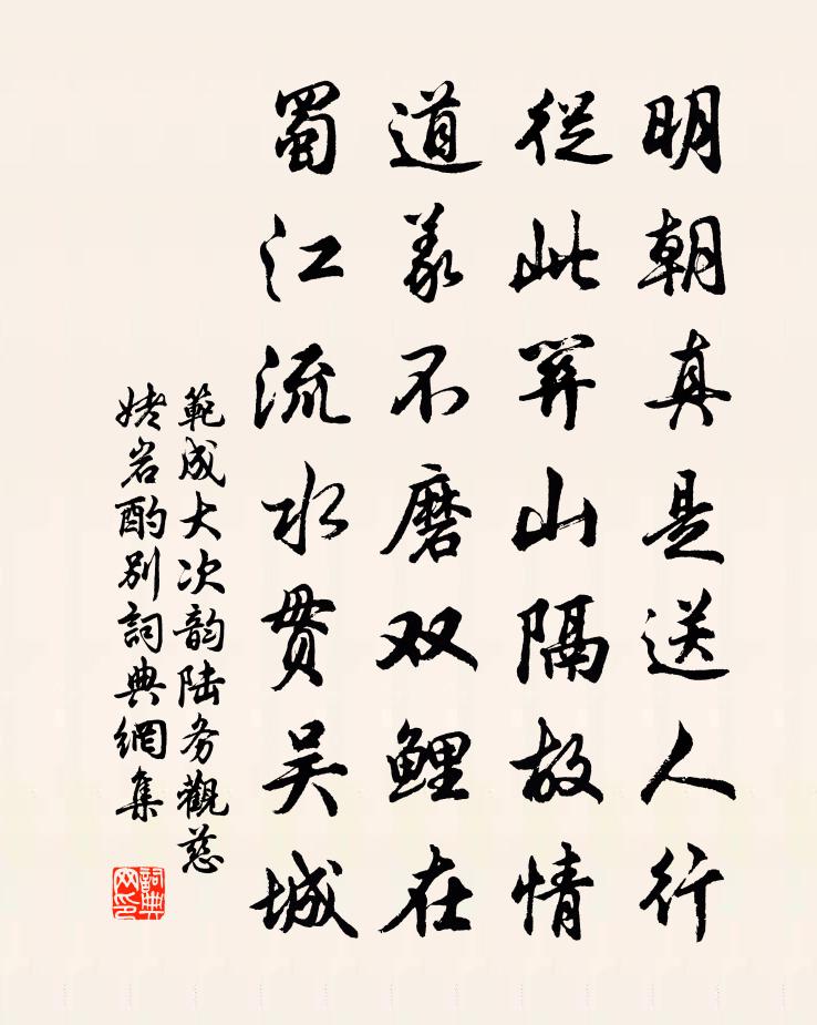 明朝真是送人行,從此關山隔故情。道義不磨雙鯉在,蜀江流水貫吳城。