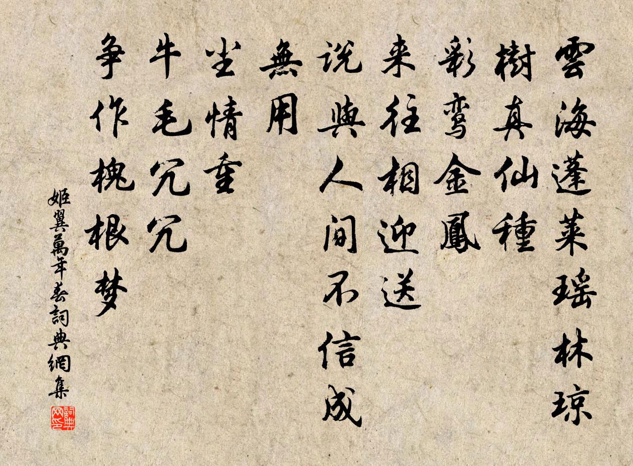 詩詞名句歷史字典書法欣賞書法字典國語詞典說文解字康熙字典古漢語字典標 題 作 者 詩 句 萬年春作者:姬翼 朝代:元代萬年春原文雲海蓬萊,瑤林瓊樹真仙種。彩鸞金鳳。來往相迎送。說與人間,不信成無用。塵情重。牛毛冗冗。爭作槐根夢。詩詞問答問:萬年春的作者是誰?答:姬翼問:萬年春寫於哪個朝代?答:元代問:萬年春是什麼體裁?答:詞姬翼萬年春書法欣賞萬年春書法作品詩詞推薦自南山卻赴京師,石臼嶺頭即事寄嚴僕射歐陽詹〔唐代〕鳥企蛇盤地半天,下窺千仞到浮煙。因高回望沾恩處,認得梁州落日邊。詩呈同院諸同張耒〔宋代〕鄧侯讀書室,編簡自相依。胝手焚膏寫,瘡肩滿橐歸。業文從古有,裁句似公稀。欲挈空虛篋,從君乞貝璣。鄧子高郵雨泊王士禎〔清代〕寒雨秦郵夜泊船,南湖新漲水連天。風流不見秦淮海,寂寞人間五百年。臨川道士利登〔宋代〕晚覺儒冠誤,力耕已不任。風雲入書史,日月送煙林。古來一日養,人子百年心。清風滿天下,欲棲無寸陰。太息建隆以來祀享太廟十六首佚名〔宋代〕嘉彼馴象,來歸帝鄉。南州繁質,中區效祥。仁格巨赫,德柔遐荒。有感斯應,神化無方。古意十四首章雲心〔宋代〕逝川常東流,白日易西沒。悠悠天地間,二物何飄忽。促迫於生人,綠鬢成華發。昧者不自知,終朝常汩汩。利慾簡杜子昕節邠方岳〔宋代〕買屋湖邊住,湖光入酒卮。向來多說劍,老去只耽詩。時序寬衣帶,年華上鬢絲。肯收湖海氣,了事覺兒痴。雜曲歌辭。昔昔鹽。彩鳳逐帷低趙嘏〔唐代〕巧繡雙飛鳳,朝朝伴下帷。春花那見照,暮色已頻欺。欲卷思君處,將啼浥淚時。何年征戍客,傳語報佳期。次韻友人趙文〔宋代〕相逢小坐芷花秋,絕勝揚鞭並與幽。世上十年塵轉海,人生萬事博懸投。當時對酒曾辭酒,今日言愁始欲愁。何不南康春日祖無擇〔宋代〕慙愧東風破臘來,一尊清聖為君開。無方可使朱顏駐,有客相逢白眼回。老大漸能知世態,疏慵那復計身媒。遙憐病中懷鄧覺非顧逢〔宋代〕臥病寂寥中,浮生悟得空。半床清夜月,一枕破窗風。旅思聞孤笛,秋聲過斷鴻。可人常入夢,簪盍幾時同。偈頌一百三十六首釋惟一〔宋代〕一年十二月,是臘月年尾。臘月三十日,過了三之二。雪峰晝里夜裡,波波挈挈,手不釋杓,腳不離地,理會甚底丁酉生日二首方回〔宋代〕今年五月冷非常,擁袖無聊一老尫。應俗但宜司馬好,全生不必次公狂。絳人甲子差相近,皇考庚寅暗自傷。病酒別葛使君王安石〔宋代〕邑屋為儒知善政,市門多粟見豐年。追攀更覺相逢晚,談笑難忘欲別前。客幙雅游皆置榻,令堂清坐亦鳴弦。輕舟榴皮題壁孫子光〔宋代〕黃鶴樓中吹笛罷,洞庭湖畔醉吟餘。劍光如寶無人識,卻記榴皮幾字書。次韻范公游雲門王沖〔宋代〕高躡五雲堆,平看萬象開。樵風溪路遠,華雨梵天來。剎倚三峰直,鍾傳萬壑回。叨陪上方燕,依約近中台。閒居六詠晚步岳珂〔宋代〕抱病游從少,居閒醉醒頻。心懷喜無事,腳力尚隨人。野徑經行地,園亭自在身。不妨歸步晚,長趁月華新。春日田園雜興東必曾〔宋代〕噀綠郊原春事深,治生幽趣豁廟襟。聲聲禽語耕人意,種種花開老圃心。桑葉漸舒梯欲羞,麥苗暗長路難尋。日長賦得亞父碎玉斗裴次元〔唐代〕雄謀竟不決,寶玉將何愛。倏爾霜刃揮,颯然春冰碎。飛光動旗幟,散響驚環珮。霜濃繡帳前,星流錦筵內。圖王游漢高帝祠韓維〔宋代〕平橋架荒塹,東上大岡尾。岡頭古木合,有廟蔭其底。攝衣升殿墀,龍瘢儼當位。蝙飛畫帳喧,鼠齧珠旒墜。不知名句推薦黃梅時節家家雨,青草池塘處處蛙。趙師秀《約客 / 有約》 和大怨,必有餘怨;報怨以德,安可以為善?老子《老子·德經·第七十九章》 步轉迴廊,半落梅花婉娩香。蘇軾《減字木蘭花·春月》 澹月梨花,借夢來、花邊廊廡。史達祖《解佩令·人行花塢》 欲將心事付瑤琴。岳飛《小重山·昨夜寒蛩不住鳴》 遊人記得承平事,暗喜風光似昔年。韋莊《長安清明》 千尺陰崖塵不到,惟有層冰積雪。辛棄疾《賀新郎·用前韻送杜叔高》 客愁全為減,舍此復何之?杜甫《後游》 我軍青坂在東門,天寒飲馬太白窟。杜甫《悲青坂》 日往菲薇,月來扶疏。左思《三都賦》
