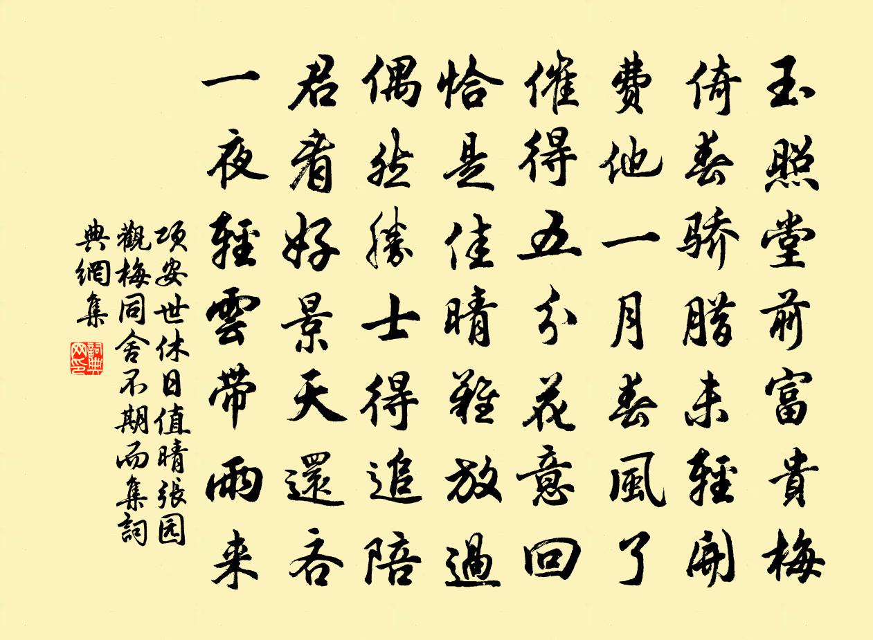 詩詞名句歷史字典書法欣賞書法字典國語詞典說文解字康熙字典古漢語字典標 題 作 者 詩 句 休日值晴張園觀梅同舍不期而集作者:項安世 朝代:宋代原文玉照堂前富貴梅,倚春驕臘未輕開。費他一月春風了,催得五分花意回。恰是佳晴難放過,偶然勝士得追陪。君看好景天還吝,一夜輕雲帶雨來。詩詞問答問:《休日值晴張園觀梅同舍不期而集》的作者是誰?答:項安世問:該詩寫於哪個朝代?答:宋代書法欣賞休日值晴張園觀梅同舍不期而集書法作品詩詞推薦秋晚楊億〔宋代〕秋晚彌岑寂,天空見泬寥。溪流拖白練,樹葉剪紅綃。露菊英初吐,霜鍾韻漸調。清光開旭旦,爽氣逐驚飈。鷹擊漁家傲王采〔宋代〕日月無根天不老。浮生總被消磨了。陌上紅塵常擾擾。昏復曉。一場大夢誰先覺。雒水東流山四繞。路傍幾個新華西江月范智聞〔宋代〕紫素全如玉琢,清音不假金妝。海沈時許試芬芳。仿佛雲飛仙掌。煙縷不愁淒斷,寶釵還與商量。佳人特特為翻香摺子明提刑自湘中以詩問訊用韻酬之陳傅良〔宋代〕久立天涯詠式微,胡然華發尚□□。□□□望歸簪履,便冀君恩到蓋帷。當世豈無君子論,□□□□□人詩。湘中送陽翟張主簿之任獨孤及〔唐代〕舊聞陽翟縣,西接鳳高山。作吏同山隱,知君處劇閒。少年當效用,遠道豈辭艱。遲子揚名後,方期彩服還。雜曲歌辭。昔昔鹽。風月守空閨趙嘏〔唐代〕良人猶遠戍,耿耿夜閨空。繡戶流宵月,羅幃坐晚風。魂飛沙帳北,腸斷玉關中。尚自無訊息,錦衾那得同。謝武陵徐巡官遠寄五七字詩集齊己〔唐代〕五字才將七字爭,為君聊敢試懸衡。鼎湖菡萏搖金影,蓬島鸞皇舞翠聲。還是靈龜巢得穩,要須仙子駕方行。兩邊題昭州田廷亮書稿後樂雷發〔宋代〕檳榔口裡吐參苓,折檻無門九虎深。家在道鄉亭畔住,定應千古有知音。贈馬唐卿數學環中吟方回〔宋代〕揚子云易為太玄,邵堯夫易為皇極。溫公之易曰潛虛,觀物行成有七易。環圓其形刳其中,圓則能轉中則容。譬如敘倫五言二十首劉克莊〔宋代〕文若忠於操,嘉寶諂事溫。晦翁嘆難嗣,坡老惜無孫。登霍山驛樓李商隱〔唐代〕廟列前峰迥,樓開四望窮。嶺鼷嵐色外,陂雁夕陽中。弱柳千條露,衰荷一面風。壺關有狂孽,速繼老生功。採桑子(將離武林)周紫芝〔宋代〕雲蹤老去渾無定,飄泊寒空。又被東風。吹過江南第幾峰。長安市上看花眼,不到衰翁。好趁歸鴻。家在西岩碧桂奉和姚令公溫湯舊館永懷故人盧公之作蘇頲〔唐代〕樹德豈孤邁,降神良並出。偉茲廊廟楨,調彼鹽梅實。正悅虞垂舉,翻悲鄭僑卒。同心不可忘,交臂何為失。清路泂酌亭蘇軾〔宋代〕酌彼兩泉,挹彼注茲。一瓶之中,有澠有淄。以瀹以烹,眾喊莫齊。自江徂海,浩然無私。豈弟君子,江海是儀。養疾釋文珦〔宋代〕介特無門徒,室亦如垂罄。隤然類枯株,聊以養衰病。朝來啟籬戶,落葉滿苔徑。流光遽如斯,脆質安能競。虛籟三月八日百五節林敬輿攜酒約盛元仁戴帥初方方回〔宋代〕湖山春色已如斯,城市原來了不知。百五韶華全似畫,二三名勝總能詩。忽驚我輩相攜處,誰識吾人始到時。五十宿望湖樓再和蘇軾〔宋代〕新月如佳人,出海初弄色。娟娟到湖上,瀲瀲搖空碧。夜涼人未寢,山靜聞響屐。騷人故多感,悲秋更憀忄栗。君惜母山新路詞王時敘〔宋代〕惜母山前龍女祠,畫船送客黃金卮。從他坐唱陽關曲,只唱新開石路詞。木龜亭留題黃庭堅〔宋代〕南台西路木龜坊,乃是靈蛙贔屭藏。從此改名杉蚵蚾,恐來吞月直須防。奉天西佛寺溫庭筠〔唐代〕憶昔狂童犯順年,玉虬閒暇出甘泉。宗臣欲舞千鈞劍,追騎猶觀七寶鞭。星背紫垣終掃地,日歸黃道卻當天。至今名句推薦低頭羞見人,雙手結裙帶。毛鉉《 * 詞·下床著新衣》 易醉扶頭酒,難逢敵手棋。賀鑄《南歌子·疏雨池塘見》 君子求諸己,小人求諸人。孔子弟子《論語·衛靈公篇》 對菱花、與說相思,看誰瘦損。陸叡《瑞鶴仙·梅》 張翰江東去,正值秋風時。李白《送張舍人之江東》 余亦赴京國,何當獻凱還。孟浩然《送陳七赴西軍》 牆頭馬上遙相顧,一見知君即斷腸。白居易《井底引銀瓶·止淫奔也》 砌下落花風起,羅衣特地春寒。馮延巳《清平樂·雨晴煙晚》 躞蹀御溝上,溝水東西流卓文君《白頭吟》 千里搭長棚,沒有不散的筵席。曹雪芹《紅樓夢·第七十二回》