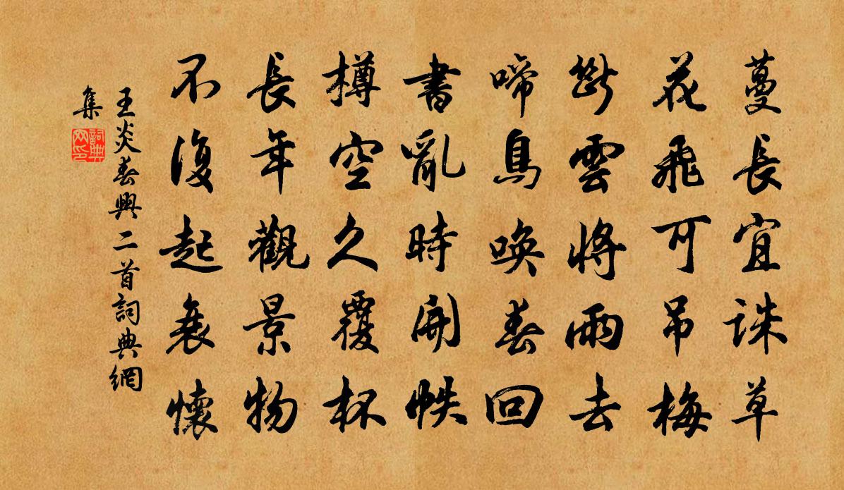 詩詞名句歷史字典書法欣賞書法字典國語詞典說文解字康熙字典古漢語字典標 題 作 者 詩 句 春興二首作者:王炎 朝代:宋代春興二首原文蔓長宜誅草,花飛可吊梅。斷雲將雨去,啼鳥喚春回。書亂時開帙,樽空久覆杯。長年觀景物,不復起衰懷。詩詞問答問:春興二首的作者是誰?答:王炎問:春興二首寫於哪個朝代?答:宋代王炎春興二首書法欣賞春興二首書法作品詩詞推薦蕪城賦鮑照〔南北朝〕沵迆平原,南馳蒼梧漲海,北走紫塞雁門。柂以漕渠,軸以昆崗。重關復江之隩,四會五達之莊。當昔全盛之時,往體趙崇鉘〔宋代〕皓彩青雲端,飛光落溟渤。渾河與清沚,同受明月魄。勿以清濁殊,天光本無隔。述九頌毓粹程公許〔宋代〕五氣兮順行,萬彙兮嘉生。繄人兮有異,毓其秀兮最靈。紛總總兮橫目,何一濁兮一清。豈後皇兮爾私,命曰賢兮貧客吟施肩吾〔唐代〕l6毯敝衣無處結,寸心耿耿如刀切。今朝欲泣泉客珠,及到盤中卻成血。喜聞太原同院崔侍御台拜兼寄在台三二同年之什李商隱〔唐代〕鵬魚何事遇屯同,雲水升沉一會中。劉放未歸雞樹老,鄒陽新去兔園空。寂寥我對先生柳,赫奕君乘御史驄。若向次姚吏隱惠詩韻楊公遠〔宋代〕相逢一笑信前緣,聞道先吾豈較年。灑落襟期良夜月,沖融氣宇小春天。喜評曲直人間事,懶問肥磽郭外田。忙裡雨後清曉梳頭,讀書懷古堂二首楊萬里〔宋代〕蟲響余霄寂,荷妝赴曉鮮。梳頭花霧裡,照水柳風前。舊雨仍今雨,新年勝故年。登城有佳眺,秋稼正連天。種柳戲題柳宗元〔唐代〕柳州柳刺史,種柳柳江邊。談笑為故事,推移成昔年。垂陰當覆地,聳乾會參天。好作思人樹,慚無惠化傳。書感陸游〔宋代〕襁負客淮潁,髧髦逢亂離。中原遂乖隔,北望每傷悲。泛渭題新賦,游嵩續舊詩。死生雖異世,此意未應移。書窗梅花數枝病起再見瓶中盛開因作王洋〔宋代〕書堂籬落冷如灰,十日相忘亦自猜。初訝凍枝無艷脈,那知寒室自花開。銅瓶結實元非種,蔀屋迎春似有媒。方信春風扇微和蔣防〔唐代〕麗日催遲景,和風扇早春。暖浮丹鳳闕,韶媚黑龍津。澹蕩迎仙仗,霏微送畫輪。綠搖官柳散,紅待禁花新。舞席壽山曲馮延巳〔唐代〕銅壺花滴漏初盡花,高閣雞鳴半空。催啟五門金鎖,猶垂三殿花櫳。階前御柳搖綠,仗下宮花散紅。鴛花數行曉日湖南道中三首王阮〔宋代〕已分餘生老一丘,尚因微祿少游留。夢魂不待山資足,先入江南問釣舟。再賦郡沼雙蓮三絕范成大〔宋代〕館娃魂散碧雲沉,化作雙葩寄恨深。千載不償連理願,一枝空有合歡心。喜見外弟又言別李益〔唐代〕十年離亂後,長大一相逢。問姓驚初見,稱名憶舊容。別來滄海事,語罷暮天鍾。明日巴陵道,秋山又幾重。送彭應期游淮東陳文蔚〔宋代〕昔日淮西今又東,為文怪似史遷公。遠遊要是丈夫志,自足一枝真計窮。紹興以後蜡祭四十二首佚名〔宋代〕筆社備祀,教民美報。時和峁豈,奉本以告。惟照臨功,等於載燾。酌獻雲初,明神所勞。栗亭(趙鴻刻石同谷曰,工部題栗亭十韻,不復見)趙鴻〔唐代〕杜甫栗亭詩,詩人多在口。悠悠二甲子,題紀今何有?句俞君錫〔宋代〕教仆掃枯葉,留僧煎早茶。滿庭芳(景盧有南昌之行,用韻惜別,兼簡司馬漢章)洪适〔宋代〕雨洗花林,春回柳岸,窗間列岫橫眉。老來光景,生怕聚談稀。何事扁舟西去,收杖屨、契闊魚池。流觴近,詩筒名句推薦私勿與人,謀必辟。來俊臣《羅織經·治下卷第三》 徒把金戈挽落暉,南冠無奈北風吹。虞集《挽文丞相》 萬里平湖秋色冷,星辰垂影參然。牛希濟《臨江仙·洞庭波浪颭晴天》 軍歌應唱大刀環,誓滅胡奴出玉關。徐錫麟《出塞》 得寵思辱,居安思危。佚名《增廣賢文·上集》 一寸光陰一寸金,寸金難買寸光陰。佚名《增廣賢文·上集》 侈而墮者貧,而力而儉者富。韓非及後人《韓非子·顯學》 密雲雙鳳,初破縷金團。米芾《滿庭芳·詠茶》 治則衍及百姓,亂則不足及王公。荀子《荀子·君道》 悠悠洛陽道,此會在何年。陳子昂《春夜別友人二首·其一》