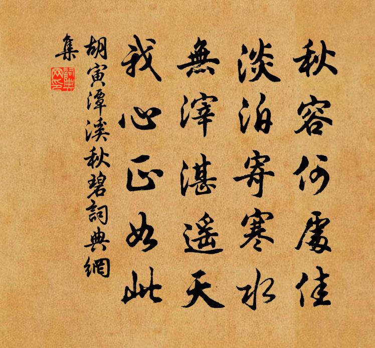 詩詞名句歷史字典書法欣賞書法字典國語詞典說文解字康熙字典古漢語字典標 題 作 者 詩 句 潭溪秋碧作者:胡寅 朝代:宋代潭溪秋碧原文秋容何處佳,淡泊寄寒水。無滓湛遙天,我心正如此。詩詞問答問:潭溪秋碧的作者是誰?答:胡寅問:潭溪秋碧寫於哪個朝代?答:宋代胡寅潭溪秋碧書法欣賞潭溪秋碧書法作品詩詞推薦出郊迓倅車暮歸二首虞儔〔宋代〕軋軋籃輿迫暮歸,前村燈火漸依稀。溪邊默數黃牛過,煙際遙看白鳥飛。把酒無人風落帽,荷鋤有客露沾衣。關門賦獨山釋行海〔宋代〕一峰突兀上虛空,石怪藤幽樹樹風。四面白雲人不見,磬聲如在有無中。叔易席上李處權〔宋代〕何處春光最可憐,仙山亭上碧岩前。窮來更覺詩堪畫,老去誰知酒可仙。雲色弄晴花蘸水,風光縱好柳拖煙。左思進賢初食白菜,因名之以水精菜雲二首楊萬里〔宋代〕新春雲子滑流匙,更嚼永蔬與雪虀。靈隱山前水精菜,近來種子到江西。滿江紅(海棠)劉克莊〔宋代〕壓倒群芳,天賦與、十分穠艷。嬌嫩處、有情皆惜,無香何慊。恰則才如針粟大,忽然誰把胭脂染。放遲開、不肯沁園春(壽婺州陳可齊九月九日)姚勉〔宋代〕四海中間,第一清流,惟有可齊。看平生踐履,真如冰玉,雄文光焰,不涴塵埃。無佑諸賢,紛紛台省,惟有景仁送章季萬戶部王洋〔宋代〕吳人不授館,楚人不分田。此身天地間,泛若不擊船。憶昨罷吏役,白鷗同一川。欲乘萬里風,短翼無夤緣。使君西江月尹志平〔元代〕我愛西岩秀麗,仙園地發三陽。山形曲屈臥龍岡。只此人間天上。雲舍茅庵掩映,仙花異果馨香。市朝客到見清涼次韻姚道人二首蘇轍〔宋代〕高人隱陋巷,至藥初無方。心知無生妙,運轉開陰陽。才如淩雲松,豈受尺寸量。氣如幽谷蘭,時送清風香。嗟我送呂欽問監酒受代歸陳與義〔宋代〕以我千金帚,逢君萬斛船。要知窮有自,未覺懶相先。盆盎三年夢,篇章四海傳。匆匆秣歸馬,離恨滿霜天。答東山一老二偈樓鑰〔宋代〕閉門深坐日知味,無限好山都懶游。城裡山中俱是隱,江湖不若兩忘休。詠史上秦皇陳普〔宋代〕閔道飛翬指若枝,東門看日浴鹹池。生前有力移天地,死後無人予席帷。路口回望方山楊萬里〔宋代〕鍾阜回頭失,方山戀眼寒。似巾檐短帽,如覆玉琱盤。每恨青蒼遠,因行反覆看。皈時記面目,城裡指雲端。青雀歌崔興宗〔唐代〕青扈繞青林,翩翾陋體一微禽。不應常在藩籬下,他日凌雲誰見心。次韻茂恭見寄喻良能〔宋代〕中書一揮千萬言,有如水懸呂梁間。奔逸絕塵不可及,蹇欲從之良獨難。如君文字可 * ,胡為猶在南湖側。樊川失題潘佑〔唐代〕誰家舊宅春無主,深院簾垂杏花雨。香飛綠瑣人未歸,巢燕承塵默無語。雜劇·瘸李岳詩酒玩江亭佚名〔元代〕第一折(沖末扮東華仙領八仙同仙童上)(東華雲)萬縷金光燦碧霞,三山海島映仙家。片片彩雲風散盡,融融麗飛烏與正老相值蓋十月初見之夢兆雲李流謙〔宋代〕憶得初冬忘甲子,夜夢與師游破寺。明朝東望欲寄聲,我在紫岩師錦水。空山行役偶相逢,物色看來與夢同。當時飲酒二十首同蘇翰林先生次韻追和陶淵明六晁補之〔宋代〕高賢眾所懷,眾理應取是。如何濟眾事,難成復易毀。功成身無與,天運亦復爾。軒裳役群愚,兒曹眩文綺。寄歸趙嘏〔唐代〕三年踏盡化衣塵,只見長安不見春。馬過雪街天未曙,客迷關路淚空頻。桃花塢接啼猿寺,野竹亭通畫鷁津。早晚名句推薦開花必早落,桃李不如松。李白《箜篌謠》 我來圯橋上,懷古欽英風。李白《經下邳圯橋懷張子房》 風為裳,水為佩李賀《蘇小小墓》 醉舞梁園夜,行歌泗水春杜甫《寄李十二白二十韻》 顧謂戚夫人,彼翁羽翼成。李白《山人勸酒》 北斗七星高,哥舒夜帶刀。西鄙人《哥舒歌》 密雲雙鳳,初破縷金團。米芾《滿庭芳·詠茶》 愁無限,消瘦盡,有誰知?閒教玉籠鸚鵡念郎詩。納蘭性德《相見歡·落花如夢淒迷》 君子之交淡若水,小人之交甘若醴。莊子《莊子·外篇·山木》 動莫若敬,居莫若儉,德莫若讓,事莫若咨。左丘明《國語·周語·晉羊舌肸聘周論單靖公敬儉讓咨》