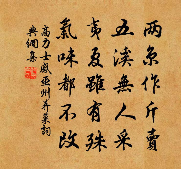 詩詞名句歷史字典書法欣賞書法字典國語詞典說文解字康熙字典古漢語字典標 題 作 者 詩 句 感巫州薺菜作者:高力士 朝代:唐代感巫州薺菜原文兩京作斤賣,五溪無人采。夷夏雖有殊,氣味都不改。詩詞問答問:感巫州薺菜的作者是誰?答:高力士問:感巫州薺菜寫於哪個朝代?答:唐代問:感巫州薺菜是什麼體裁?答:五古高力士感巫州薺菜書法欣賞感巫州薺菜書法作品注釋全唐詩:卷732-1詩文賞析原題註:力士謫黔中,道至巫州,地多薺而人不食,因感之,作詩寄意詩詞推薦東歸擬再訪呂所盤不果所盤有詩因次韻丘葵〔宋代〕何處啼鵑送落暉,江山信美不如歸。子期死矣今安有,元亮來兮昨已非。世事悠悠春夢斷,人才落落曉星稀。白頭憶故廬鄭剛中〔宋代〕不如當日在山家,修竹叢中一逕斜。飽食醉眠渾沒事,風朝雨夜祗愁花。水琴趙汝鐩〔宋代〕盎缶停涵水一泓,中存雅意超器形。欲滴未滴天地寂,須臾宮商若相賡。妙趣不勞徽外索,泛聲不自弦上生。小點美人陸龜蒙〔唐代〕美人抱瑤瑟,哀怨彈別鶴。雌雄南北飛,一旦異棲托。諒非金石性,安得宛如昨。生為並蒂花,亦有先後落。秋林過富池水軍寨前董嗣杲〔宋代〕山暝沉晴靄,江春盪夕暉。水從螺港下,雲接鹿磯飛。雷鼓茶船眾,風旗酒店稀。黃昏入悽愴,營屋柝聲微。滿庭芳(草窗老仙歌滿庭芳壽余,勉次原韻)劉辰翁〔宋代〕空谷無花,新篘有酒,去年窮勝今年。蛩吟蛩和,且省費蠻箋。聞說先生去也,江南岸、縛草為船。依然在,山棲百丈潭陳岩〔宋代〕目觀溶溶眩水精,耳根虩虩受雷聲。一杯更吸潭間味,並要胸中領此清。張轉運席上宋祁〔宋代〕偃藩多式宴,佳雪屢飄霙。意感年將盡,歡容酒剩行。伊公調鼎樂,羊祜衣裘輕。況屬輶軒暇,須容心賞並。八詠詩 晨征聽曉鴻沈約〔南北朝〕聽曉鴻。曉鴻度將旦。跨弱水之微瀾。發成山之遠岸。怵春歸之未幾。驚此歲之雲半。出海漲之蒼茫。入雲途之彌偈十三首釋慧空〔宋代〕一漚未起,古帆未掛。風信不來,無人舉棹。元正和洪司令紀事二首程公許〔宋代〕寸心炯炯水朝東,雲繞通明一雜紅,螭籀薦祥天眷顧,雞竿銜赦日沖融。遙知萬國趨堯彩,可使前旒隔舜瞳。京闕午睡白玉蟾〔宋代〕簟織湘筠似浪,帳垂空翠如煙。一片睡雲驚散,綠槐高處風蟬。句趙聞禮〔宋代〕西風昨夜摧黃葉,秋亦無心在菊花。海上相逢趙同呂岩〔唐代〕南宮水火吾須濟,北闕夫妻我自媒。洞裡龍兒嬌鬱律,山前童子喜徘徊。立夏明日行園無客五首方回〔宋代〕春來何啻酒千瓶,百日醺醺一日醒。朱筆點詩垂欲困,黃鸝啼樹急須聽。沾沙不濕收微雨,倚柱無言立小亭。芒屨滿江紅陸游〔宋代〕危堞朱欄,登覽處、一江秋色。人正似、征鴻社燕,幾番輕別。繾綣難忘當日文,淒涼又作它鄉客。問鬢邊、都有景純學士文丈再錄早年見慶嘉篇重用前韻奉和蘇頌〔宋代〕載世交遊共一時,立朝幾見盛門扉。官班早合登青瑣,星象俄聞返少微。曾向瀛仙陪雅集,更同綿蕝講鴻徽。江乾孫氏林亭方乾〔唐代〕池亭才有二三畝,風景勝於千萬家。瑟瑟林排全巷竹,猩猩血染半園花。並床欹枕逢春盡,援筆持杯到日斜。丱角雜曲歌辭。緩歌行李頎〔唐代〕小來託身攀貴游,傾財破產無所憂。暮擬經過石渠署,朝將出入銅龍樓。結交杜陵輕薄子,謂言可生復可死。一沉句某道士〔宋代〕李郎涉世似虛舟,片帆來渡楚江秋。名句推薦雪消門外千山綠,花發江邊二月晴。歐陽修《春日西湖寄謝法曹歌》 向河梁、回頭萬里,故人長絕。辛棄疾《賀新郎·別茂嘉十二弟》 結髮為夫妻,恩愛兩不疑。蘇武《留別妻》 農不出則乏其食,工不出則乏其事,商不出則三寶絕,虞不出則財匱少。司馬遷《史記·七十列傳·貨殖列傳》 遲日園林悲昔游,今春花鳥作邊愁。杜審言《渡湘江》 萬里橋西一草堂,百花潭水即滄浪。杜甫《狂夫》 俯皇都之宏麗兮,瞰雲霞之浮動。曹植《銅雀台賦》 搜句忌於顛倒,裁章貴於順序劉勰《文心雕龍·章句》 巴山楚水淒涼地,二十三年棄置身。劉禹錫《酬樂天揚州初逢席上見贈》 又到斷腸回首處,淚偷零。納蘭性德《山花子·風絮飄殘已化萍》