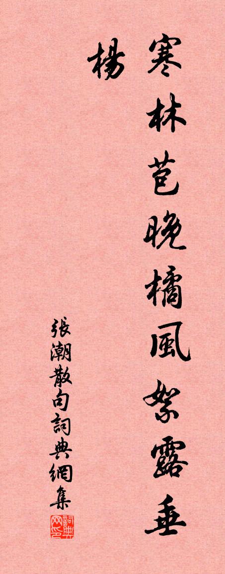 詩詞名句歷史字典書法欣賞書法字典國語詞典說文解字康熙字典古漢語字典標 題 作 者 詩 句 句作者:張潮 朝代:唐代句原文寒林苞晚橘,風絮露垂楊。(《紀事》。又見周瑀詩中)詩詞問答問:句的作者是誰?答:張潮問:句寫於哪個朝代?答:唐代問:句是什麼體裁?答:句張潮句書法欣賞句書法作品注釋全唐詩:卷114_38詩詞推薦實禪者最省釋智愚〔宋代〕靈山禪起未溫席,卻問潮陽過海船。咨省壽堂春日靜,究心應記白雲邊。緱山廟吳筠〔唐代〕朝吾自嵩山,驅駕遵洛汭。逶遲轘轅側,仰望緱山際。王子謝時人,笙歌此賓帝。仙材夙所稟,寶位焉足系。為迫南鄉子蘇軾〔宋代〕東武望餘杭。雲海天涯兩杳茫。何日功成名遂了,還鄉。醉笑陪公三萬場。不用訴離觴。痛飲從來別有腸。今夜送送少微上人歸德峰歐陽詹〔唐代〕不負人間累,棲身任所從。灰心聞密行,菜色見羸容。幻世方同悟,深居願繼蹤。孤雲與禪誦,到後在何峰。宮詞一百首岳珂〔宋代〕金城十仞據陽池,三鎮高扃死不隨。自是天恩浹肌髓,不關左衽限戎夷。臞庵書事四首張鎡〔宋代〕畦丁相引繞園行,指說亭基不記名。因想後湖題柱處,樹林曾見作詩成。送方務德侍郎得請東歸吳芾〔宋代〕三抗封章未得歸,故山歸夢每飛馳。羨君卻向林泉去,愧我猶為印紱縻。忙裡光陰能自惜,靜中氣味許誰知。只疑送水墨項處士歸天台方乾〔唐代〕仙嶠倍分元化功,揉藍翠色一重重。還家莫更尋山水,自有雲山在筆峰。裘父見和複次韻曾協〔宋代〕郢質由來迥不同,曾當巧匠運斤風。肯過異縣尋痴叔,聊遣高談慰病翁。骯髒吾甘才苕霅,飛騰君合上昆蓬。祗今初冬汪炎昶〔宋代〕城頭鍾斷漏初長,布被寒生一夜霜。已劇淒涼獨似較,後來風色更淒涼。寄行宮監門王以通釋永頤〔宋代〕中興天子議攻車,歡息諸公屈垃圖。行殿不開塵鎖合,至今風雨暗金鋪。得蜀信陸游〔宋代〕齒髮凋零志氣衰,強臨尊酒祗成悲。少年半是投閒日,春事常當臥病時。憂患頗疑書作祟,功名不似老如期。青城方太君生日項安世〔宋代〕飄飄南極上明星,浩浩東風入翠醽。春最好時才中半,人難學處是修齡。已開棠樹千枝錦,尚欠蓂花一莢青。更願送郡守徐元傑〔宋代〕郎圍師閫重王人,朝績民庸簡帝宸。屈此偏州何小小,偉哉仁牧自肫肫。下車福十餘萬戶,褒璽朞三百六旬。廉恕和帥座勸農三首趙善括〔宋代〕投老歸歟一草亭,蓽門蕙帳對蘭屏。自從濫吹紅蓮幕,孤負東風柳眼青。春行真山民〔宋代〕短帽輕衫步履遲,微暄天怕乍晴時。池融嫩碧消殘凍,春剪新紅綴舊紜。嵐翠滴衣堪入畫,禽聲到耳足供詩。東風泊船百花洲登姑蘇台二首楊萬里〔宋代〕二月盡頭三月初,繫船楊柳拂菰蒲。姑蘇台上斜陽里,眼度靈岩到太湖。孟子舜大孝陳普〔宋代〕暮雨梧山淚滿襟,皇天珍重意尤深。一時瞽瞍蒸蒸刈,萬古人間慈孝心。享太廟樂章蕭仿〔唐代〕於鑠丕嗣,惟帝之光。羽籥象德,金石薦祥。聖系無極,景命永昌。神降上哲,維天配長。題方氏綠野園三首徐元傑〔宋代〕佳景環深院,開門遠俗鄰。徑幽通鳥雀,溪迥隔風塵。客過宜樽酒,時來與物春。好風為我至,蕭散足怡神。名句推薦人胸中各有個聖人,只自信不及,都自埋倒了。王陽明《傳習錄·卷下·門人陳九川錄》 江湖多風波,舟楫恐失墜。杜甫《夢李白二首·其二》 風嗥雨嘯,昏見晨趨。鮑照《蕪城賦》 步轉迴廊,半落梅花婉娩香。蘇軾《減字木蘭花·春月》 綠葉漸成陰,下有遊人歸路。王安石《傷春怨·雨打江南樹》 務本節用財無極。荀子《荀子·成相》 群雞正亂叫,客至雞鬥爭。杜甫《羌村三首·其三》 凡斗者,必自以為是而以人為非也。荀子《荀子·榮辱》 曲岸持觴,垂楊系馬,此地曾經別。辛棄疾《念奴嬌·書東流村壁》 歌里千重意,才欲歌時淚已流,恨應更、多於淚杜安世《卜運算元·樽前一曲歌》