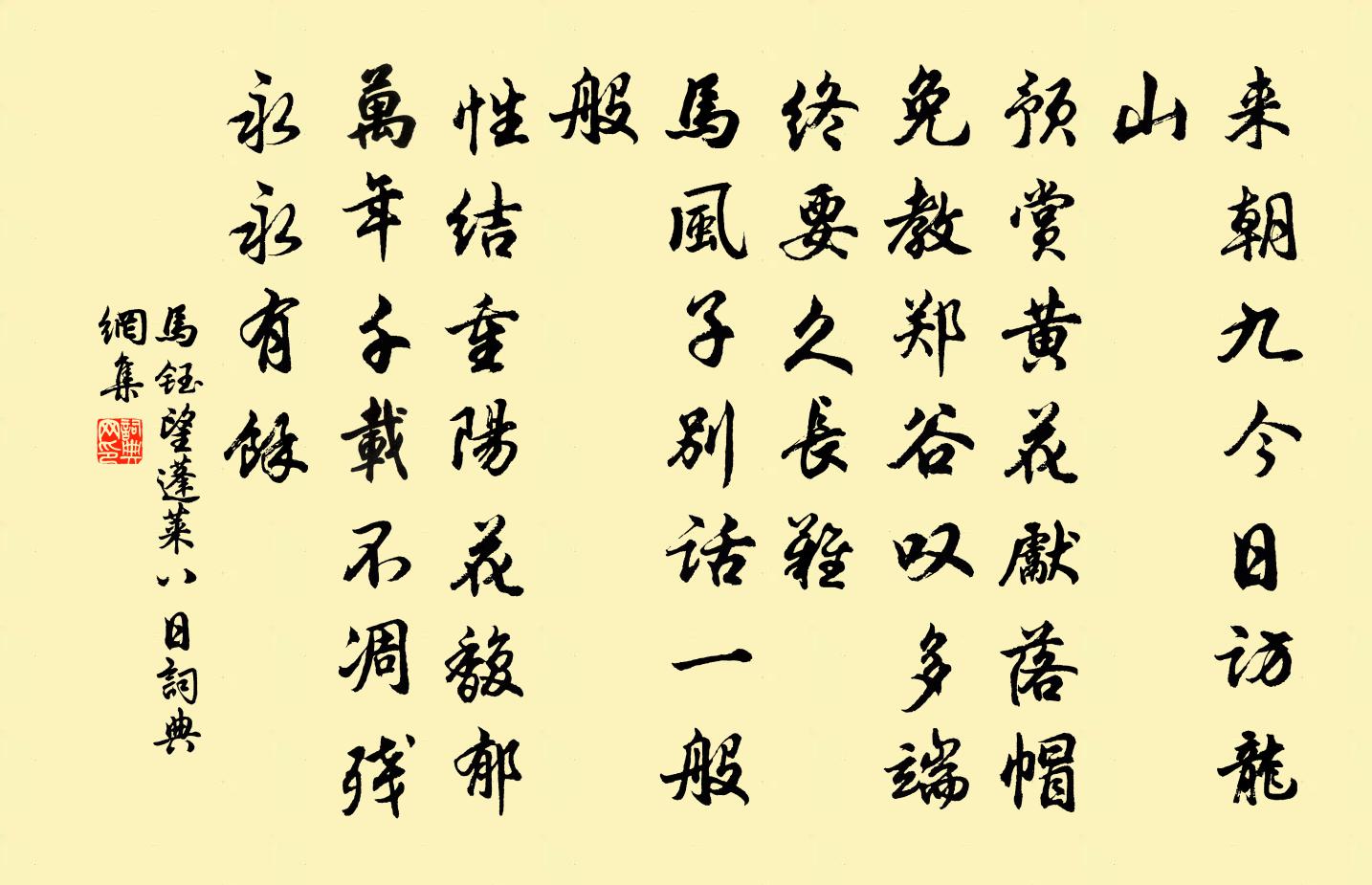 詩詞名句歷史字典書法欣賞書法字典國語詞典說文解字康熙字典古漢語字典標 題 作 者 詩 句 望蓬萊 八日作者:馬鈺 朝代:元代望蓬萊 八日原文來朝九,今日訪龍山。預賞黃花先落帽,免教鄭谷嘆多端。終要久長難。馬風子,別話一般般。性結重陽花馥郁,萬年千載不凋殘。永永有餘詩詞問答問:望蓬萊 八日的作者是誰?答:馬鈺問:望蓬萊 八日寫於哪個朝代?答:元代問:望蓬萊 八日是什麼體裁?答:詞馬鈺望蓬萊 八日書法欣賞望蓬萊 八日書法作品詩詞推薦汴都紀行汪元量〔宋代〕尋僧入相國寺,領客過太師橋。行到汴隄西畔,柳陰陰處魚跳。風雁行李彌遜〔宋代〕閩山蒼蒼江水長,鴻雁北去隨春陽。天寒野暗煙樹濕,雨急風高驚斷行。前飛一雁鳴且顧,後飛一雁悲獨翔。傷心句釋法平〔宋代〕夢魂不入入閒世。黃駁梅堯臣〔宋代〕維舟飯孤村,隔岸見黃駁。瘦牧正苦飢,瘡鳥復下啄。閔心無柘彈,投塊徒自數。力小不能中,汗顏慚且渥。至日早離張村石介〔宋代〕北闕千官集,南山萬壽長。何人距文石,獨客踏寒霜。指凍只尤落,馬贏時恐僵。豐凶卜來歲,猶喜矞雲黃。江夏八詠之五奇章亭賀鑄〔宋代〕南津趙佗石,雲是昔人舟。長忙精衛志,不礙長江流。梅崔道融〔唐代〕溪上寒梅初滿枝,夜來霜月透芳菲。清光寂寞思無盡,應待琴尊與解圍。霜天曉角趙希〔宋代〕姮娥戲劇。手種長生粒。寶乾婆娑千古,飄芳吹滿虛碧。韻色。檀露滴。人間秋第一。金粟如來境界,誰移在、小句高似孫〔宋代〕翠驚苕影亂,蟹過石陰空。題萬年妙蓮閣宋景年〔宋代〕上方危閣化無蹤,平顧摩空萬桂叢。自有蓮華發泥下,何須芝草遍山中。石橋暮隔霏霏雨,翠壁寒供凜凜風。彈指九章之三·哀郢屈原〔先秦〕皇天之不純命兮,何百姓之震愆?民離散而相失兮,方仲春而東遷。去故都而就遠兮,遵江夏以流亡。出國門而軫殘春無幾述意陸游〔宋代〕試筆書盈紙,烹茶睡解圍。新蔬供冷麵,熟練制單衣。雛燕飛初穩,殘花見漸稀。年衰學不進,默默訟吾非。送人游邵州狄煥〔唐代〕春江正渺渺,送別兩依依。煙里棹將遠,渡頭人未歸。漁家侵疊浪,島樹掛殘暉。況入湖湘路,那堪花亂飛。夏日二首張耒〔宋代〕詩書老去信無功,偷得閒宮許養慵。山影當庭初轉日,水聲穿竹自來風。晚催萱蕊昏還斂,日射榴房午更紅。覽物東平憲王蒼徐鈞〔宋代〕重修禮樂佐文明,樂善終能保令名。兩漢賢王誰與並,河間以後便東平。六么令 法性丘處機〔元代〕渾淪朴散,天地始玄黃。烏飛兔走漸生,群物類開張。一點如如至性,撲入臭皮囊。遊魂失道,隨波逐浪,萬年千感懷寄擇之李覯〔宋代〕眾人皆銳進,唯我復幽居。慮遠夢多亂,身閒氣不舒。乾求非祿位,好尚豈詩書。日夜又日夜,霜寒鬢髮疎。政府生日十首曹勛〔宋代〕郊祀三年大禮崇,上公翊贊極寅恭。清壇九奏應昭格,今歲人神識景鍾。辛亥各口占十絕劉克莊〔宋代〕汗腳誰教上玉台,卻尋前路擊芒鞋。自嫌到了無仙分,已踏金鰲跌下來。代人題瓊守歸疆堂曾豐〔宋代〕前朝列聖規模大,雨露涵濡山海外。椎卉之民半冠帶,恬不復它余百載。前守諸公方略偏,藩籬漫浪耳目前。版圖名句推薦養心莫善於誠。荀子《荀子·不苟》 千羊之皮不如一狐之腋。司馬遷《史記·趙世家》 梅子黃時日日晴,小溪泛盡卻山行曾幾《三衢道中》 論德而定次,量能而授官。荀子《荀子·君道》 獨立小橋風滿袖,平林新月人歸後。馮延巳《鵲踏枝·誰道閒情拋擲久》 夫有尤物,足以移人左丘明《左傳·昭公·昭公二十八年》 翅低白雁飛仍重,舌澀黃鸝語未成。白居易《南湖早春》 青,取之於藍而青於藍;冰,水為之而寒於水。荀子《荀子·勸學》 瘦雪一痕牆角,青子已妝殘萼。王庭筠《謁金門·雙喜鵲》 一日不見,如三月兮。佚名《子衿》