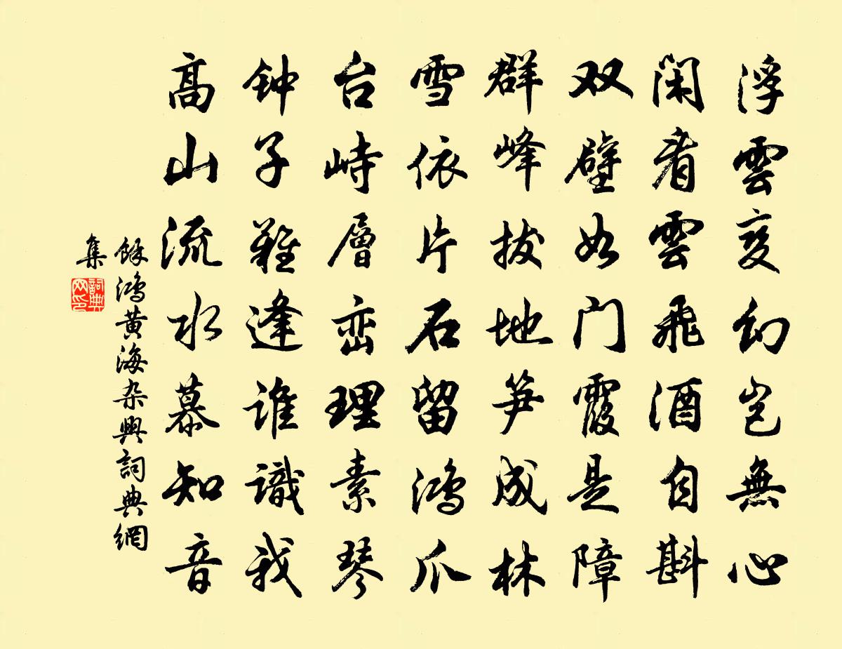 詩詞名句歷史字典書法欣賞書法字典國語詞典說文解字康熙字典古漢語字典標 題 作 者 詩 句 黃海雜興作者:余鴻 朝代:清代黃海雜興原文浮雲變幻豈無心,閒看雲飛酒自斟。雙壁如門霞是障,群峰拔地筍成林。雪依片石留鴻爪,台峙層巒理素琴。鍾子難逢誰識我,高山流水慕知音。詩詞問答問:黃海雜興的作者是誰?答:余鴻問:黃海雜興寫於哪個朝代?答:清代余鴻黃海雜興書法欣賞黃海雜興書法作品詩詞推薦芝岩禪師贊釋大觀〔宋代〕和氣藹叢芝,觸著變荊棘。笑把凌霄峰信腳踏翻,直得新昌石佛額汗出。慈雲峰頂,機用縱橫。凌空駕虛,從其建蘭陵王 丙子送春劉辰翁〔宋代〕送春去,春去人間無路。鞦韆外,芳草連天,誰遣風沙暗南浦?依依甚意緒,漫憶海門飛絮。亂鴉過,斗轉城荒,答謝尉得替林逋〔宋代〕牢愁漫散空階雨,羈宦閒傷落日春。未似青青河畔草,客亭長短送離人。大道歌白玉蟾〔宋代〕烏飛金,兔走玉,三界一粒粟。山河大地幾年塵,陰陽顛倒入玄谷。人生石火電光中,數枚客鵲枝頭宿。桑田滄海永州書懷徐照〔宋代〕嗜茶疑是病,羸瘦見詩形。天斷征鴻過,汀多香草青。興高貧不覺,身遠事皆經。歸路當游岳,僧言極可聽。送槐廣落第歸揚州韋應物〔唐代〕下第常稱屈,少年心獨輕。拜親歸海畔,似舅得詩名。晚對青山別,遙尋芳草行。還期應不遠,寒露濕蕪城。題畫四首唐寅〔明代〕白袷檀冠碧玉環,倒騎驢子看廬山。腰間小榼藏何物,幾轉芙蓉一顆丹。念奴嬌劉一止〔宋代〕水煙收盡,望汀苹千頃,銀光如冪。霜鏡無痕清夜久,惟有驚魚跳出。月在杯中,我疑天賜,歡飲仍如璧。姮娥應再吟三首蘇泂〔宋代〕牽牛籬落蛙池雨,甑有新炊圃有蔬。團聚秋來少煩惱,只羹藜莧莫羹鱸。早飯白崖鋪淨果院李流謙〔宋代〕久客諳人事,身能到處安。爐深紅一聚,竹瘦碧千竿。祗作臨深恐,何辭行路難。幾成晚來雪,唯有不勝寒。大中祥符封禪十首真宗〔宋代〕浩浩元精,無臭無聲。臨下有赫,得一以清。備物致享,薦茲至誠。泰尊奠獻,夙夜齊明。舟中夢覺黃載〔宋代〕夢覺三通鼓,連檣聞欠呵。世間半夜後,枕上醒人多。思想從天落,悲嘆奈曉何。南柯莫輕笑,未易到南柯。漁家傲晏殊〔宋代〕嫩綠堪裁紅欲綻。蜻蜓點水魚游畔。一霎雨聲香四散。風颭亂。高低掩映千千萬。總是凋零終有恨。能無眼下生留鷓鴣天黃機〔宋代〕細聽樓頭漏箭移。客床寒枕不勝敧。淒涼夜角偏多恨,吹到梅花第幾枝。人間闊,雁參差。相思惟有夢相知。謝他答陳江州和少游梅花韻見寄項安世〔宋代〕葉似枯疏元不槁,枝似橫斜元不倒。幾年花卉受渠欺,無限時人被渠惱。冰霜冷淡妒人香,桃李衰遲嗔我早。露中送李十四山東遊(一作山人東遊)韋應物〔唐代〕聖朝有遺逸,披膽謁至尊。豈是貿榮寵,誓將救元元。權豪非所便,書奏寢禁門。高歌長安酒,忠憤不可吞。欻來長安書情許棠〔唐代〕疏散過閒人,同人不在秦。近來驚白髮,方解惜青春。僻寺居將遍,權門到絕因。行藏如此輩,何以謂謀身?詩一首黃孝先〔宋代〕天寒霜落雁來棲,歲晚川空雁不歸。江海一身多少事,清風明月我沾衣。望永思陵陸游〔宋代〕旰食憂民宴樂疏,太倉幾有九年儲?賈生未解人間事,北闕猶陳痛哭書。對酒王冕〔元代〕含笑看長劍,開懷對酒樽。江風生席面,山雨濕雲根。去國愁征戍,豐年荷聖恩。莫辭情爛漫,白首壯心存。名句推薦富潤屋,德潤身,心廣體胖曾子《禮記·大學》 對菊難逢元亮酒,登樓愧乏仲宣才。秋瑾《九日感賦》 門有車馬客,駕言發故鄉。陸機《門有車馬客行》 觸簾風送景陽鍾,鴛被繡花重。顧敻《虞美人·觸簾風送景陽鍾》 仁者之為天下度也,辟之無以異乎孝子之為親度也。墨子《墨子·22章 節用(下)》 吃一分虧,受無量福。馮夢龍《警世通言·卷三》 誰向若耶溪上,倩美人西去,麋鹿姑蘇。辛棄疾《漢宮春·會稽蓬萊閣懷古》 新啼痕壓舊啼痕,斷腸人憶斷腸人。王實甫《十二月過堯民歌·別情》 黯與山僧別,低頭禮白雲。李白《秋浦歌十七首》 諸侯之寶三:土地、人民、政事。寶珠玉者,殃必及身。孟子《孟子·盡心章句下·第二十八節》