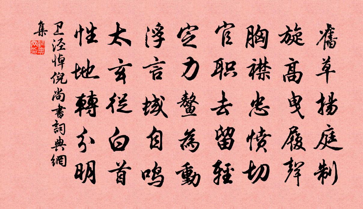 詩詞名句歷史字典書法欣賞書法字典國語詞典說文解字康熙字典古漢語字典標 題 作 者 詩 句 悼倪尚書作者:衛涇 朝代:宋代悼倪尚書原文舊草揚庭制,旋高曳履聲。胸襟忠憤切,官職去留輕。定力鰲為動,浮言蜮自鳴。太玄從白首,性地轉分明。詩詞問答問:悼倪尚書的作者是誰?答:衛涇問:悼倪尚書寫於哪個朝代?答:宋代衛涇悼倪尚書書法欣賞悼倪尚書書法作品詩詞推薦山閣偶書林逋〔宋代〕繞舍青山看未足,故穿林表架危軒。但將松籟延佳客,常帶嵐霏認遠村。吳榜自能凌晚汰,湘纍何苦屬芳蓀。餘生過靈石三峰陸游〔宋代〕曉日曈曨雪未殘,三峰傑立插雲間。老夫合是征西將,胸次先收一華山。魯吉父以詩招客次韻王洋〔宋代〕醉吟居士桃李曲,忠孝相家鸚鵡杯。情隨蘭畹碧香注,詩送茶山煙雨來。溪邊官柳意欲盡,枝上海棠紅半開。不應題書畫什後釋智愚〔宋代〕發揮多古蹟,優彼色絲辭。逸少觀鵝處,玄暉縱墨時。室虛蛟自觸,神久樹生悲。得處何機感,尋披當爾思。觀西淙千丈瀑布胡仲弓〔宋代〕萬斛明珠萬疊雷,分明激破白雲堆。何因卷上銀河去,莫放瀨溪橋下來。郊廟歌辭。儀坤廟樂章。永和祝欽明〔唐代〕閟宮實實,清廟微微。降格無象,馨香有依。式昭纂慶,方融嗣徽。明禋是享,神保聿歸。瑞鷓鴣(送晁伯如舅席上作)侯置〔宋代〕遙天拍水共空明。玉鏡浚嚀氐厙紜<窔殼鍶菸尷迧好,舉頭醉眼暫須醒。白眉公子催行急,碧落仙人著句清。後夜和同官問耳疾六首曹勛〔宋代〕袁宏方詠史,江總得隨時。歸興連天去,文盟落筆知。雨多移蟻垤,花過靜蜂兒。賴有西齋友,薰風正入詩。李德秀致即席賦五言十韻用韻答之魏了翁〔宋代〕冬十有二月,朞三日六旬。高懷局宇宙,良會惜參辰。乘興訪安道,扣窗呼孔賓。襲人薰蕙若,奪目爛犀珍。風景錢氏隱居三首李流謙〔宋代〕遠樹高低見,清溪曲折流。草眠耕後犢,波泛狎余鷗。醒醉無人管,登臨各自愁。扁舟大如葉,爛漫作春遊。呈曹子方晁補之〔宋代〕曹子金門等陸沉,壯年裘馬四方心。檄傅白羽從沙井,詩寫紅巾遍武林。兵甲胸中無敵國,絲桐世外有知音。相逢小三郎試院高捷喜成四韻曹勛〔宋代〕吾侄千里駒,一噴綠沙外。韜鈐本書史,方略挾經緯。小出附眾策,坐使勍敵潰。持弧褦襶子,雨汗亦良愧。為劉定伯索油蕨文天祥〔宋代〕我欲登山去採薇,江南秋雨正霏霏。仙家解有逡巡手,一籌西風落翠微。【仙呂】小醋大 情佚名〔元代〕暗潮拍岸,斷江風掃蘆花,鷗鷺破煙飛落汀沙。見漁舍兩三家,在夕陽下,一簇晚景堪畫。悶無語時將珠淚灑,愁贈稠長老區仕衡〔宋代〕雙樹林間結草庵,拈花一笑拜瞿曇。玄風像栗餐亭午,堂下門徒且放參。黃岩令鄭仁叔索委羽洞詩樓鑰〔宋代〕君不見王君羽化脫秦厄,故山至今名落翮。又不見烏程野鶴投氅毛,佞臣稱瑞民斯勞。何如奉林控鶴登清霄,傷然自吳岳歸李復〔宋代〕鳴鳳岡邊路,秋風動夕嵐。閒雲依絕壁,獨鳥下空潭。疇昔經行慣,重來委曲諳。試尋遺墨在,投策訪僧龕。詠華林書院陳靖〔宋代〕卓爾西山百里強,累年家有桂枝香。萬株松竹封三徑,數世兒孫食一堂。客舍遠連虛席密,縣衙斜引闕門長。就中蝶軒讀易幾舒岳祥〔宋代〕負薪收芋栗,捫虱曝荊扉。落日烏行亂,清霜杏葉飛。歲窮終有復,人老自知非。兀兀窗西夜,吾方理易幾。次韻德先步月答所問語魏了翁〔宋代〕夜景湛虛明,浩然無與京。如今蘇氏婦,但指聖人清。名句推薦又莫是東風逐君來,便吹散眉間一點春皺蘇軾《洞仙歌·詠柳》 軍歌應唱大刀環,誓滅胡奴出玉關。徐錫麟《出塞》 酒後競風采,三杯弄寶刀。李白《白馬篇》 落梅庭榭香,芳草池塘綠。晏幾道《生查子·落梅庭榭香》 數州訊息斷,愁坐正書空。杜甫《對雪》 水上遊人沙上女,回顧,笑指芭蕉林里住。歐陽炯《南鄉子·畫舸停橈》 風也蕭蕭,雨也蕭蕭,瘦盡燈花又一宵。納蘭性德《採桑子·誰翻樂府淒涼曲》 寒來暑往,秋收冬藏。周興嗣《千字文·全文》 孰知不向邊庭苦,縱死猶聞俠骨香。王維《少年行四首》 柳外輕雷池上雨,雨聲滴碎荷聲。歐陽修《臨江仙·柳外輕雷池上雨》