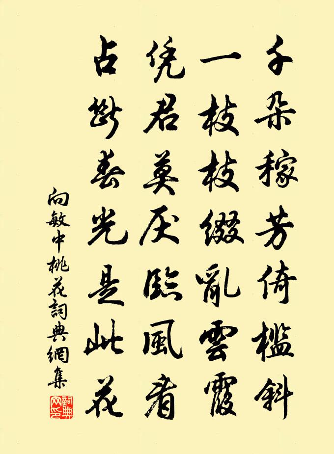 詩詞名句歷史字典書法欣賞書法字典國語詞典說文解字康熙字典古漢語字典標 題 作 者 詩 句 桃花作者:向敏中 朝代:宋代桃花原文千朵稼芳倚檻斜,一枝枝綴亂雲霞。憑君莫厭臨風看,占斷春光是此花。詩詞問答問:桃花的作者是誰?答:向敏中問:桃花寫於哪個朝代?答:宋代向敏中桃花書法欣賞桃花書法作品詩詞推薦詠丹桂贈周純甫馮德厚袁甫〔宋代〕一種自然色,如吾方寸丹。天教傳信到,人莫作花看。骨氣超凡俗,聲名徹廣寒。留君良為此,憶別鼻休酸。六經陸游〔宋代〕六經聖所傳,百代尊元龜;諄諄布方冊,一字不汝欺。抱書入家塾,自汝兒童時,老乃幸不驗,愚哉死何悲!謝墳劉克莊〔宋代〕一月山行未有梅,曉來戲著小詩催。謝家墳寺更衣處,初見牆西半樹開。真珠簾佚名〔宋代〕落紅幾陣清明雨。憶花期、半被睛慳寒阻。新柳著春濃,早翠池波妒。粉雨香去訊息遠,溫舊日、鞦韆庭宇。凝佇致政龍圖給事徐公輓詞二首韓元吉〔宋代〕今代詢黃髮,臨雍缺盛儀。久從曾釜樂,俄重鯉庭悲。德履嗟如在,功名誤見期。平生拄頤劍,聊掛墓門枝。過鄰家陸游〔宋代〕今日病良已,筇枝發興新。高居遺世事,一笑過吾鄰。夕照明丹葉,秋風老白苹。素衣雖化盡,不為犯京塵。早梅謝燮〔南北朝〕迎春故早發,獨自不疑寒。畏落眾花後,無人別意看。水仙圖王冕〔元代〕寒風蕭蕭夜入戶,渺渺雲飛水仙府。仙人一去不知所,池館荒涼似無主。江城歲晚路途阻,邂逅相看顏色古。環佩前恩陽尉周邦舉出予兄激仲所書其父竹軒記求晁公溯〔宋代〕俗士胸中數斛塵,此君偃蹇不相親。當年曾識子猷面,大令今來是故人。晚晴寄滿子權王令〔宋代〕常恐朝陰至夕曛,好風吹去信多勤。得逢白日忽開眼,可惜青天尚有雲。安得植梯懸碧落,共操長帚掃妖氛。恨無再酬復言和前篇元稹〔唐代〕經過二郡逢賢牧,聚集諸郎宴老身。清夜漫勞紅燭會,白頭非是翠娥鄰。曾攜酒伴無端宿,自入朝行便別春。潦倒與謝翱贈答詩金車美人〔唐代〕陽台後會杳無期,碧樹煙深玉漏遲。半夜香風滿庭月,花前空賦別離詩。相思無路莫相思,風裡花開只片時。惆悵送葉夢錫赴荊南韓元吉〔宋代〕南郡開邊古上流,君王側席用嘉謀。壯懷何止入雲夢,雄略行看半九州。風勁鼓聲連岸動,雪晴江影與天浮。一樽感遇二十五首張耒〔宋代〕治疾弭靈藥,爽然疾有瘳。因茲涉方書,仙聖或可求。豈疾乃可治,而生不可留。吾將飛五金,息駕於蓬丘。南鄉子元好問〔金代〕幽意曲中傳。總是才情得處偏。唱到斷腸聲欲斷,還連。一串驪珠個個圓。畫扇綺羅筵。韓馬風流在眼前。坐上有過故崔兗海宅與崔明秀才話舊因寄舊僚杜趙李三掾李商隱〔唐代〕絳帳恩如昨,烏衣事莫尋。諸生空會葬,舊掾已華簪。共入留賓驛,俱分市駿金。莫憑無鬼論,終負託孤心。守居園池雜題橫湖文同〔宋代〕長湖直東西,漾漾承守寢。一望見荷花,天機織雲錦。選冠子張景修〔宋代〕嫩水挼藍,遙堤映翠,半雨半煙橋畔。鳴禽弄舌,蔓草縈心,偏稱謝家池館。紅粉牆頭,柳搖金縷,纖柔舞腰低軟蝶戀花 賦來禽歇枝王惲〔元代〕今歲尋芳春已誤。一粒丹砂,不到來禽樹。滿意紅芳春也妒。長條簇滿珍禽羽。花道無情應有素。似惜金尊,一醉和鄭校書夏日游鄭泉劉得仁〔唐代〕太虛懸畏景,古木蔽清陰。爰有泉堪挹,閒思日可尋。來聞鳴滴滴,照竦碧沈沈。幾脈成溪壑,何人測淺深。澄時名句推薦西風多少恨,吹不散眉彎。納蘭性德《臨江仙·寒柳》 送君九月交河北,雪裡題詩淚滿衣。岑參《送崔子還京》 猶記得、當年深隱,門掩兩三株。張炎《渡江雲·山陰久客一再逢春回憶西杭渺然愁思》 煙籠寒水月籠沙,夜泊秦淮近酒家。杜牧《泊秦淮》 昨夜西風凋碧樹,獨上高樓,望盡天涯路。晏殊《蝶戀花·檻菊愁煙蘭泣露》 食者,國之寶也;兵者,國之爪也墨子《墨子·05章 七患》 妙極生知,睿哲惟宰。精理為文,秀氣成采。劉勰《文心雕龍·徵聖》 欲寄書如天遠,難銷夜似年長。賀鑄《西江月·攜手看花深徑》 總為浮雲能蔽日,長安不見使人愁。李白《登金陵鳳凰台》 如花美眷,似水流年曹雪芹《紅樓夢·第二十三回》