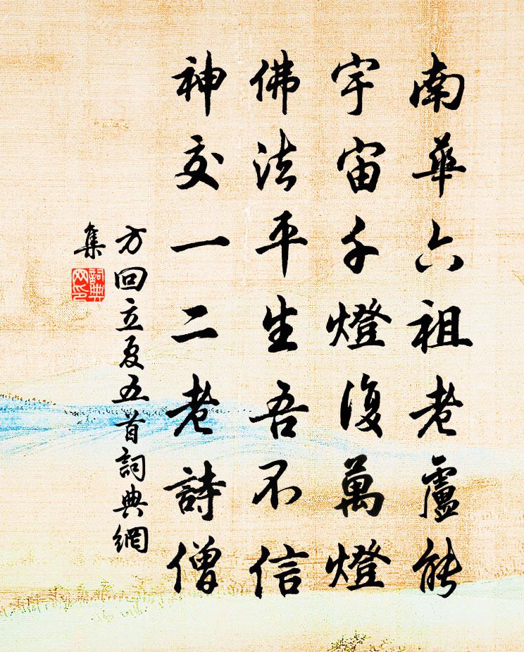 詩詞名句歷史字典書法欣賞書法字典國語詞典說文解字康熙字典古漢語字典標 題 作 者 詩 句 立夏五首作者:方回 朝代:宋代立夏五首原文南華六祖老盧能,宇宙千燈復萬燈。佛法平生吾不信,神交一二老詩僧。詩詞問答問:立夏五首的作者是誰?答:方回問:立夏五首寫於哪個朝代?答:宋代方回立夏五首書法欣賞立夏五首書法作品詩詞推薦次韻譚彥成學士早春五首李彌遜〔宋代〕幽棲不寄絕交書,車馬從喧賣酒壚。臥轉午陰春睡足,卻尋峰樹數花須。贈富公丘葵〔宋代〕師年過七十,萬事總無心。猿鳥窺禪性,魚龍避梵音。煙消香篆冷,霜入鬢根深。手種庵前樹,蒼蒼十丈陰。水調歌頭劉辰翁〔宋代〕子。且三疊前水調以證之,於是某得自號為小耐。是甚無似,不敢當。顧公所覽揆如此,誼不虛辱,敢續之好歌,復過二首蘇泂〔宋代〕西風奕奕細吟商,客枕悽然一夜涼。吟盡苹花渾可事,少留荷葉蓋鴛鴦。當塗叔祖生朝以顧亮畫雙松鹿雀為壽張鎡〔宋代〕維崧之顛仙所巢,凡卉不敢爭分淆。千年雙乾騰老蛟,露月沐浴風枝敲。雪霜貿貿青愈苞,天授非論地肥磽。翼而賈客詞劉禹錫〔唐代〕賈客無定游,所游唯利並。眩俗雜良苦,乘時取重輕。心計析秋毫,搖鉤侔懸衡。錐刀既無棄,轉化日已盈。邀福偈頌一百二十三首釋崇岳〔宋代〕元正改旦,事事成現。有時放行,有時坐斷。不惜兩莖眉,和坐盤掇轉。佛法世法,都盧一片。既是拂法世法,如送韓校書許渾〔唐代〕恨與前歡隔,愁因此會同。跡高芸閣吏,名散雪樓翁。城閉三秋雨,帆飛一夜風。酒醒鱸鱠美,應在竟陵東。挽劉南坡金履祥〔宋代〕憶昔端平轉化弦,公時輸委為安邊。鼎成龍御方賓帝,弓墮烏號亦蛻仙。漫仕此情初已薄,愛君一念世逾堅。典刑滿庭芳蔡伸〔宋代〕煙鎖長堤,雲橫孤嶼,斷橋流水溶溶。憑闌凝望,遠目送征鴻。桃葉溪邊舊事,如春夢、回首無蹤。難忘處,紫薇酹江月(信豐賦茉莉)趙師俠〔宋代〕化工何意,向天涯海嶠,有花清絕。縞袂綠裳無俗韻,不畏炎荒煩熱。玉骨無塵,冰姿有艷,雅淡天然別。真香冶識村翁語陳造〔宋代〕山僧一生饜山蔌,溪叟所仰才魚菽。闖首侯家與相家,珍膳不應填汝腹。百二歲翁清且羸,茵坐鼎食寧其宜。焉知送高起居之涇縣徐鉉〔唐代〕右史罷朝歸,之官句水湄。別我行千里,送君傾一卮。酒罷長嘆息,此嘆君應悲。亂中吾道薄,卿族舊人稀。胡為頌古二十八首釋道川〔宋代〕師子咬人,狂狗逐塊。三十里來方始悟,何似當初莫入去。寄表弟章由之為理曲堆屋廬林亦之〔宋代〕苦來為客竟何為,宅舍荒村誰與治。別墅雖無輞川畫,生涯堪入杜陵詩。身如燕子年年去,家似漁舟處處移。丹井鹽池院觀鹿賈島〔唐代〕條峰五老勢相連,此鹿來從若個邊。別有野麋人不見,一生長飲白雲泉。祈雨而應范簿有詩次韻四首陳造〔宋代〕瓣香親謁睡岩龍,高臥逶迤豈自公。岩下望龍鬚一怒,向來作止系凶豐。秋思陸游〔宋代〕才不才間未必全,胸中元自要超然。黃金不博身強健,且醉江湖萬里天。九宮壇齋居蔡戡〔宋代〕齋居獨臥小禪房,暫得心閒氣味長。一炷爐熏春睡足,此身疑是在家鄉。晦日重宴弓嗣初〔唐代〕年華藹芳隰,春溜滿新池。促賞依三友,延歡寄一卮。鳥聲隨管變,花影逐風移。行樂方無極,淹留惜晚曦。名句推薦千門開鎖萬燈明,正月中旬動帝京。張祜《正月十五夜燈》 欲寄書如天遠,難銷夜似年長。賀鑄《西江月·攜手看花深徑》 遠上寒山石徑斜,白雲生處有人家。杜牧《山行》 白馬黃金塞,雲砂繞夢思。李白《塞下曲六首》 何處合成愁。吳文英《唐多令·惜別》 草樹知春不久歸,百般紅紫斗芳菲。韓愈《晚春》 客路相逢難,為樂常不足。蘇軾《送頓起》 水際輕煙,沙邊微雨。荷花芳草垂楊渡。劉將孫《踏莎行·閒遊》 數人世相逢,百年歡笑,能得幾回又。何夢桂《摸魚兒·記年時人人何處》 西陸蟬聲唱,南冠客思深。駱賓王《詠蟬 / 在獄詠蟬》