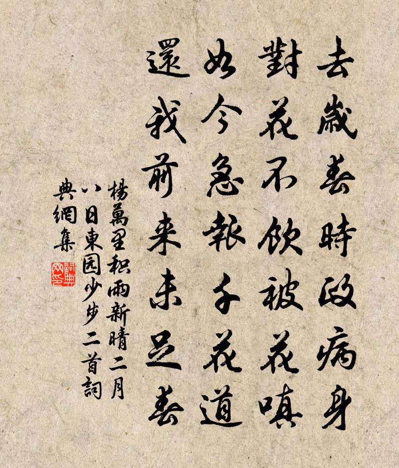 去歲春時政病身,對花不飲被花嗔。如今急報千花道,還我前來未足春。