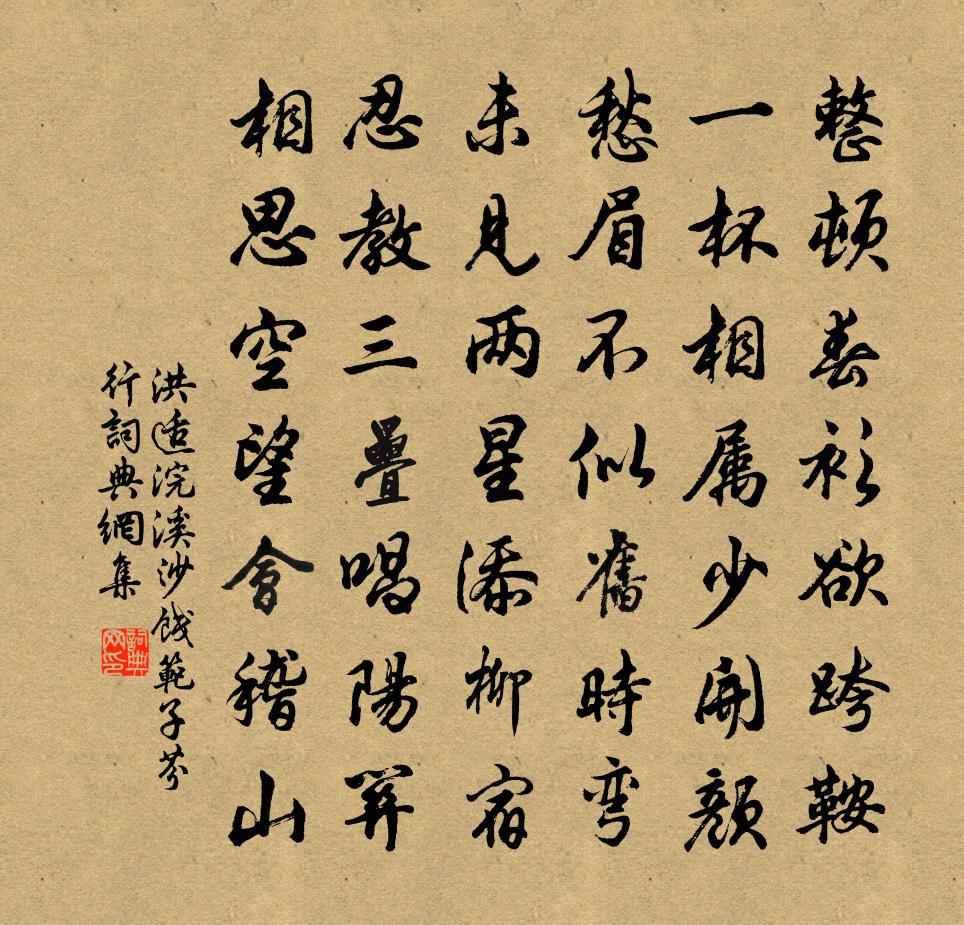 詩詞名句歷史字典書法欣賞書法字典國語詞典說文解字康熙字典古漢語字典標 題 作 者 詩 句 浣溪沙(餞范子芬行)作者:洪适 朝代:宋代浣溪沙(餞范子芬行)原文整頓春衫欲跨鞍。一杯相屬少開顏。愁眉不似舊時彎。未見兩星添柳宿,忍教三疊唱陽關。相思空望會稽山。詩詞問答問:浣溪沙(餞范子芬行)的作者是誰?答:洪适問:浣溪沙(餞范子芬行)寫於哪個朝代?答:宋代問:浣溪沙(餞范子芬行)是什麼體裁?答:詞洪适浣溪沙(餞范子芬行)書法欣賞浣溪沙(餞范子芬行)書法作品詩詞推薦次韻賓暘齋中獨坐五首方回〔宋代〕蟻潰金隄薄俗頹,聖門誰與嗣雲來。良難托諷追風雅,只可微辭紀定哀。有志向能穿虎石,無疑今始悟蛇杯。掀天觀田家收穫(三首選一)歸莊〔清代〕稻香秫熟暮秋天,阡陌縱橫萬畝連。五載輸糧女真國,天全我志獨無田。寄程給事王安石〔宋代〕憶昔都門手一攜,春禽初向薴蘿啼。夢回金殿風光別,吟到銀河月影低。舞急錦腰迎十八,酒酣金盞照東西。何時淳熙七年端午帖子詞皇后合六首崔敦詩〔宋代〕厚德承三殿,柔風被八弦。欲知勤儉化,當暑浣衣清。秋夜白玉蟾〔宋代〕有客眠孤館,更闌擁紙衾。清風千里夢,明月一聲砧。素壁秋燈暗,紅爐火夜深。寒猿啼嶺外,惹起故鄉心。廬山中即事二首董嗣杲〔宋代〕樹密攢煙靄,泉甘護土田。妝嚴仙佛遍,呵護鬼神專。蓮社招無地,桃源別有天。萬峰空削玉,紛絕構三椽。詠菊曹雪芹〔清代〕無賴詩魔昏曉侵,繞籬欹石自沉音。毫端蘊秀臨霜寫,口齒噙香對月吟。滿紙自憐題素怨,片言誰解訴秋心?一從答振武李逢吉判官楊巨源〔唐代〕近來時輩都無興,把酒皆言肺病同。唯有單于李評事,不將華發負春風。答張念五韓維〔宋代〕浮雲名宦只勞人,解組歸來徑杜門。繼世命官聯六傅,傳家與子及諸孫。聖賢相對書千帙,閭里交歡酒一樽。荷芰贈仲勉子文黃庭堅〔宋代〕雨昏南浦曾相對,雪滿荊州喜再逢。有子才如不羈馬,知君心似後凋松。閒看書冊應多味,老傍人門想更慵。何日山中憶鶴林白玉蟾〔宋代〕蒼崖兮巍巍,對落花兮倚斜暉。猿啼兮鶴唳,望美人兮天一隅。留山間種藝十絕劉克莊〔宋代〕羞與春華艷冶同,殷勤培溉待秋風。不須牽引淵明比,隨分籬邊要幾叢。夜泉袁中道〔〕山白鳥忽鳴,石冷霜欲結。流泉得月光,化為一溪雪。翦朝霞(牡丹同前)賀鑄〔宋代〕雲弄輕陰穀雨乾。半垂油幕護殘寒。化工著意呈新巧,翦刻朝霞飣露盤。輝錦繡,掩芝蘭。開元天寶盛長安。沈香郡寮按樂飲趙判院有詩次其韻陳造〔宋代〕簿書棼如絲,取樂得少空。悠然杯勺興,藉此歌舞送。從事來官廚,醉不睡鄰瓮。衣裳剩蘭澤,言議雜囂哄。人生次韻林子中春日新堤書事見寄蘇軾〔宋代〕東都寄食似孤雲,襆被真成一宿賓。收得玉堂揮翰手,卻為淮月弄舟人。羨君湖上齋搖碧,笑我花時甑有塵。為報丁卯元日十首劉克莊〔宋代〕五疇初行禋類禮,萬金難買歲朝晴。老臣縱有甘棠頌,未必朝廷記姓名。禪人並化主寫真求贊釋正覺〔宋代〕癯形老殘,孤節歲寒。照頂髑髏眼,隨緣赤肉團。六街三市尋人去,相喚門門儘是檀。句厲文翁〔宋代〕若見集英門外柳,為言曾惹御爐香。人月圓楊無咎〔宋代〕風和日蒲余煙嫩,測測透鮫綃。相逢且喜,人圓玳席,月滿丹霄。爛游勝賞,高低燈火,鼎沸笙簫。一年三百六十名句推薦願學秋胡婦,貞心比古松。李白《湖邊採蓮婦》 誰忍窺河漢,迢迢問鬥牛。孟浩然《他鄉七夕》 年年陌上生秋草,日日樓中到夕陽。晏幾道《鷓鴣天·醉拍春衫惜舊香》 短籬殘菊一枝黃。正是亂山深處、過重陽。呂本中《南歌子·驛路侵斜月》 春思亂,芳心碎。惠洪《千秋歲·半身屏外》 還始覺、留情緣眼,寬頻因春。吳文英《渡江雲三犯·西湖清明》 夜寒不近流蘇,只憐他、後庭梅瘦。毛滂《上林春令·十一月三十日見雪》 鼎湖流水清且閒,軒轅去時有弓劍,古人傳道留其間李白《飛龍引二首·其二》 文武之政,布在方策。其人存,則其政舉;其人亡,則其政息。子思《中庸·第二十章》 道由白雲盡,春與青溪長。劉昚虛《闕題》