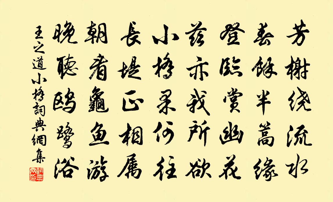詩詞名句歷史字典書法欣賞書法字典國語詞典說文解字康熙字典古漢語字典標 題 作 者 詩 句 小橋作者:王之道 朝代:宋代小橋原文芳榭繞流水,春餘半篙緣。登臨賞幽花,茲亦我所欲。小橋果何往,長堤正相屬。朝看龜魚游,晚聽鷗鷺浴。詩詞問答問:小橋的作者是誰?答:王之道問:小橋寫於哪個朝代?答:宋代王之道小橋書法欣賞小橋書法作品詩詞推薦深冬積暖乍寒曾豐〔宋代〕冬令將終尚未霜,伏陰猶強遜愆陽。連旬逗暖日驕放,半夜邀寒風怒張。蟲不開關平引退,木無背本隱歸藏。道消易水辭白玉蟾〔宋代〕天為燕丹畜趙高,風鳴易水止荊軻。不令劉季身秦怨,卻速吳陳此水過。秦王環柱劉光急,尺八匕首手死執。伊獨南湖史君制暗香湯奇甚賦二絕求之陳深〔宋代〕霧閣雲窗深閉春,微聞玉杵搗清聲。玄霜只許雲英見,地上詩人渴夢生。碧芙蓉(九日)秦觀〔宋代〕客里遇重陽,孤館一杯,聊賞佳節。日暖天晴,喜秋光清絕。霜乍降、寒山凝紫,霧初消、澄潭皎潔。闌乾閒倚,次韻楊宰捕蝗宿競岩四首陳造〔宋代〕歸來聞道頗休閒,蝗事今隨暑氣殘。我欲一樽供軟腳,還能沖雨過蘇端。送沈記室夜別范雲〔南北朝〕桂水澄夜氛,楚山清曉雲。秋風兩鄉怨,秋月千里分。寒枝寧共采,霜猿行獨聞。捫蘿正意我,折桂方思君。河北諺佚名〔唐代〕山東一條葛,無事莫撩撥。游武昌張耒〔宋代〕一葉橫江凌浩渺,李君見我迎門笑。鵝黃初熟醅旋壓,書室焚香地新掃。淋漓歌笑不知夜,竹榻枕藉眠諸少。老人徐榛第一百三十四文天祥〔宋代〕正將徐榛,溫州人。其父官湖北,榛往省,迷失道,歸行府。後生精練,以筆札典機密,小心可信。予被執,榛得喜遷鶯·人洶洶韋莊〔唐代〕人洶洶,鼓冬冬,襟袖五更風。大羅天上月朦朧,騎馬上虛空。香滿衣,雲滿路,鸞鳳繞身飛舞。霓旌絳節一群群偈釋了性〔宋代〕一葦江頭楊柳春,波心不見昔時人。雪庭要識安心士,鼻孔依前搭上唇。日本然上人2釋紹曇〔宋代〕奔趨客路困塵泥,蟻夢方酣蝶夢飛。賴有啼鵑知此意,一聲聲勸不如歸。子胥廟黃庚〔宋代〕伍相祠前雲氣昏,奔吳心事與誰論。怒濤夜半翻江月,疑是忠臣一片魂。和前韻呈李果州劉宰〔宋代〕行樂非吾事,朋從慰此生。劇談忘夜永,起立緩杯行。黃獨幽人供,朱弦太古聲。他年盛出集,不假退之評。相逢行唐寅〔明代〕相逢狹邪間,車窒馬不旋。雖言異鄉縣,豈非往世緣。脫轂且卷鞭,高揖問君廛。女弟新承寵,阿大李延年。何以句种放〔宋代〕綠萼紅葩晚態新,風流如陣戰愁人。放還遇賈似道葉李〔宋代〕君來路,吾歸路,來來去去何時住。公田關子竟何如,國事當時誰汝誤。雷州戶,崖州戶,人生會有相逢處。客中水調歌頭(李參政壁生日)魏了翁〔宋代〕宇宙一大物,掌握付諸人。人心不滿方寸,坱北浩無垠。或者寒蟬自比,不爾禿犀貽笑,齪齪竟何成。胡不引賢者奉和聖製社日晏殊〔宋代〕天官考歷占元日,浹宇祈農協盛時,芟柞尚傳周室頌,枌榆仍秩漢家祠。三農普遂耕耘樂,萬象均承雨露滋。推策和周記室從駕曉發合璧宮李嶠〔唐代〕濯龍春苑曙,翠鳳曉旗舒。野色開煙後,山光澹月餘。風長笳煙咽,川迥騎行疏。珠履陪仙駕,金聲振屬車。名句推薦靜夜沉沉,浮光靄靄,冷浸溶溶月。丘處機《無俗念·靈虛宮梨花詞》 金絡青驄白玉鞍,長鞭紫陌野遊盤。萬楚《驄馬》 月明船笛參差起,風定池蓮自在香。秦觀《納涼》 一任紫玉無情,夜寒吹裂納蘭性德《琵琶仙·中秋》 疏星淡月鞦韆院,愁雲恨雨芙蓉面。張可久《塞鴻秋·春情》 庭中有奇樹,綠葉發華滋。佚名《庭中有奇樹》 萬里嬋娟,幾許霧屏雲幔。吳文英《玉漏遲·瓜涇度中秋夕賦》 委肉當餓虎之蹊,禍必不振矣!劉向《戰國策·燕三·燕太子丹質於秦亡歸》 肅肅花絮晚,菲菲紅素輕。杜甫《春遠 / 春運》 草木也知愁,韶華竟白頭。曹雪芹《唐多令·柳絮》