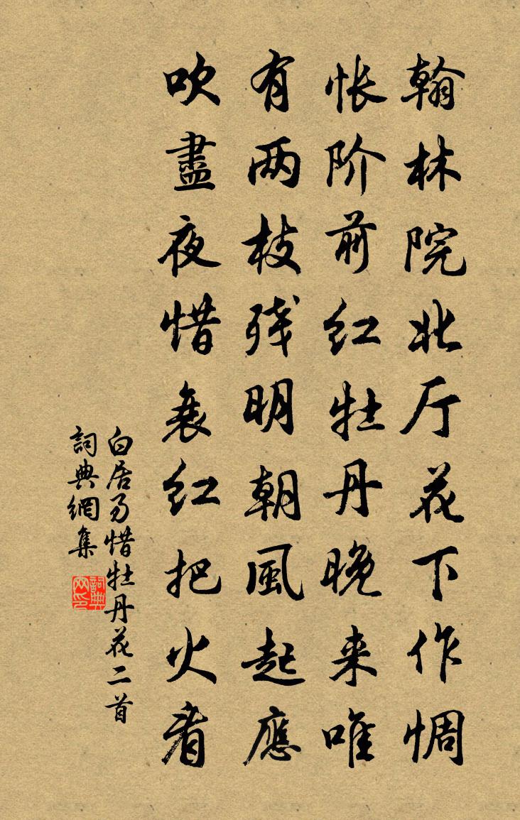 在群芳鬥豔的花季里,被譽為國色天香的牡丹花總是姍姍開遲,待到她占斷春光的時候,一春花事已經將到盡期。歷代多愁善感的詩人,對於傷春惜花的題材總是百詠不厭。而白居易這首《惜牡丹花》卻在無數惜花詩中別具一格。人們向來在花落之後才知惜花,此詩一反常情,卻由鮮花盛開之時想到紅衰香褪之日,以把火照花的新鮮立意表現了對牡丹的無限憐惜,寄寓了歲月流逝、青春難駐的深沉感慨。