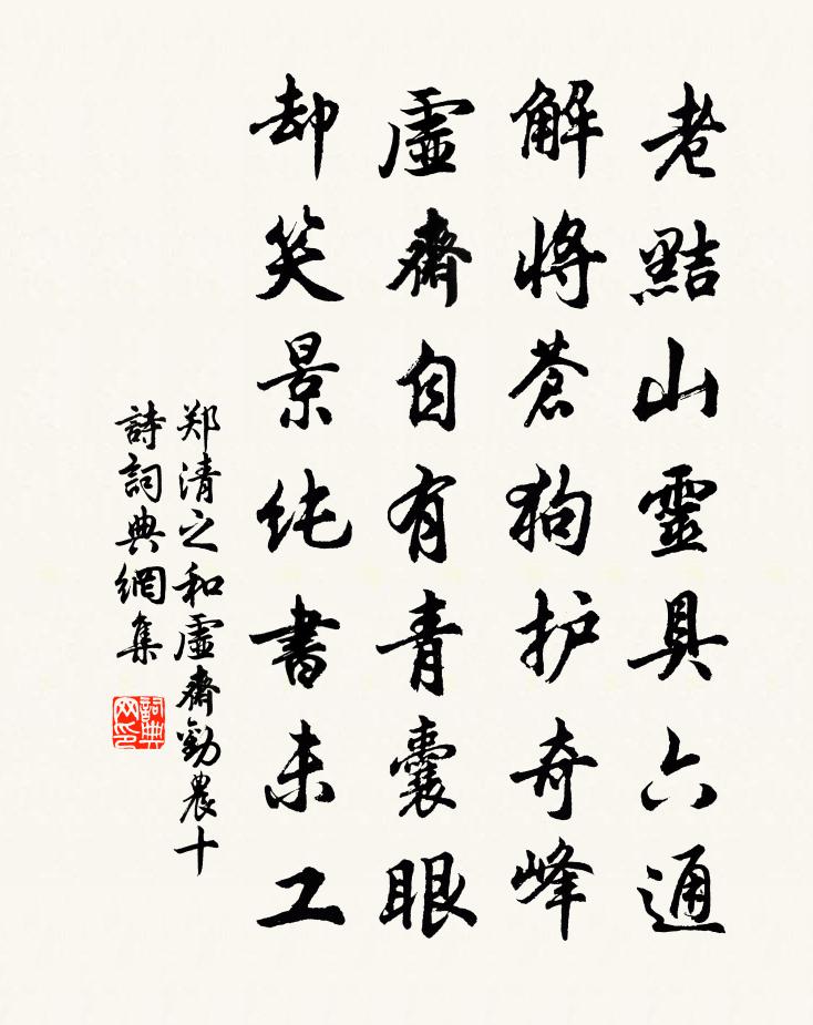詩詞名句歷史字典書法欣賞書法字典國語詞典說文解字康熙字典古漢語字典標 題 作 者 詩 句 和虛齋勸農十詩作者:鄭清之 朝代:宋代和虛齋勸農十詩原文老黠山靈具六通,解將蒼狗護奇峰。虛齋自有青囊眼,卻笑景純書未工。詩詞問答問:和虛齋勸農十詩的作者是誰?答:鄭清之問:和虛齋勸農十詩寫於哪個朝代?答:宋代鄭清之和虛齋勸農十詩書法欣賞和虛齋勸農十詩書法作品詩詞推薦常祀皇地祗五首佚名〔宋代〕禮經之重,祭典為字。上公揶事,登降彌恭。庶品豈潔,令們肅雍。百祥萃止,維吉之從。摸魚兒 送黃任伯歸豐城,時任伯放其妾還家張翥〔元代〕正匆匆、楚鄉秋晚,孤鴻飛過南浦。同來桃葉堪惆悵,一舸載春先去。愁絕處。問那曲闌乾,曾聽人低語。今宵最吳故宮常建〔唐代〕越女歌長君且聽,芙蓉香滿水邊城。豈知一日終非主,猶自如今有怨聲。鷓鴣天賀鑄〔宋代〕轟醉王孫玳瑁筵。渴虹垂地吸長川。側商調里清歌送,破盡窮愁直幾錢。孤棹艤,小江邊。愛而不見酒中仙。傷心清風十韻晃逈〔宋代〕仙御琴來相慰,琴解顏良會琴稀。病蠲琴宜養素,趣遠欲忘機。懲躁能無漸,延齡或可祈。影搖珠箔細,聲泛鈿箏謁金門石孝友〔宋代〕山雨絕。山重冷如冰雪。窗外芭蕉三兩葉。影排窗上月。醉枕驚回蝴蝶。好夢無人共說。心事悠悠芳草歇。不眠聽山中酬楊補闕見過錢起〔唐代〕日暖風恬種藥時,紅泉翠壁薜蘿垂。幽溪鹿過苔還靜,深樹雲來鳥不知。青瑣同心多逸興,春山載酒遠相隨。卻慚杜司勛李商隱〔唐代〕高樓風雨感斯文,短翼差池不及群。刻意傷春復傷別,人間惟有杜司勛。偶作二首曾協〔宋代〕世人言語盡君房,一一班聯玉殿香。解識逍遙渾一致,水鳧非短鶴非長。送李堂病歸石介〔宋代〕春風汶水溫,曉日徂徠寒。之子銜病歸,請予聞一言。予知去病術,為子陳大端。予嘗學聖人,試將道比論。道病漫興二首趙友直〔宋代〕偃息林臯與世違,興來長嘯不妨痴。素懷欲辟留侯谷,僻性耽茹甪里芝。漫謂五湖真樂事,須夸三徑足幽棲。時人次韻前人新晴三首陳著〔宋代〕泥香風軟燕忙時,宿雨微中起較遲。試卷珠簾問花事,畫鞦韆外裊晴絲。六叔父生朝三首項安世〔宋代〕拂拂南薰入燕堂,獸爐清潤酒尊涼。筵開湯餅麥初熟,彩結茶花絲正香。翠竹有孫添夏筍,紅榴能笑發春妝。都將寶嚴寺舒坦〔宋代〕四山煙雨收,雙沼漾晴碧。白鳥忽飛來,點破檐前色。斑竹佚名〔宋代〕濃綠疏莖繞湘水,春風抽出蛟龍尾。色抱霜花粉黛光,枝撐蜀錦紅霞起。交戛敲欹無俗聲,滿林風曳刀槍橫。殷痕故宮陳允平〔宋代〕瓊台玉館照青紅,夢斷思陵檜柏風。三十二門金鎖合,年年春到掃梧桐。殘年陸游〔宋代〕殘年垂八十,高臥豈逃名。泥巷多牛跡,茅檐有碓聲。炊菰觴父老,煮棗哺雛嬰。遣戍雖傳說,何時復兩京?春日行鮑照〔南北朝〕獻歲發,吾將行。春山茂,春日明。園中鳥,多嘉聲。梅始發,柳始青。泛舟艫,齊棹驚。奏《采菱》,歌《鹿鳴夜坐陸游〔宋代〕耿耿殘燈夜未央,負牆閒對篆盤香。風號東北河冰合,月落西南竹影長。孤鵲欲棲頻繞樹,寒龜無息穩搘床。頹然道山座主先生平章呂公輓歌辭五首方回〔宋代〕□公三十歲,死守漢陽城。焉得江陵閫,能支鄂渚兵。椿庭才不起,槐府已無情。最恨木綿鬼,乾坤一擲輕。名句推薦誰道投鞭飛渡,憶昔鳴髇血污,風雨佛狸愁辛棄疾《水調歌頭·舟次揚州和人韻》 禍褔無不自己求之者。孟子《孟子·公孫丑章句上·第四節》 蕃漢斷訊息,死生長別離。張籍《沒蕃故人》 黃鶯百舌正相呼,玉樹後庭花帶雨。牛殳《琵琶行》 孤客傷逝湍,徒旅苦奔峭。謝靈運《七里瀨》 中歲頗好道,晚家南山陲王維《終南別業》 聞說東風亦多情,被竹外、香留住。史達祖《留春令·詠梅花》 更可惜,雪中高樹,香篝熏素被。周邦彥《花犯·小石梅花》 蜂須輕惹百花心,蕙風蘭思寄清琴。薛昭蘊《浣溪沙·握手河橋柳似金》 木落雁南度,北風江上寒。孟浩然《早寒江上有懷 / 早寒有懷 / 江上思歸》