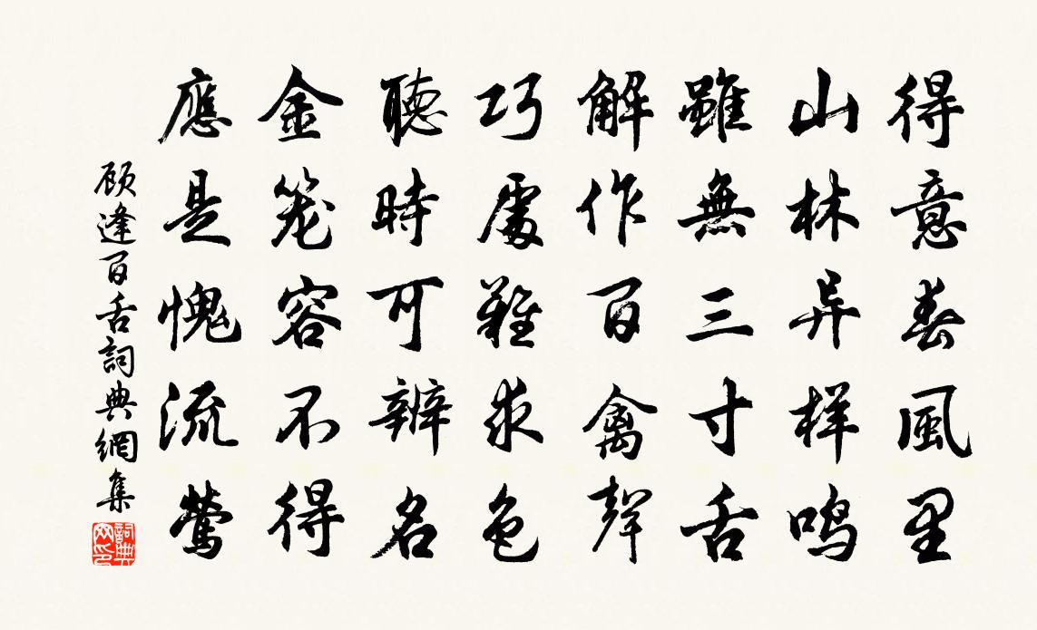 詩詞名句歷史字典書法欣賞書法字典國語詞典說文解字康熙字典古漢語字典標 題 作 者 詩 句 百舌作者:顧逢 朝代:宋代百舌原文得意春風裡,山林異樣鳴。雖無三寸舌,解作百禽聲。巧處難求色,聽時可辨名。金籠容不得,應是愧流鶯。詩詞問答問:百舌的作者是誰?答:顧逢問:百舌寫於哪個朝代?答:宋代顧逢百舌書法欣賞百舌書法作品詩詞推薦哀倪孟容父詞王柏〔宋代〕憶昔見公兮,季原之堂。兄弟怡怡兮,清約是將。藹子姓之弦歌兮,頭角昂昂。來者起敬兮,知德義之日昌。造化代弟茝詠梅畫十景飛花陳著〔宋代〕獨占初春早卸芳,肯隨桃李炫儂妝。如今不到壽陽額,自做孤村流水香。酬崔五郎中李白〔唐代〕朔雲橫高天,萬里起秋色。壯士心飛揚,落日空嘆息。長嘯出原野,凜然寒風生。幸遭聖明時,功業猶未成。奈何擬詠懷詩 十五庾信〔南北朝〕六國始咆哮。縱橫未定交。欲競連城玉。翻征縮酒茅。折骸猶換子。登爨已懸巢。壯冰初開地。盲風正折膠。輕雲紹定三年壽明仁福睿皇太后冊寶九首佚名〔宋代〕金堅玉純,文郁禮縟。來從帝年,作瑞王國。天開地闢,日熙春燠。茲謂盛事,永燕茀祿。志峽船具詩梢王周〔唐代〕制之居首尾,俾之辨斜正。首動尾聿隨,斜取正為定。有如提吏筆,有如執時柄。有如秉師律,有如宣命令。守彼念奴嬌(次韻范正之柳絮)劉學箕〔宋代〕水軒沙岸,午風輕、飄動一天晴雪。日色晶螢光眩眼,細逐遊絲明滅。簾幕中間,樓台側畔,渾是瑤瑛積。綴松黏竹黃大受〔宋代〕虛心懷月明,勁節挺玉立。豈是外春風,春風無處入。它山堰薛叔振〔宋代〕官為唐令尹,心切禹蒸民。疊石流川水,分波及稼雲。萬濤驚不夜,千古見如新。更有朝宗脈,聲容匪獨鄞。秦人竹豸留謠佚名〔唐代〕{豸留}{豸留}引黑牛,天差不自由。但看戊寅歲,揚在蜀江頭。鷓鴣天(壽定庵運管兄)張榘〔宋代〕飽挹台城白鷺秋。又騎黃鵠上江州。恩波浩蕩三千里,多少人家願借留。□壽斝,菊香浮。姓名還喜到宸旒。片□艾軒先生侍郎輓詞四首林亦之〔宋代〕菖蒲對客尚從容,明月紅泉夢已空。縱是千年有豪傑,六經人物只斯翁。舟中自吳之越寄潤州柳侍御開楊博士邁潘閬〔宋代〕兩岸山光合,況當三月天。好花紅照水,芳草綠隨船。貨藥村橋醉,收帆野渡眠。因思二朝客,同泛恐無緣。東坡在惠州窘於衣食以重九近有樽俎蕭然之嘆趙蕃〔宋代〕昔在龐德公,有足不入州。鸞鳳自有志,燕雀安可儔。乃知金石堅,不逐萬物流。當時天下事,固為長者憂。未易題秋茄圖錢選〔宋代〕憶昔毗山處寫生,瓜茄任我筆縱橫。自憐老去翻成拙,學圃今猶學不成。郊廟歌辭祀圜丘樂章雍和褚亮〔唐代〕欽惟大帝,載仰皇穹。始命田燭,爰啟郊宮。雲門駭聽,雷鼓鳴空。神其介祀,景祚斯融。卜運算元(三)陳師道〔宋代〕雪暗嶺頭雲,竹冷溪邊樹。還似瀟湘縹緲人,玉骨籠香霧。月下幽香度。夢裡香魂駐。回首南枝酒半醺,寂寞無尋山游示小妓白居易〔唐代〕雙鬟垂未合,三十才過半。本是綺羅人,今為山水伴。春泉共揮弄,好樹同攀玩。笑容花底迷,酒思風前亂。紅凝劉元煇來三首方回〔宋代〕君宅蒲荷岸,吾廬槿菊籬。相望能幾步,不見動逾時。老更甘清苦,閒應笑拙痴。門迎到花底,銜袖有新詩。古樂府姜夔〔宋代〕裁衣贈所嘆,曲領再三安。嘆出無人試,閨中自著看。名句推薦瞻彼洛城郭,微子為哀傷。曹操《薤露行》 相思難表,夢魂無據,惟有歸來是。歐陽修《青玉案·一年春事都來幾》 自昔佳人多薄命,對古來、一片傷心月。辛棄疾《賀新郎·用前韻送杜叔高》 南國有佳人,容華若桃李。曹植《雜詩·南國有佳人》 苦心中常得悅心之趣;得意時便一失意之悲。洪應明《菜根譚·概論》 見肝之病,知肝傳脾,當先實脾張仲景《金匱要略·卷上·藏府經絡先後病脈證一》 居而安,動而變,可以佐王矣。王通《中說·卷七·述史篇》 玉慘花愁出鳳城,蓮花樓下柳青青。聶勝瓊《鷓鴣天·別情》 黃華自與西風約,白髮先從遠客生。元好問《秋懷》 行人莫問當年事,故國東來渭水流。許渾《鹹陽城東樓 / 鹹陽城西樓晚眺 / 西門》