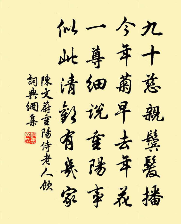 詩詞名句歷史字典書法欣賞書法字典國語詞典說文解字康熙字典古漢語字典標 題 作 者 詩 句 重陽侍老人飲作者:陳文蔚 朝代:宋代重陽侍老人飲原文九十慈親鬢髮播,今年菊早去年花。一尊細說重陽事,似此清歡有幾家。詩詞問答問:重陽侍老人飲的作者是誰?答:陳文蔚問:重陽侍老人飲寫於哪個朝代?答:宋代陳文蔚重陽侍老人飲書法欣賞重陽侍老人飲書法作品詩詞推薦秋深周朴〔唐代〕柳色尚沉沉,風吹秋更深。山河空遠道,鄉國自鳴砧。巷有千家月,人無萬里心。長城哭崩後,寂絕至如今。山中雜興 其三王冕〔元代〕居山還有趣,□地本無謀。相顧誰青眼?同盟盡白頭。豺狼迷道路,猿鳥傍林丘。休問巢由樂,吾心自可求。贈趙步師陳造〔宋代〕出處升沉轉首非,無端顛倒念分違。瘦羊博士尚骨立,白馬將軍今肉飛。共仰鉤陳明帝極,少須尺箠下金微。為公伏龍濺楊蟠〔宋代〕靜久波濤散,溪深涌亂絲。悠悠山下客,將見水停時。山中玩物雜言十首戴表元〔宋代〕蚯蚓食土壤,蚩蚩何所為。蜩蟬飲用露,蛻上高高枝。卑高慕其仙,飄颻安可追,倘令智相及,無羨亦無悲句張鎡〔宋代〕空對爛銀盤。四松杜甫〔唐代〕四松初移時,大抵三尺強。別來忽三載,離立如人長。會看根不拔,莫計枝凋傷。幽色幸秀髮,疏柯亦昂藏。所插玉糝羊歌劉宰〔宋代〕華陽洞口玉糝羊,世人傅得神人芳。雪團入口桂椒香,能令老者壽而康。瑤池玉佩正丁當,箬包聊薦九霞觴。世言箋年老逢春八首自知一賞有分付邵雍〔宋代〕箋云:群卉爭妍處,奇花獨異時,東君深意思,亦恐要人知。雜詩四首王之望〔宋代〕江發岷山陽,河出崑崙趾。淵源既洪深,浩浩並眾水。東流至渤澥,曲折萬餘里。經山無重數,過郡不知幾。海邊一病四十日天氣遂寒感懷有賦陸游〔宋代〕幽人病起鬢毛殘,硤口樓台九月寒。暮角又催孤夢斷,早霜初染一林丹。鄉閭乖隔知誰健?懷抱淒涼用底寬?麴米蜀漢陸游〔宋代〕憶昔遨遊蜀漢間,駸駸五十尚朱顏。呼鷹雪闇天迴路,採藥雲迷御愛山。舊事已無人共說,征途猶與夢相關。夕陽折桂令劉庭信〔元代〕想人生最苦離別。三個字細細分開,淒淒涼涼無了無歇。別字兒半晌痴呆,離字兒一時拆散,苦字兒兩下里堆疊。題沖真觀趙琥〔宋代〕琳館絕埃塵,溪山是四鄰。煙霞千古色,花木一庭春。月白琴聲朗,風清鶴唳頻。閒中時復醉,應笑市朝人。登屋東山作方回〔宋代〕我生鬼篾拘束,鬼萍梗墮游鬼宦。遲暮齒髮落,歸來歲已晏。□□一紀前,罷官避讒訕。故人為買地,誅茅偃岩澗夢覺張鎡〔宋代〕夢覺西窗曉,聽風過曲廊。好詩非易辨,閒坐盡無妨。人靜鳥烏喜,雨來花草香。寸心經患難,況復近秋涼。無題二首張玉孃〔宋代〕征雁初聞廢織梭,支頤機杼恨偏多。溪頭返影留斜日,湖上行舟盪芰荷。出山追術所見張鎡〔宋代〕我家正對風煙住,飽看陰晴變朝暮。清秋非但入詩脾,挽向溪山深處去。溪山深處是湖州,水合雲凝不斷頭。曬稻與張樞密羅仲舒〔宋代〕孤憤全憑尺素書,一官牢落竟何如。兵威似火難言熄,世事猶棋祗報輸。魚棄青蒲歸淺渚,鳥忘白粒墮枯株。札人長至日與同舍游北山范成大〔宋代〕歲晚山同色,湖平霧不收。寒雲低閣雪,佳節靜供愁。竹柏森嚴立,蒲荷索莫休。瘦筇知腳力,政爾耐清游。名句推薦可憐報國無路,空白一分頭。楊炎正《水調歌頭·登多景樓》 一聲已動物皆靜,四座無言星欲稀。李頎《琴歌》 父之讎,弗與共戴天。兄弟之讎不反兵。交遊之讎不同國。戴聖《禮記·曲禮上》 最愛東山晴後雪,軟紅光里涌銀山。楊萬里《最愛東山晴後雪》 良農不為水旱不耕,良賈不為折閱不市。荀子《荀子·修身》 秋夜訪秋士,先聞水上音。袁枚《夜過借園見主人坐月下吹笛》 美人如花隔雲端。李白《長相思三首》 見善而怠,時至而疑,知非而處,此三者,道之所止也。姜子牙《六韜·文韜·明傳》 野渡花爭發,春塘水亂流。李嘉祐《送王牧往吉州謁王使君叔》 金陵子弟來相送,欲行不行各盡觴。李白《金陵酒肆留別》