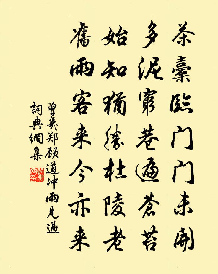 茶橐臨門門未開,多泥窮巷遍蒼苔。始知猶勝杜陵老,舊雨客來今亦來。