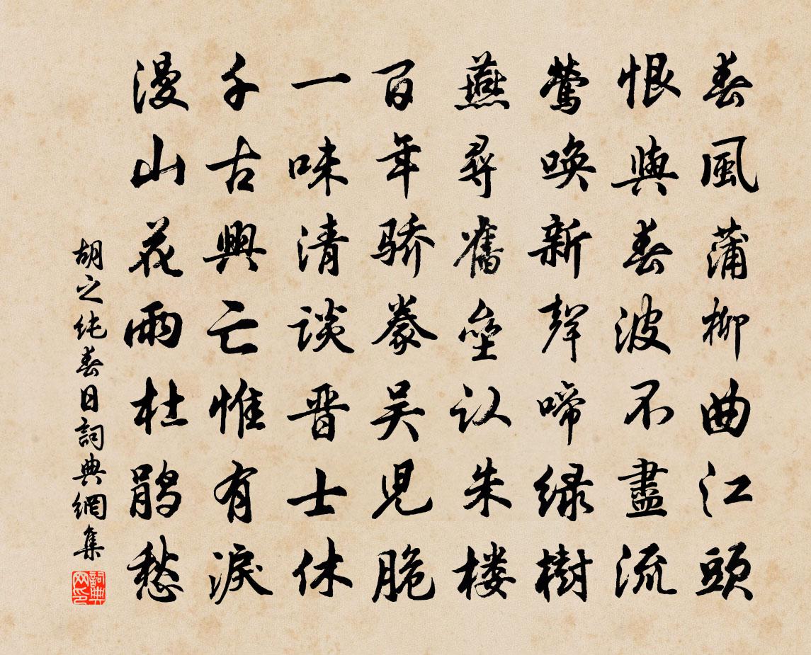 詩詞名句歷史字典書法欣賞書法字典國語詞典說文解字康熙字典古漢語字典標 題 作 者 詩 句 春日作者:胡之純 朝代:宋代春日原文春風蒲柳曲江頭,恨與春波不盡流。鶯喚新聲啼綠樹,燕尋舊壘認朱樓。百年驕豢吳兒脆,一味清談晉士休。千古興亡惟有淚,漫山花雨杜鵑愁。詩詞問答問:春日的作者是誰?答:胡之純問:春日寫於哪個朝代?答:宋代胡之純春日書法欣賞春日書法作品詩詞推薦偈三首釋宗頤〔宋代〕樓外紫金山色秀,門前甘露水聲寒。古槐陰下清風裡,試為諸人再指看。全州雙松堂黃庭堅〔宋代〕文殊堂下松,永日如鳴琴。我登雙松堂,時步雙松陰。中有寂莫人,安禪無古今。悲歌贈吳季子吳偉業〔清代〕人生千里與萬里,黯然銷魂別而已。君獨何為至於此,山非山兮水非水。生非生兮死非死。十三學經並學史,生在次韻曹輔寄壑源試焙新芽蘇軾〔宋代〕仙山靈雨濕行雲,洗遍香肌粉未勻。明月來投玉川子,清風吹破武林春。要知玉雪心腸好,不是膏油首面新。戲作滿庭芳(張敏叔、程致道和示,復用韻寄酬)葉夢得〔宋代〕楓落吳江,扁舟搖盪,暮山斜照催晴。此心長在,秋水共澄明。底事經年易判,驚遺恨、悄悄難平。臨風處,佳人登巴陵開元寺西閣贈衡岳僧方外李白〔唐代〕衡岳有闡士,五峰秀真骨。見君萬里心,海水照秋月。大臣南溟去,問道皆請謁。灑以甘露言,清涼潤肌發。明湖銅官僧捨得尚書郎趙宗閔墨竹一枝筆勢妙天下黃庭堅〔宋代〕獨來野寺無人識,故作寒崖雪壓枝。相得平生藏妙手,只今猶在鬢如絲。四月八日三絕劉克莊〔宋代〕徵在生夫子,摩耶育釋迦。人人衣逢掖,個個著袈裟。戀繡衾張樞〔宋代〕屏綃裛潤惹篆煙。小窗閒、人泥晝眠。正雪暖、荼架,奈愁春、塵鎖雁弦。楊花做了香雲夢,化池萍、猶泛翠鈿。句蕭庭直〔宋代〕山勢低連巫峽遠,水流初放蜀江平。雨余早起五首方回〔宋代〕燈暗窗明暖又寒,破鞋壞待蘚痕乾。惜花愛筍人誰解,冒雨行來百匝看。讀孝經方愚〔唐代〕星彩滿天朝北極,源流是處赴東溟。為臣為子不忠孝,辜負宣尼一卷經。夜爐宋庠〔宋代〕風窗夜永燭飄煤,坐擁空爐暖凍杯。束緼未求曹相火,冥心將冷子綦灰。禪床隱灶徒驚俗,曲突徙薪枉備災。餘燼送李騎曹之靈武寧侍郎士元〔唐代〕一歲一歸寧,涼天數騎行。河來當塞曲,山遠與沙平。縱獵旗風卷,聽笳帳月生。新鴻引寒色,回日滿京城。中秋獨坐有感高斯得〔宋代〕三年三中秋,月作一樣奇。清貧不設客,老倦不吟詩。今年更淒涼,兒孫鎖秋闈。獨坐南窗下,兀兀如孤羆。迫思真珠花劉克莊〔宋代〕匝地無人管,逢春作意開。得非回合浦,又似下瑤台。點點垂鮫淚,累累奪蚌胎。主君休愛惜,曾累伏波來。清明登奉先城樓羅袞〔唐代〕年來年去只艱危,春半堯山草尚衰。四海清平耆舊見,五陵寒食小臣悲。煙銷井邑隈樓檻,雪滿川原泥酒卮。拭盡送晊師張籍〔唐代〕九星台下煎茶別,五老峰頭覓寺居。作得新詩旋相寄,人來請莫達空書。雪西施釋智圓〔宋代〕范蠡無西施,胡以破吳國。吳王輕社稷,為惑傾城色。夫差強變弱,勾踐雌成雄。豈惟陶朱策,實賴西施容。西施偈頌四十二首釋祖先〔宋代〕諸人知處良遂知,良遂知處人不知。王維已死無人畫,留得青山對落暉。名句推薦相送巴陵口,含淚上舟行。陳子龍《三洲歌》 機關算盡太聰明,反算了卿卿性命。曹雪芹《紅樓夢·第五回》 陽春布德澤,萬物生光輝。佚名《長歌行》 風緊雁行高,無邊落木蕭蕭。納蘭性德《河瀆神·風緊雁行高》 別日南鴻才北去,今朝北雁又南飛。魚玄機《閨怨》 相思無因見,悵望涼風前。李白《折荷有贈》 春城無處不飛花,寒食東風御柳斜。韓翃《寒食 / 寒食日即事》 東風不與周郎便,銅雀春深鎖二喬。杜牧《赤壁》 把酒送春春不語。黃昏卻下瀟瀟雨。朱淑真《蝶戀花·送春》 岸旁青草長不歇,空中白雪遙旋滅。岑參《熱海行送崔侍御還京》