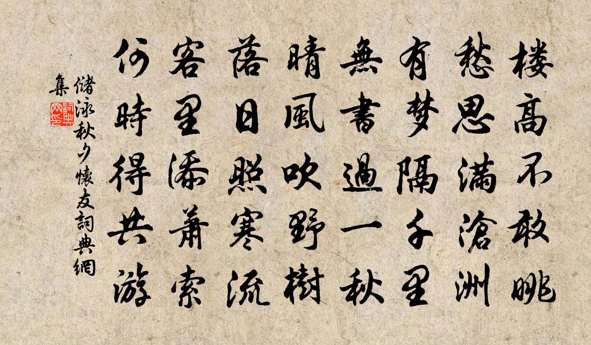 詩詞名句歷史字典書法欣賞書法字典國語詞典說文解字康熙字典古漢語字典標 題 作 者 詩 句 秋夕懷友作者:儲泳 朝代:宋代秋夕懷友原文樓高不敢眺,愁思滿滄洲。有夢隔千里,無書過一秋。晴風吹野樹,落日照寒流。客里添蕭索,何時得共游。詩詞問答問:秋夕懷友的作者是誰?答:儲泳問:秋夕懷友寫於哪個朝代?答:宋代儲泳秋夕懷友書法欣賞秋夕懷友書法作品詩詞推薦一半兒查德卿〔元代〕海棠紅暈潤初妍,楊柳纖腰舞自偏。笑倚玉奴嬌欲眠。粉郎前,一半兒支吾一半兒軟。清平樂劉敞〔宋代〕小山業桂。最有留人意。拂葉攀花無限思。雨濕濃香滿袂。別來過了秋光。翠簾昨夜新霜。多少月宮閒地,姮娥與巫山一何高七絕李流謙〔宋代〕巫山一何高,積翠擁陽台。俗賂楚臥誅綺語,莫問襄王來不來。留城寄曠翁艾性夫〔宋代〕六年不見雲巢老,端擬此來消渴心。花落鳥啼春事闊,不知何處倚闌吟。虞美人·秋感吳文英〔宋代〕背庭緣恐花羞墜。心事遙山里。小簾愁卷月籠明。一寸秋懷、禁得幾蛩聲。井梧不放西風起。供與離人睡。夢和新和胡端約岩桂六首蔡戡〔宋代〕羞澀東籬九日黃,拒霜粗俗不宜霜。此花底事小如許,無那惱人風味長。勸農 其一陶淵明〔魏晉〕悠悠上古,厥初生民。傲然自足,抱朴含真。智巧既萌,資待靡因。誰其贍之,實賴哲人。木蘭祠乾隆〔清代〕克敵垂成不受勛,凜然巾幗是將軍。一般過客留吟句,絕勝錢塘蘇小墳。臥病項安世〔宋代〕廉纖小雨濕相欺,病客無悰晝掩扉。自轉巫屏遮午枕,一窗寒夢繞親闈。正月晦日與弟觀對酌陳著〔宋代〕聚散等風沙,相知要當家。弟兄窗下酒,世俗眼前花。隱去方為福,貧驅未有涯。明朝吉凶事,分付與昏鴉。墨君十詠憶昔王銍〔宋代〕匡廬古寺暗松藤,曾宿寒岩最上層。火暖爐溫四山靜,前溪風雪後窗燈。寄禮部劉郎中令狐楚〔唐代〕一別三年在上京,仙垣終日選群英。除書每下皆先看,唯有劉郎無姓名。霽後寄白閣僧馬戴〔唐代〕蒼翠霾高雪,西峰鳥外看。久披山衲壞,孤坐石床寒。盥手水泉滴,燃燈夜燒殘。終期老雲嶠,煮藥伴中餐。覽鏡(一作李嗣宗詩)李崇嗣〔唐代〕歲去紅顏盡,愁來白髮新。今朝開鏡匣,疑是別逢人。題曾良臣思堂楊萬里〔宋代〕謝墅新成了,潘輿竟不歸。升堂仰遺像,下拜泣沾衣。友哺烏何在,臥冰魚自肥。夢中環佩響,驚喜覺來非。錢唐見芮逢羅隱〔唐代〕蔡倫池北雁峰前,罹亂相兼十九年。所喜故人猶會面,不堪良牧已重泉。醉思把箸欹歌席,狂憶判身入酒船。今日雨後宿劉司馬池上賈島〔唐代〕藍溪秋漱玉,此地漲清澄。蘆葦聲兼雨,芰荷香繞燈。岸頭秦古道,亭面漢荒陵。靜想泉根本,幽崖落幾層。減字木蘭花沈瀛〔宋代〕雞鳴弗止。弗到天明心弗喜。投轄成風。壑谷吾公宜弗通。齊盟歃酒。揚觶先聽方飲壽。盟載言何。卜晝三杯不用杏花天(借朱希真韻送司馬德遠)石孝友〔宋代〕把杯莫唱陽關曲。行客去、居人恨局。屏山似展江如簇。不見尊前醉玉。鵑啼處、怨聲裂竹。問後夜、蘭舟那宿。邯鄲歌蕭衍〔南北朝〕回顧灞陵上。北指邯鄲道。短衣妾不傷。南山為君老。名句推薦輕肌弱骨散幽葩,更將金蕊泛流霞。蘇軾《趙昌寒菊》 君看石芒碭,掩淚悲千古李白《丁督護歌》 秋風吹到江村,正黃昏,寂寞梧桐夜雨不開門。顧彩《相見歡·秋風吹到江村》 天無二日,人無二理。吳承恩《西遊記·第七十八回》 溪谷少人民,雪落何霏霏!曹操《苦寒行》 詩家清景在新春,綠柳才黃半未勻。楊巨源《城東早春》 使殺生之機,奪予之要在大臣,如是者侵。韓非及後人《韓非子·三守》 雨恨雲愁,江南依舊稱佳麗。王禹偁《點絳唇·感興》 倉廩實,則知禮節;衣食足,則知榮辱管仲《管子·牧民》 香霧雲鬟濕,清輝玉臂寒。杜甫《月夜》