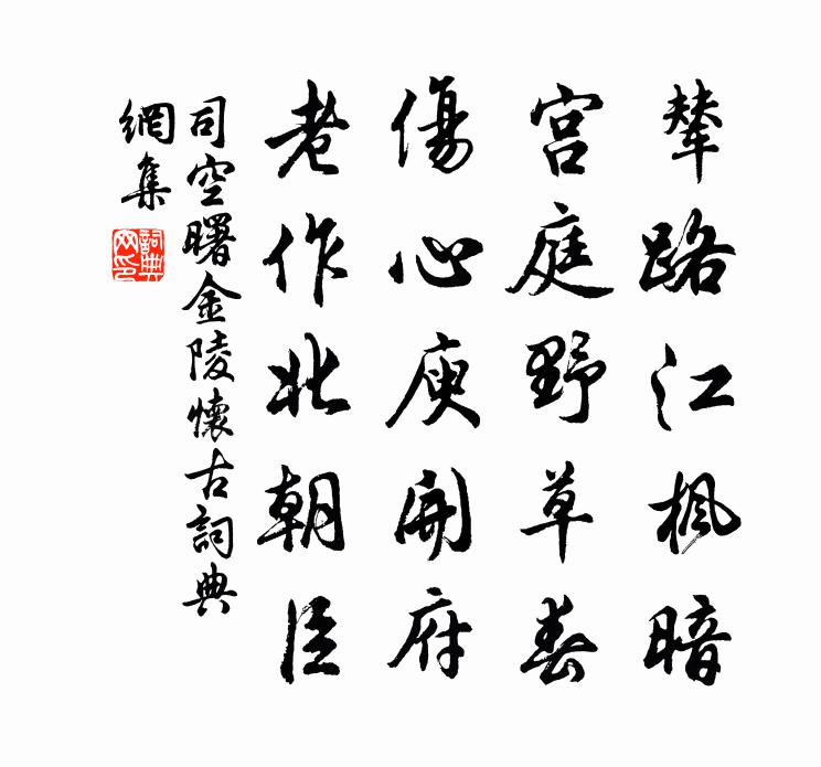 前兩句寫實。作者就眼前所見,選擇兩件典型的景物加以描繪,著墨不多,而能把古都金陵衰敗荒涼的景象,表現得很具體,很鮮明。輦路即皇帝乘車經過的道路。想當年,皇帝出遊,旌旗如林,鼓樂喧天,前呼後擁,應是無比威風。此時這景象已不復存在,只有道旁那飽覽人世滄桑的江楓,長得又高又大,遮天蔽日,投下濃密的陰影,使荒蕪的輦路更顯得幽暗陰森。“江楓暗”的“暗”字,既是寫實,又透露出此刻作者心情的沉重。沿著這條路走去,就可看到殘存的一些六朝宮苑建築了。“台城六代競豪華”,昔日的宮庭,珠光寶氣,金碧輝煌,一派顯赫繁華,更不用說到了飛紅點翠、鶯歌燕舞的春天。現在這裡卻一片淒清冷落,只有那野草到處滋生,長得蓬蓬勃勃,好像整個宮庭都成了它們的世界。“野草春”,這“春”字既點時令,又著意表示,點綴春光的唯有這萋萋野草而已。這兩句對偶整齊,輦路、宮庭與江楓、野草形成強烈對照,啟發讀者將它的現狀與歷史作比較,其盛衰興亡之感自然寄寓於其中。