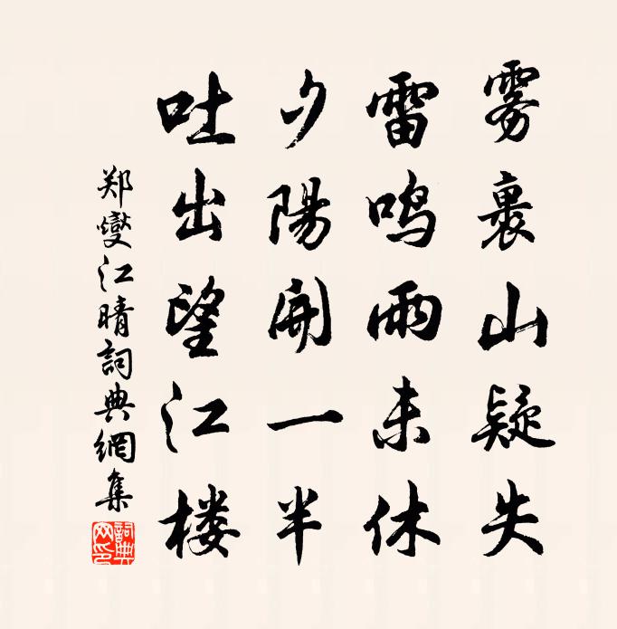 詩詞名句歷史字典書法欣賞書法字典國語詞典說文解字康熙字典古漢語字典標 題 作 者 詩 句 江晴作者:鄭燮 朝代:清代江晴原文霧裹山疑失,雷鳴雨未休。夕陽開一半,吐出望江樓。詩詞問答問:江晴的作者是誰?答:鄭燮問:江晴寫於哪個朝代?答:清代問:鄭燮的名句有哪些?答:鄭燮名句大全鄭燮江晴書法欣賞江晴書法作品詩詞推薦寄題西昌嚴後山三教堂張埴〔宋代〕高風花吹斷溪橋笑,幾個廬山昏又曉。新開圖畫白鷗江,螭吻搖鬐到雲表。長廊晝永花煙青,參禪問道談詩聲。蒼東湖歌趙汝鐩〔宋代〕湖光盪綠春拍塞,百雉之樂才咫尺。五步一亭十步榭,軒窗處處臨水避。露濃晝淑花溜紅,煙嫩堤平草連碧。俯窺淳化鄉飲酒三十三章佚名〔宋代〕崇丘峨峨,動植斯屢。高既自遂,大亦自足。和風斯扇,膏雨斯沐。我仁如天,以亭以育。涿州王珪〔唐代〕涿州亭下柳依依,誰折長條送客歸。曉月未消燕戍酒,春雲初拂漢台衣。玉堂社燕宜先入,沙磧晴鴻已半飛。回首質子劉克莊〔宋代〕七雄側目虎狼都,仁暴端由取捨殊。燕太子留生馬角,楚王心作牧羊奴。答頤齋詩筒走寄胡仲弓〔宋代〕綠陰團里和吟聲,幽事相關雨未晴。莫把越秦分異見,要知李杜是同盟。提壺沽酒牆頭報,布穀催耕屋背鳴。滿目和吳仲庶待制見寄蘇頌〔宋代〕幾日風沙結襟袖,忽傳嘉惠眼重開。交情不改乘車約,和氣先隨掞藻來。元帥本由詩禮選,行人愧匪語言才。相逢自歸耕篆畦見村婦有摘茶車水賣魚汲水行饁寄舒岳祥〔宋代〕前壠摘茶婦,頃筐帶露收。艱辛知有課,歌笑似無愁。照水眉誰畫,簪花面不羞。人生重容貌,那得不梳頭。次韻順之奏雅四首鄧肅〔宋代〕夢蝶莊周心槁木,入柳穿花本無欲。杯酒行春當此時,忽遇清明一百六。登城樓張耒〔宋代〕沙雨初乾巾褐輕,獨披衰蔓步高城。天晴海上峰巒出,野暗人家燈火明。歸鳥各尋芳樹去,夕陽微照遠村耕。登樓翻經台白居易〔唐代〕一會靈山猶未散,重翻貝葉有來由。是名精進才開眼,岩石無端亦點頭。頌古釋慧空〔宋代〕野鴨羽翼能幾長,馬師眼孔些子大。從他飛去擬何之,須待拽回遭笑怪。監試衛通判送桂花一枝得四絕句以謝王邁〔宋代〕花映眉間一點黃,笑將文字共平章。高枝定不輕分付,自有花為知見香。奉賦德修西充大夫成都新園詠歸堂二首葉適〔宋代〕我生海旁州,古言江來鋪。力浮萬頃盡,坐識一溜初。之子酌彼源,紺潔玉斗奭。雅韻舒煩憂,逸駕陵趦趄。詠歸滿庭芳 永樂大典一萬四千三百八十一寄字韻吳激〔金代〕千里傷春,江南三月,故人何處汀州。滿簪華發,花鳥莫深愁。烽火年年未了,清宵夢,定繞林丘。君知否,人間勝勝慢/聲聲慢佚名〔宋代〕寒應消盡,麗日添長,百花未敢先拆。冷艷幽香,分過溪南春色。調酥旋成素蕊,向碧瓊、枝頭勻滴。愁腸斷,怕虞美人(送晁適道)吳則禮〔宋代〕夜寒閒倚西樓月。消盡江南雪。東風明日木蘭船。想見陽關聲徹、雁連天。斜斜洲渚溶溶水。端負青春醉。平安小調笑令秦觀〔宋代〕戀戀,樓中燕。燕子樓空春色晚,將軍一去音容遠。空鎖樓中深怨,春風重到人不見。十二闌乾倚遍。句關耆孫〔宋代〕況此憔悴州,居人仰煮鹵。煮鹵數十年,余者皆貧寠。李杜劉克莊〔宋代〕李杜文章宗,繼者宜重黎。伯禽視熊驥,未易分高低。小者善鉤魚,大者能柵雞。世無託孤者,練葛誰提攜。謫仙名句推薦誓將掛冠去,覺道資無窮。岑參《與高適薛據同登慈恩寺浮圖》 宴爾新婚,以我御窮。佚名《谷風》 棠梨葉落胭脂色,蕎麥花開白雪香。王禹偁《村行·馬穿山徑菊初黃》 尚憶先朝多樂事,孝皇曾為兩宮開。王守仁《元夕二首》 危橋屬幽徑,繚繞穿疏林。柳宗元《巽公院五詠·苦竹橋》 國亡身殞今何有,只留離騷在世間。張耒《和端午》 願我如星君如月,夜夜流光相皎潔。范成大《車遙遙篇》 愁腸已斷無由醉,酒未到,先成淚。范仲淹《御街行·秋日懷舊》 全則必缺,極則必反,盈則必虧。呂不韋《呂氏春秋·論·不苟論》 邊雪藏行徑,林風透臥衣。賈島《送鄒明府游靈武》