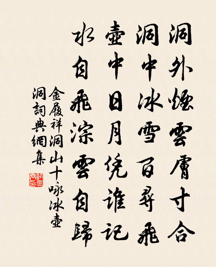 詩詞名句歷史字典書法欣賞書法字典國語詞典說文解字康熙字典古漢語字典標 題 作 者 詩 句 洞山十詠冰壺洞作者:金履祥 朝代:宋代洞山十詠冰壺洞原文洞外煙雲膚寸合,洞中冰雪百尋飛。壺中日月憑誰記,水自飛淙雲自歸。詩詞問答問:洞山十詠冰壺洞的作者是誰?答:金履祥問:洞山十詠冰壺洞寫於哪個朝代?答:宋代金履祥洞山十詠冰壺洞書法欣賞洞山十詠冰壺洞書法作品詩詞推薦池州夫子廟麟台韋表微〔唐代〕二儀既閉,三象乃乖。聖道埋郁,人心不開。上無文武,下有定哀。吁嗟麟兮,孰為來哉。周雖不綱,孔實嗣聖。賀秘書歐陽巽齋先生遷居文天祥〔宋代〕先生挾冊當菑畲,不待辛勤有屋廬。宅樣只還齊里舊,鄉風好似潁川居。鏡湖今日賀外監,瀛館前年虞秘書。天下菩薩蠻晁端禮〔宋代〕薄衾小枕重門閉。孤燈照著人無寐。風雨夜來多。春寒可奈何。深閨香暖處。還解憐人否。只道不來歸。那知心似恭和御製賜進士詩韻二首袁說友〔宋代〕堯言不數漢文章,漫說唐人萬丈光。百辟共知尊上指,群儒何止戴言揚。絲綸甫幸來中禁,琬琰俄欣奏上方。京邑句宋白〔宋代〕凌晨走退暇蟆鼻,幾日飛經灩澦堆。送客湖橋仇遠〔宋代〕別酒離歌送馬蹄,歸鞍斜日故遲遲。小兒拍手山翁醉,江左風流一晉時。寄鄭秘校趙蕃〔宋代〕吾邦豪傑未多聞,義薄雲天獨數君。遇兼登倉真甚惠,當郊置驛信徒勤。目前米價未為貴,我自囊空先有雲。食粥自桃川至辰州絕句四十有二趙蕃〔宋代〕牂牁何處莫窮源,萬折千磯劇迅奔。寸寸上來良亦苦,不知斷支出秘番魂。題石井張嵲〔宋代〕精藍負東岑,奇石護山麓。嵁岩如車輪,一鏡方黛蓄。沉沉不動容,澹{左氵右頹}立山木。日射翠氣浮,游鱗翻偈頌一百零二首釋紹曇〔宋代〕太白峰前施小伎,淵嘿雷霆人自畏。瓦礫翻成釋梵宮,古佛門風重振起。不墮功勳,等閒遊戲。金毛獅子忽翻身,昔仕劉克莊〔宋代〕昔仕年傷早,今歸計恨遲。賴存南嶽草,可答北山移。曉過葉家橋二首楊萬里〔宋代〕圩峻愁今路,山行羨昨朝。閉窗深坐轎,合眼過危橋。岸近何由到,魂驚半欲銷。寄言薛丞相,最穩是輕舠。贈劉靜翁頌四首黃庭堅〔宋代〕萬緣空處真如佛,八面風中不動尊。困便橫眠飢吃飯,十方無壁又無門。吳沖卿鼓契梅堯臣〔宋代〕暮契出,朝契歸,出入未嘗逢日暉。雄雌曾不離鍾室,百年刓弊知者稀。時移世異不改易,俗眼厭舊君前非。君王游九鎖朱傑〔宋代〕九天虎豹不守關,瑤京夜半墮塵寰。化為青山故曲折,中有玉殿開仙班。白龍天來三百丈,飛沫直下琉璃灣。神仙臨江仙(酴醿)韓元吉〔宋代〕不恨綠陰桃李過,酴醿正向人開。一尊清夜月徘徊。花如人意好,月為此花來。未信人間香有許,卻疑同住瑤台。宿秦生山齋溫庭筠〔唐代〕衡巫路不同,結室在東峰。歲晚得支遁,夜寒逢戴顒。龕燈落葉寺,山雪隔林鐘。行解無由發,曹溪欲施舂。重玄寺旎檀林桂花陳深〔宋代〕有桂生只園,團團擁旌蓋。靈要挺盤錯,翠色深晻藹。疑從驚峰移,迦與峨石對。商飈動閶闔,夜氣凝沆瀣。清蒼閒遊李商隱〔唐代〕危亭題竹粉,曲沼嗅荷花。數日同攜酒,平明不在家。尋幽殊未極,得句總堪夸。強下西樓去,西樓倚暮霞。句釋曉瑩〔宋代〕舟橫漁唱晚。名句推薦月到東南秋正半。雙闕中間,浩蕩流銀漢。王國維《蝶戀花·月到東南秋正半》 女子今有行,大江溯輕舟。韋應物《送楊氏女》 幾度東風吹世換,千年往事隨潮去。戴復古《滿江紅·赤壁懷古》 櫚庭多落葉,慨然知已秋。陶淵明《酬劉柴桑》 谷鳥吟晴日,江猿嘯晚風。李白《江夏別宋之悌》 今宵樓上一尊同。雲濕紗窗。辛棄疾《一剪梅·中秋元月》 雨落不上天,水覆難再收。李白《妾薄命》 吾生如寄,尚想三徑菊花叢。楊炎正《水調歌頭·把酒對斜日》 三年遇寒食,盡在洛陽城。白居易《洛橋寒食日作十韻》 寒禽與衰草,處處伴愁顏。司空曙《賊平後送人北歸》
