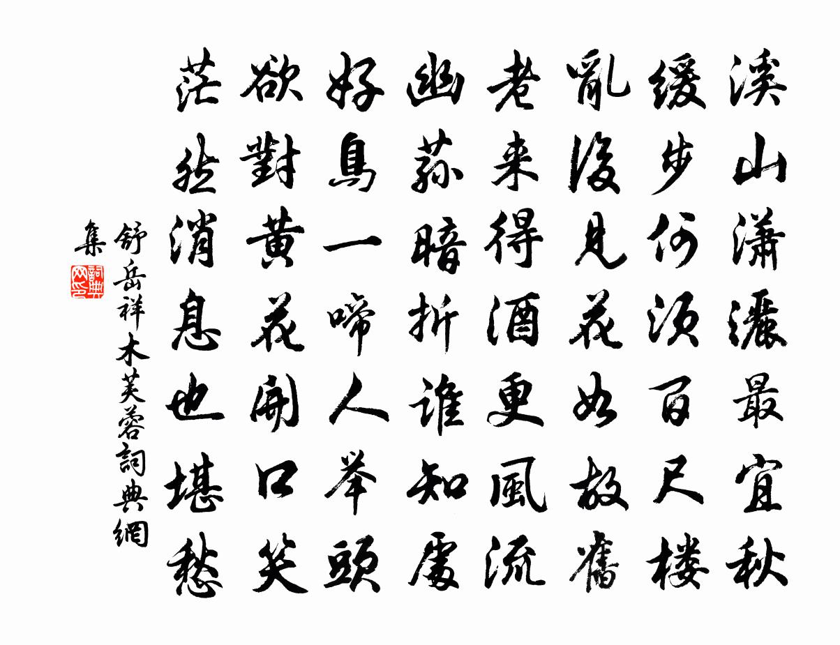 詩詞名句歷史字典書法欣賞書法字典國語詞典說文解字康熙字典古漢語字典標 題 作 者 詩 句 木芙蓉作者:舒岳祥 朝代:宋代木芙蓉原文溪山瀟灑最宜秋,緩步何須百尺樓。亂後見花如故舊,老來得酒更風流。幽蓀暗折誰知處,好鳥一啼人舉頭。欲對黃花開口笑,茫然訊息也堪愁。詩詞問答問:木芙蓉的作者是誰?答:舒岳祥問:木芙蓉寫於哪個朝代?答:宋代舒岳祥木芙蓉書法欣賞木芙蓉書法作品詩詞推薦雜興陸游〔宋代〕三吳氣候異,開歲固多雨。今年已暮春,霽日僅可數。寒氣薄腠理,沉痛結心膂。遣奴買藥物,日夜事炮煮。端居挽翟親杜范〔宋代〕時運遭逢亦偶然,著鞭莫訝祖生先。閉門終負三冬用,脂篋徒夸十部賢。玉樹幸能光舊德,爵羅寧復嘆當年。生平紫岩九章章八句上壽張丞相張元乾〔宋代〕紫岩赫赫,眾山維則。秉國之鈞,百僚是式。志殄仇方,力復明辟。時方中興,勛冠今昔。歲暮北亭懷子京宛丘二首宋庠〔宋代〕搖落江都城,風塵宛丘道。天涯遙相望,離思何草草。回澤騰麏{上鹿下加},滄洲叫鳧鴇。星歲日雲徂,在原歡偈頌一百六十首釋宗杲〔宋代〕冤有頭,債有主。偶因失腳倒地,至今怨入骨髓。次韻方去言用予喜歸韻見寄三首方回〔宋代〕筆法君追寶晉齋,禪機我愧老蒲鞋。嘗僚台閫相知舊,得友江山到處佳。鐵馬塵高頻極目,錦鱗音斷豈忘懷。亦思新月釋顯彬〔宋代〕微光已成魄,隱隱夕陽間。六幙無人卷,一鉤長自閒。輪隨明月長,香逐桂枝還。三五相將近,分明照竹關。許月度新自金陵歸,以《青溪集》示我,感賦陳維崧〔清代〕青溪路。記當日、年少嬉遊處。覆舟山畔人家,麾扇渡頭士女。水花風片,有十萬珠簾夾煙浦。泊畫船、柳下樓前大帝權徐鈞〔宋代〕鼎峙東吳命世雄,甘心俯受魏丕封。炎劉已盡猶餘蜀,唇齒胡為反內攻。和杜學士旅次淮口阻風李嶠〔唐代〕夕吹生寒浦,清淮上暝潮。迎風欲舉棹,觸浪反停橈。淼漫煙波闊,參差林岸遙。日沉丹氣斂,天敞白雲銷。水雁宮詞王仲修〔宋代〕誰向緱仙學玉笙,紫筠管密制新成。綺窗人靜月明夜,能作簫台九鳳聲。玉液泉 以上嗚鶴餘音卷之四佚名〔宋代〕這訊息,幾人知,獨我全真好。大悟來,心地清涼,便分曉。本來面目常照。最玄妙。金關開,玉戶閉,來往通關送宇文南金放後歸太原寓居,因呈太原郝主簿岑參〔唐代〕歸去不得意,北京關路賒。卻投晉山老,愁見汾陽花。翻作灞陵客,憐君丞相家。夜眠旅舍雨,曉辭春城鴉。送君永州花月樓白玉蟾〔宋代〕春風夜飛招月檄,檄月司花月供職。月落千嬌百媚叢,諸花為月妍為容。樓東月照樓西皎,樓西月向樓東笑。月與南樓令(壽邵素心席間賦)張炎〔宋代〕一片赤城霞。無心戀海涯。遠飛來、喬木人家。且向琴書深處隱,終勝似、聽琵琶。休近七香車。年華已破瓜。怕再至汝陰三絕歐陽修〔宋代〕黃栗留鳴桑葚美,紫櫻桃熟麥風涼。朱輪昔愧無遺愛,白首重來似故鄉。寄清溪道友齊己〔唐代〕山門搖落空,霜霰滿杉松。明月行禪處,青苔繞石重。泉聲喧萬壑,鍾韻遍千峰。終去焚香老,同師大士蹤。雨中至華下宿王山史家顧炎武〔清代〕重尋荒徑一衝泥,谷口牆東路不迷。萬里河山人落落,三秦兵甲雨淒淒。松陰舊翠長浮院,菊芯初黃欲照畦。自笑贈程秘書盧象〔唐代〕客自岐陽來,吐音若鳴鳳。孤飛畏不偶,獨立誰見用。忽從被褐中,召入承明宮。聖人借顏色,言事無不通。殷勤和天衣聰老五首王之道〔宋代〕達磨東來不記年,一燈然處百燈然。顧從清淨求明了,應喜晨齋學省緣。名句推薦殘雪樓台,遲日園林。韓疁《高陽台·除夜》 風鳴兩岸葉,月照一孤舟。孟浩然《宿桐廬江寄廣陵舊遊》 二分塵土,一分流水蘇軾《水龍吟·次韻章質夫楊花詞》 己所不欲,勿施於人。孔子弟子《論語·顏淵篇》 春風江上路,不覺到君家高啟《尋胡隱君》 江漢曾為客,相逢每醉還。韋應物《淮上喜會梁川故人 / 淮上喜會梁州故人》 故國山川,故園心眼,還似王粲登樓。周密《一萼紅·登蓬萊閣有感》 怒濤卷霜雪,天塹無涯。柳永《望海潮·東南形勝》 一沐三捉髮,一飯三吐哺。司馬遷《史記·魯周公世家》 秋聲帶葉蕭蕭落,莫響城頭角!董士錫《虞美人·韶華爭肯偎人住》