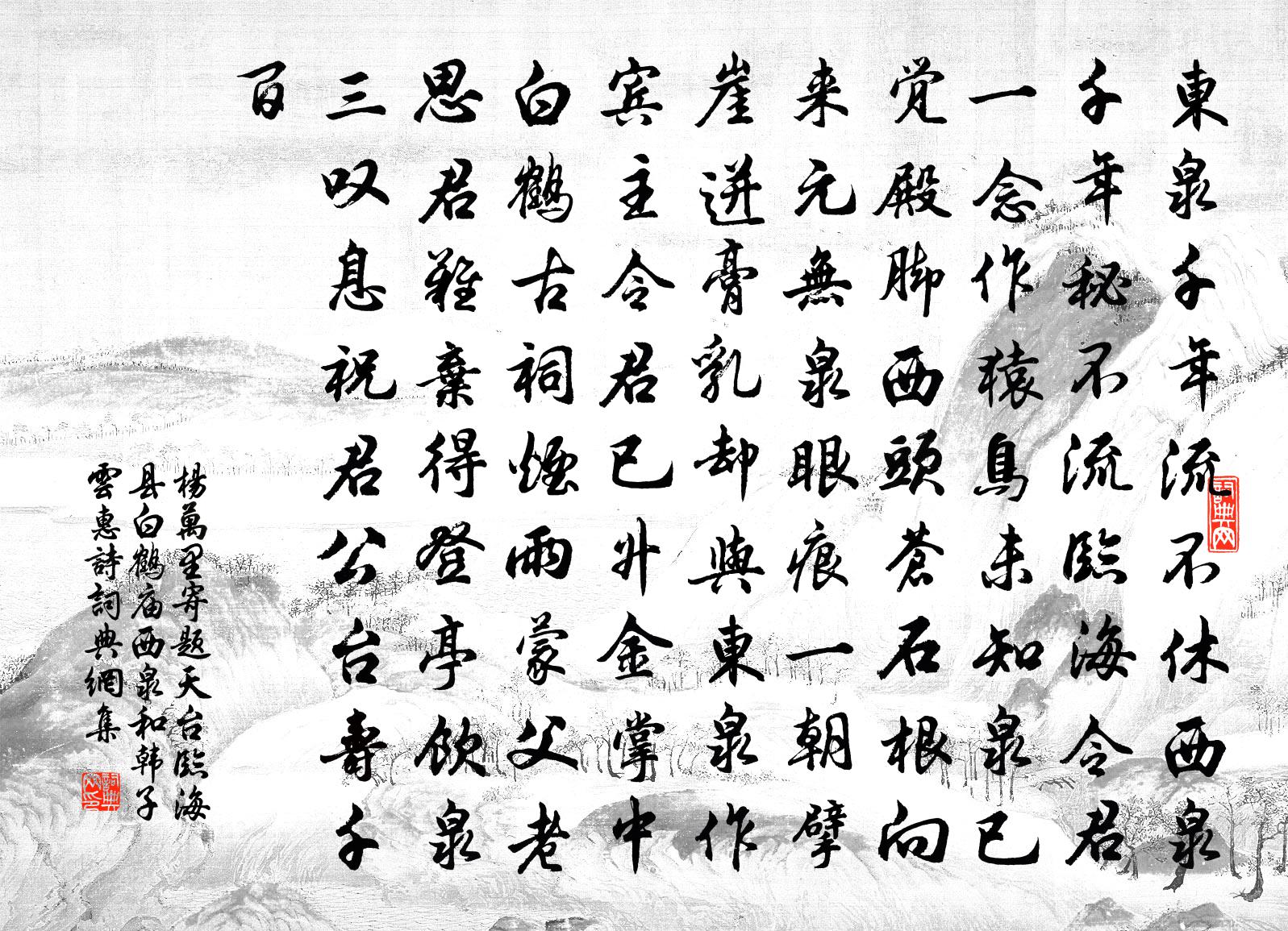 東泉千年流不休,西泉千年秘不流。臨海令君一念作,猿鳥未知泉已覺。