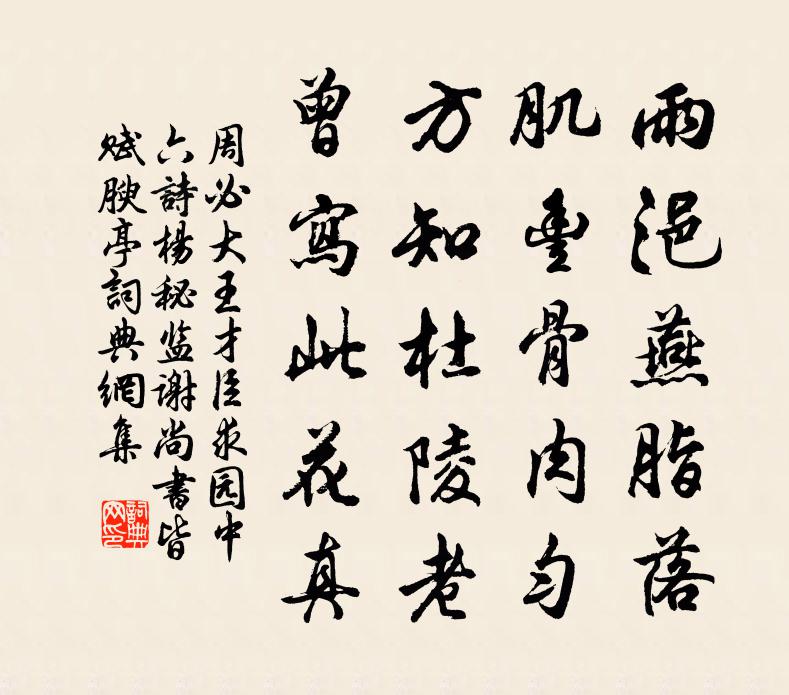 詩詞名句歷史字典書法欣賞書法字典國語詞典說文解字康熙字典古漢語字典標 題 作 者 詩 句 王才臣求園中六詩楊秘監謝尚書皆賦腴亭作者:周必大 朝代:宋代原文雨浥燕脂落,肌豐骨肉勻。方知杜陵老,曾寫此花真。詩詞問答問:《王才臣求園中六詩楊秘監謝尚書皆賦腴亭》的作者是誰?答:周必大問:該詩寫於哪個朝代?答:宋代書法欣賞王才臣求園中六詩楊秘監謝尚書皆賦腴亭書法作品詩詞推薦雁去仇遠〔宋代〕離群野雁在中庭,馴養經年羽翼成。因為哀鳴殊可念,豈知飛去太無情。天陰月黑多機穽,歲晚山空少弟兄。願爾送人之岳山釋了惠〔宋代〕莫珍龍袖貴金襴,試撥湖湘草裹看。撥看路邊牛糞火。烏藤變作紫栴檀。複次韻二首李呂〔宋代〕元是第一花,何用爭頭角。桃李待春風,妖嬈恣輕薄。幽人似歸鴻,浩氣胸磊落。感此歲寒枝,悠然成獨酌。書事戴復古〔宋代〕喜作羊城客,忘為鶴髮翁。問天求酒量,翻海洗詩窮。已過西南道,適遭東北風。扁舟載明月,枉作賣油公。宿南海神祠東廊候月烹茶次聞雷曾豐〔宋代〕祠宇眈眈海岸頭,況逢冷夜更清秋。風前塵外笛三弄,飯後月中茶一甌。借我孤舟隨水住,乘時一棹與天浮。舊談使東川梁州夢元稹〔唐代〕夢君同繞曲江頭,也向慈恩院院游。亭吏呼人排去馬,所驚身在古梁州。尚書都堂瓦松李曄〔唐代〕華省秘仙蹤,高堂露瓦松。葉因春後長,花為雨來濃。影混鴛鴦色,光含翡翠容。天然斯所寄,地勢太無從。接棟春題繆鑒〔宋代〕江雲漠漠水悠悠,望斷春風燕子樓。書寄碧雲千里雁,鏡分明月半奩秋。來時楊柳陰連陽,歸路菽花雪滿州。遙想題孔道士雲庵趙庚夫〔宋代〕道人居玉笥,手辟小蓬萊。門寂山相對,庵空雲自來。茶煙朝宛轉,丹氣夜昭回。欲助梨花夢,攜鋤獨種梅。山亭陸游〔宋代〕風惡闌回雨,天寒勒住花。尋幽扶楖栗,息倦倚槎牙。分韻僧吟苦,爭棋客笑嘩。相逢仍草草,歸路並山斜。齊天樂 白髮史達祖〔宋代〕秋風早入潘郎鬢,斑斑遽驚如許。暖雪侵梳,晴絲拂領,栽滿愁城深處。瑤簪謾妒。便羞插宮花,自憐衰暮。尚想及第後送家兄游蜀李遠〔唐代〕人誰無遠別,此別意多違。正鵠雖言中,冥鴻不共飛。玉京煙雨斷,巴國夢魂歸。若過嚴家瀨,殷勤看釣磯。天台桐柏觀李高士惠詩兼寄其游山紀詠一編且陳起〔宋代〕景物寫成編,清新人競傳。風輕花自若,雨驟鳥恓然。老我塵中累,多君物外仙。未能拋世慮,山館借床眠。送人赴沅州任翁卷〔宋代〕舊貢包茅地,中存古意長。去程逢岳雪,上事帶春陽,霧結硃砂氣,波流白芷香。大夫祠寂寞,煩與奠椒漿。盛山十二詩宿雲亭韋處厚〔唐代〕雨合飛危砌,天開卷曉窗。齊平聯郭柳,帶繞抱城江。永遇樂(甲午走筆和岳大用梅詞韻)趙師俠〔宋代〕秋滿衡皋,淡雲籠月,晚來風勁。一抹殘霞,數聲過雁,遠是黃昏近。憑高臨遠,倚樓凝睇,多少斷愁幽興。聽漁留題李侍御書齋許渾〔唐代〕昔話平生志,高齋曾見留。道孤心易感,恩重力難酬。獨立千峰曉,頻來一葉秋。雞鳴應有處,不覺淚空流。冬日野望駱賓王〔唐代〕故人無與晤,安步陟山椒。野靜連雲卷,川明斷霧銷。靈岩聞曉籟,洞浦漲秋潮。三江歸望斷,千里故鄉遙。勞歌武夷鼓樓岩葉夢鼎〔宋代〕鼓樓岩下鼓樓開,舉世邯鄲夢未回。安得老獸教喚起,萬人醒眼上山來。次韻鄧正字慎思秋日同文館九首晁補之〔宋代〕蔡侯南國秀,經緯耿昭回。文史蛙生甑,風雲蟄起隈。吾君求助意,之子為時來。萬縷防秋費,何如一士才。名句推薦擾擾馬足車塵,被歲月無情,暗消年少。元好問《玉漏遲·詠杯》 雨暗殘燈棋散後,酒醒孤枕雁來初。杜牧《齊安郡晚秋》 夢入藍橋,幾點疏星映朱戶。吳文英《荔枝香近·七夕》 獨立小橋風滿袖,平林新月人歸後。馮延巳《鵲踏枝·誰道閒情拋擲久》 大膽天下去得,小心寸步難行。馮夢龍《警世通言·卷二十一》 從來幽怨應無數?鐵馬金戈,青冢黃昏路。納蘭性德《蝶戀花·出塞》 江春不肯留歸客,草色青青送馬蹄。劉長卿《送李判官之潤州行營》 有孫母未去,出入無完裙。杜甫《石壕吏》 孤帆遠影碧空盡,唯見長江天際流。李白《黃鶴樓送孟浩然之廣陵》 聽人以言,樂於鐘鼓琴瑟。荀子《荀子·非相》