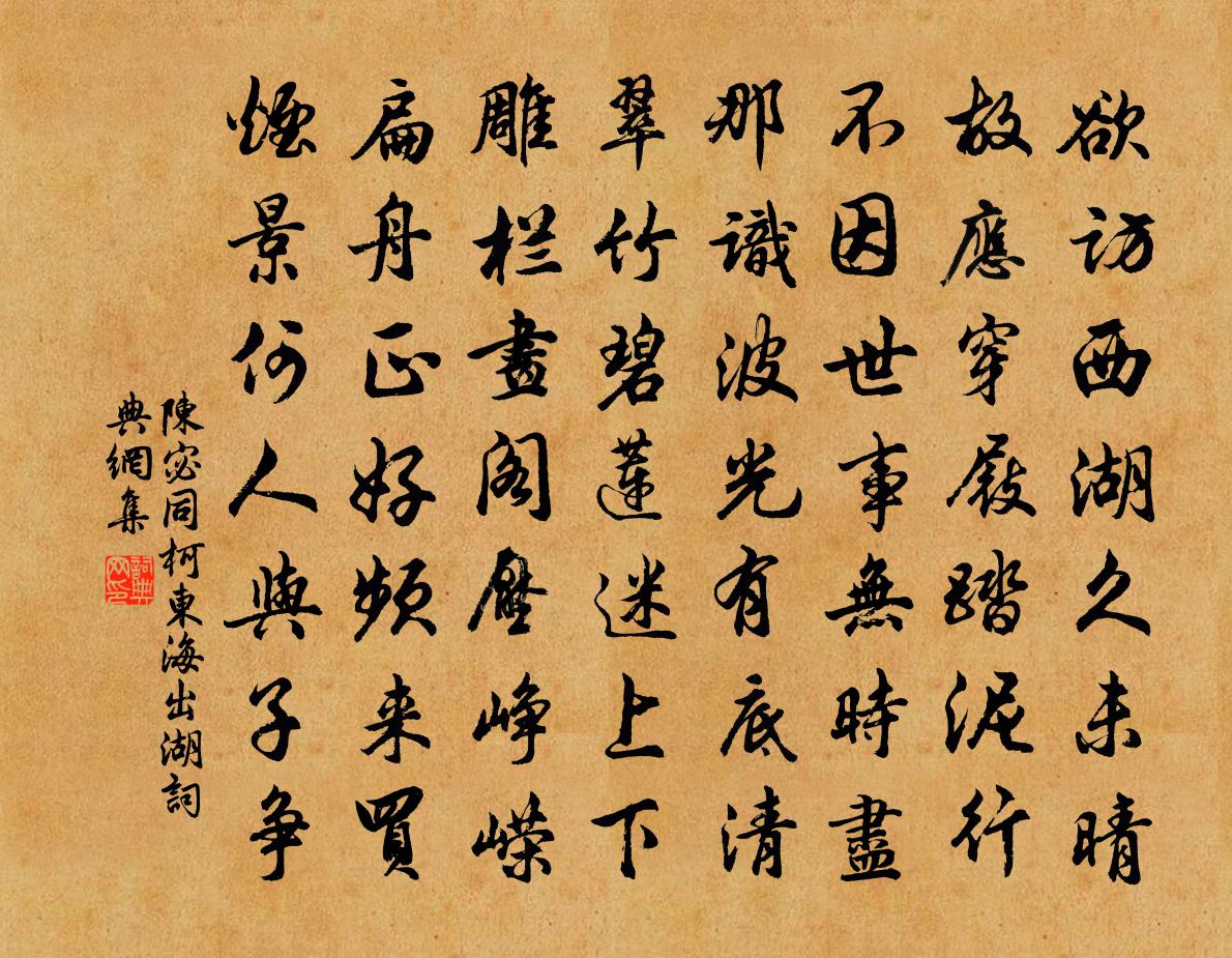 詩詞名句歷史字典書法欣賞書法字典國語詞典說文解字康熙字典古漢語字典標 題 作 者 詩 句 同柯東海出湖作者:陳宓 朝代:宋代同柯東海出湖原文欲訪西湖久未晴,故應穿屐踏泥行。不因世事無時盡,那識波光有底清。翠竹碧蓮迷上下,雕欄畫閣壓崢嶸。扁舟正好頻來買,煙景何人與子爭。詩詞問答問:同柯東海出湖的作者是誰?答:陳宓問:同柯東海出湖寫於哪個朝代?答:宋代陳宓同柯東海出湖書法欣賞同柯東海出湖書法作品詩詞推薦寄湘靈白居易〔唐代〕淚眼凌寒凍不流,每經高處即回頭。遙知別後西樓上,應憑欄乾獨自愁。永遇樂張孝祥〔宋代〕夕盡伐去 落日熔金萬頃,晴嵐洗劍雙鋒。紫樞元是黑頭公。佳處因君愈重。 分得湖光一曲,喚回廬岳千峰。清望江南/憶江南陳朴〔宋代〕中黃寶,須向膽中求。春帝令行生萬物,乾坤膝下與吾儔。百脈自流通。施造化,左右火雙抽。浩浩騰騰充宇宙,山居即事吳融〔唐代〕小亭前面接青崖,白石交加襯綠苔。日暮松聲滿階砌,不關風雨鶴歸來。瑞峰院董淵〔宋代〕石屏樹幄白雲端,溪路生苔樹石間。閒訪禪家問塵世,總言塵事不相干。代簡汪明卿金履祥〔宋代〕聞道君居向紫岩,為渠征役未遑安。從來古語貧為累,豈謂今時富亦難。六十裡間無一字,幾多心事付三嘆。秋來送江水曹還遠館謝朓〔南北朝〕高館臨荒途,清川帶長陌。上有流思人,懷舊望歸客。塘邊草雜紅,樹際花猶白。日暮有重城,何由盡離席!題處士林亭李濤〔唐代〕帝里高人宅,蒼苔繞徑深。捲簾山入戶,摘葉鳥移林。石沼養龜水,月台留客琴。生涯一樽酒,名利不關心。次子中兄韻三首周必大〔宋代〕獻納深慚杜少陵,驟紆皇眷秩頻增。羽書日日驚飛電,給札歸來欲飲冰。放言五首劉克莊〔宋代〕鏡悲鸞獨舞,射感雉雙飛。早認色空是,晚知婚宦非。贈太傅中書令張文節公輓詞三首宋庠〔宋代〕平時開黃閣,茲辰奠素旗。留侯嘗辟穀,巖說遂騎箕。天迥哀笳咽,林長道翣遲。行人此墮淚,何必峴亭碑。四月二日往檀林登車遇雨度鵝湖嶺漸覺開霽一陳文蔚〔宋代〕塊坐蕭齋廢短筇,一春長在雨聲中。野花留得春光在,無數青山玉雪叢。出遊陸游〔宋代〕一樽隨處可開顏,此事深疑造物慳。地可登臨多恨遠,身常強健又須閒。山圍小市煙初歛,霜著橫林葉半殷。徙倚酹江月 游句曲茅山薩都剌〔元代〕一壺幽綠,愛松陰滿地,蕊珠宮府。老鶴一聲霜襯履,隔斷人間塵土。月戶雲窗,石田瑤草,丹井飛龍虎。荼蘼花南鄉子 二月廿又八日君美弄第二雛仍前例名之曰凌雲賦此以贈宋褧〔元代〕頭玉太磽磽。江夏無雙世胄遙。好是三生仙骨重,叢霄。曾侍玄君絳節朝。咫尺趁扶搖。直上鵬程挹斗杓。他日揮雜賦陸游〔宋代〕昔人莽莽荒丘里,陳跡紛紛朽簡中。畢竟是非誰辨得,舉杯吾欲問虛空。后土廟瓊花詩王禹偁〔宋代〕誰移琪樹下仙鄉,二月輕冰八月霜。若使壽陽公主在,自當羞見落梅妝。客自茂來言元禮日觀棋劇飲宋祁〔宋代〕寒山倒影入樓扉,鈴唱愔愔少諍辭。左手持螯人嗜飲。一斑窺豹客爭棋。萍游倦斝傷酲夕,星落殘枰斗劫遲。日日看鏡陸游〔宋代〕凋盡朱顏白盡頭,神仙富貴兩悠悠。胡塵遮斷陽關路,空聽琵琶奏石州。晚春送吉校書歸楚州(吉中孚曾為道士)李嘉祐〔唐代〕詩人饒楚思,淮上及春歸。舊浦菱花發,閒門柳絮飛。高名鄉曲重,少事道流稀。定向漁家醉,殘陽臥釣磯。名句推薦匝路亭亭艷,非時裛裛香。李商隱《十一月中旬至扶風界見梅花》 微暈嬌花濕欲流,簟紋燈影一生愁。納蘭性德《浣溪沙·詠五更和湘真韻》 系我一生心,負你千行淚。柳永《憶帝京·薄衾小枕涼天氣》 野梅燒不盡,時見兩三花劉基《古戍》 玄都觀里桃千樹,花落水空流。元好問《人月圓·玄都觀里桃千樹》 臣子恨,何時滅!駕長車,踏破賀蘭山缺。岳飛《滿江紅·寫懷》 三極彝訓,訓深稽古。致化歸一,分教斯五。劉勰《文心雕龍·宗經》 青山如黛遠村東,嫩綠長溪柳絮風。高珩《春日雜詠》 日光寒兮草短,月色苦兮霜白。李華《弔古戰場文》 相思本是無憑語,莫向花箋費淚行。晏幾道《鷓鴣天·醉拍春衫惜舊香》