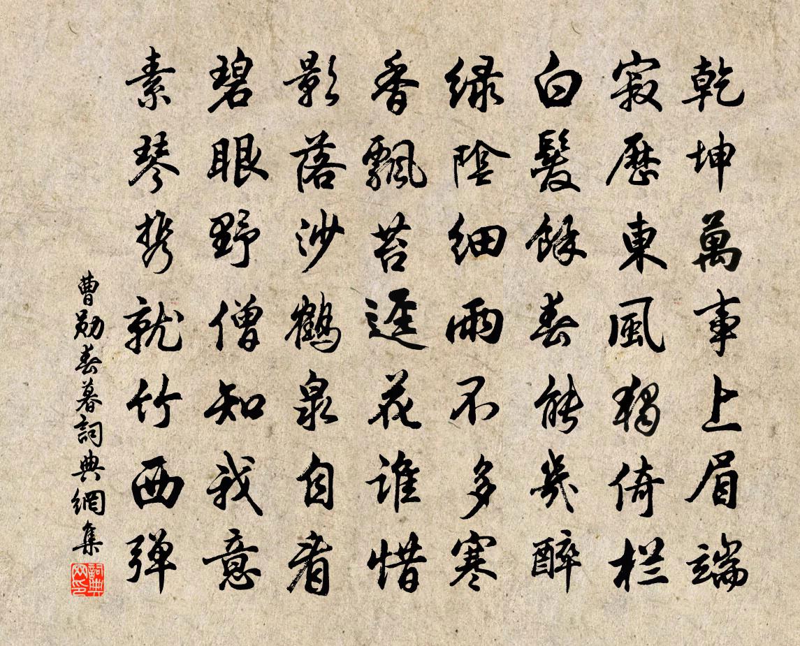 詩詞名句歷史字典書法欣賞書法字典國語詞典說文解字康熙字典古漢語字典標 題 作 者 詩 句 春暮作者:曹勛 朝代:宋代春暮原文乾坤萬事上眉端,寂歷東風獨倚欄。白髮余春能幾醉,綠陰細雨不多寒。香飄苔逕花誰惜,影落沙鶴泉自看。碧眼野僧知我意,素琴攜就竹西彈。詩詞問答問:春暮的作者是誰?答:曹勛問:春暮寫於哪個朝代?答:宋代曹勛春暮書法欣賞春暮書法作品詩詞推薦偈頌四十二首釋祖先〔宋代〕首夏初臨,薰風乍扇。急景如梭,萬化千變。惟有拄杖子,黑輪皴,沒思算。解道廚庫揖僧堂,三門朝佛殿。寄星子令柯季立陳舜俞〔宋代〕慣見江湖賤逐臣,去尋岩穴或相親。不知金馬曾為客,猶得銅章肯借人。夜夜水聲隨枕簟,時時林色上衣巾。題詩維摩贊釋可湘〔宋代〕諳菩薩之法式,現居士之儀形,妝如來名。跳下妙喜世界,憫眾生苦,示疾毗耶離城。萬化出於神變,一喙猶如建代簡答次中見留孔武仲〔宋代〕詩夸洞庭湖,蓋舉其粗爾。自此稍南行,更有瀟湘水。瀟湘如此流,淺深清見底。吾邑在其旁,桑麻百餘里。民經馬嵬驛李覯〔宋代〕六軍剛要非楊妃,空使君王血淚垂。何事國忠誅死後,不將林甫更鞭屍。揚步趙蕃〔宋代〕竟日人行絕,惟聞鳥語多。忽逢樵婦斧,更聽牧兒歌。桂枝香佚名〔宋代〕西鳳滿目。漸院落悄清,愁近銀燭。多少蟲書墮翠,又隨波縠。姮娥半露扶疏影,向虛檐、似知幽獨。浦鴻聲斷,吊盧殷孟郊〔唐代〕詩人多清峭,餓死抱空山。白雲既無主,飛出意等閒。久病床蓆屍,護喪童僕孱。故書窮鼠齧,狼藉一室間。君歸將至韶州先寄張端公使君借圖經韓愈〔唐代〕曲江山水聞來久,恐不知名訪倍難。願借圖經將入界,每逢佳處便開看。以近詩寄丘運使趙蕃〔宋代〕古貨自難買,良工徒苦心。誰能明致力,於此是知音。門第成乖隔,江湖阻滯淫。寄書因有使,還得附微吟。小圃雨霽宋庠〔宋代〕風雨殘秋罷,年芳遂悄然。黃花沉暮蝶,蒼柳嘯孤蟬。霽日高彌淡,曛霞冷不鮮。忽聞雙鶴唳,心斷故谿田。高駢、薛濤佚名〔唐代〕口,有似沒量斗。(高駢)川,有似三條椽。(薛濤)與謝尚書莊三聯句鮑照〔南北朝〕霞輝兮澗朗。日靜兮川澄。風輕桃欲開。露重蘭未勝。水光溢兮松霧動。山煙疊兮石露凝。掩映晨物彩。連綿夕羽劉無言餉茶帖贊岳珂〔宋代〕筆勢之偉,筆意之詣,筆法之粹,是三者固定足以名家而無愧矣。於虖,佑陵天縱八體,公蒙識拔,獨在初歲,亦歸剡五首釋行海〔宋代〕處處溪山處趣真,不曾富貴不曾貧。夢中覓句渾如醒,秋後看花亦似春。未許黃金酬苦節,只應白鳥伴閒身。門前幽居陸游〔宋代〕雨霽雞棲早,風高雁陣斜。園丁刈霜稻,村女賣秋茶。缺井磨樵斧,枯桑系釣槎。客來那用問,此是放翁家。悼剡姊蘇泂〔宋代〕庭闈訊息判沉沉,雁序殊鄉缺嗣音。擇對漫言雙易姓,何人堪托一分心。孤魂寂寞丘中土,庶子凋零地下金。沒固興國軍晚春簡吳提乾戴復古〔宋代〕幾夜林間哭杜鵲,東風又作落花天。青春不覺過三月,白髮誰能滿百年。日射江波光閃閃,天連菸草碧芊芊。異鄉栽松峴楊備〔宋代〕聳壑凌霄色共蒼。森然萬樹約千行。劉郎大廈尋顛覆,應是其間少棟樑。偈頌一百四十一首釋師範〔宋代〕今朝正月一,只是尋常日。就中殊異處,遍界鋪銀色。名句推薦將在外,君命有所不受畢沅《續資治通鑑·元紀·元紀三十》 大丈夫生居天地間,豈能鬱郁久居人下!羅貫中《三國演義·第九回》 野渡花爭發,春塘水亂流。李嘉祐《送王牧往吉州謁王使君叔》 夜寒驚被薄,淚與燈花落納蘭性德《菩薩蠻·蕭蕭幾葉風兼雨》 黃鶴一去不復返,白雲千載空悠悠。崔顥《黃鶴樓 / 登黃鶴樓》 昨風一吹無人會,今夜清光似往年。白居易《八月十五日夜湓亭望月》 紅樓隔雨相望冷,珠箔飄燈獨自歸。李商隱《春雨》 白毛浮綠水,紅掌撥清波駱賓王《詠鵝》 商葉墮乾雨,秋衣臥單雲。孟郊《秋懷十五首》 勇,志之所以敢也。墨子《墨子·40章 經(上)》