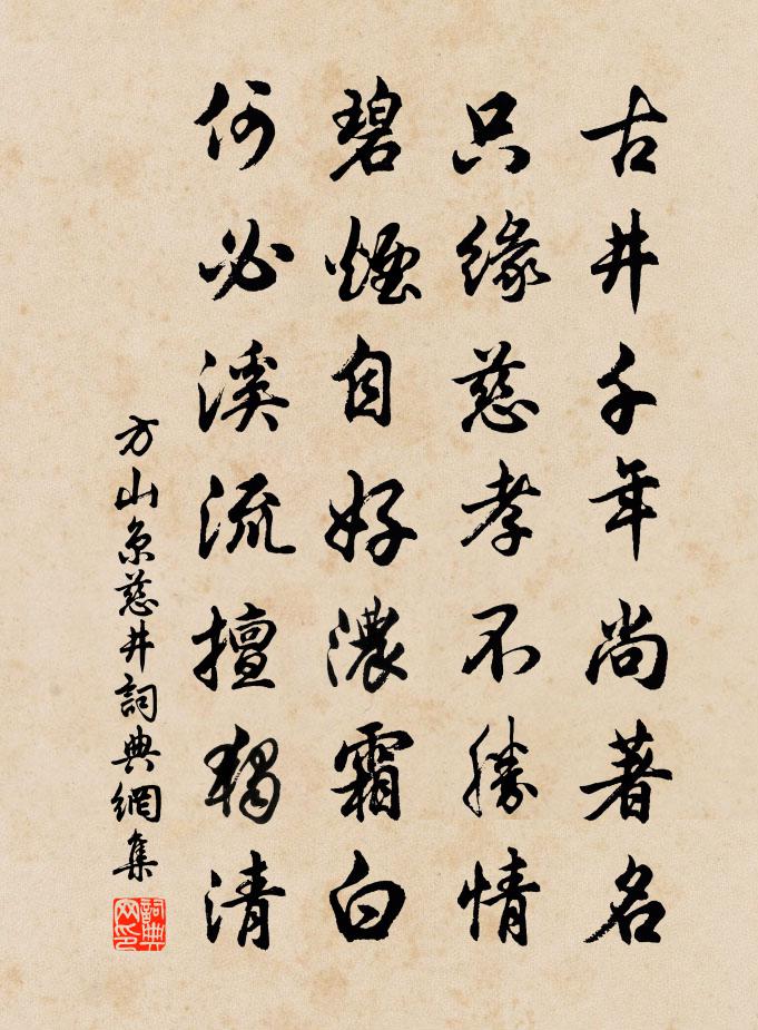 詩詞名句歷史字典書法欣賞書法字典國語詞典說文解字康熙字典古漢語字典標 題 作 者 詩 句 慈井作者:方山京 朝代:宋代慈井原文古井千年尚著名,只緣慈孝不勝情。碧煙自好濃霜白,何必溪流擅獨清。詩詞問答問:慈井的作者是誰?答:方山京問:慈井寫於哪個朝代?答:宋代方山京慈井書法欣賞慈井書法作品詩詞推薦減字木蘭花 庚申六月三日,同耶律君璋、趙陸文圭〔元代〕璋不飲,命歌者歌以勸之雙鬟聳翠。低護金蓮裙*地。鐵石心腸。無奈梅花一點香。歌聲梁繞。流水泠泠雲杳杳。次韻子都兄見寄李洪〔宋代〕五色徒夸補袞工,百年痴作蠹書蟲。塵纓黧貌慚衰相,窾木號風逼歲窮。酌酒漫為蛇畫足,覆蕉今悟鹿成空。江村再游龍潭李彌遜〔宋代〕密霧開深徑,幽奇得重行。水光沉樹色,人語亂泉聲。仙去山容寂,龍游雨陣輕。誰能築雲室,千古共淒清。龍洞陸游〔宋代〕峭崖磨天如立壁,柟根橫走松倒植。呀然一岫驚倒人,空洞坡阤三百尺。幽陰宜為異物托,角爪痕存猶可識。想當句黃卓〔宋代〕延平商閣瞰雙溪,神劍光芒沖斗極。留贈上官常用孔武仲〔宋代〕河梁欲上手重攜,冷語南湖百尺堤。看發了青雲開羽翼,莫羞黃綬走塵泥。文章炳蔚元摛鳳,鋩刃縱橫暫割雞毛。得旨與郡歸自浙東余成卿王貫之葉德還追送至虞儔〔宋代〕懷抱連宵得好開,莫愁波浪與塵埃。中年已是難離別,此地何妨數往來。送我扁舟寧作遠,喚人歸鳥苦相催。邈然贈劉進父監廟四首趙蕃〔宋代〕退士今安有,微官詎足旌。茹蔬知味薄,不飲見神清。要是高其事,況堪詩有聲。淮南人物論,是亦一權衡。觀海胡仲弓〔宋代〕海天雲氣入微茫,遙認潮頭數點檣。眼界只消如許闊,不知何處是東洋。玉女搖仙佩王哲〔元代〕終南一遇,*邑相逢,兩次凡心蒙滌。便話修持,重談調攝,莫使暗魔偷適。養氣全神寂。稟逍遙自在,閒閒遊歷滌愫鄭樵〔宋代〕賢者不飽食,何為仕與農。聖人詭時,何為世所宗。顯晦既有因,盛衰亦偶逢。先秋而後春,俄頃自雍容。偶題三首朱熹〔宋代〕門外青山翠紫堆,幅巾終日面崔嵬。只看雲斷成飛雨,不道雲從底處來。擘開蒼峽吼奔雷,萬斛飛泉湧出來。斷梗哭胡處士曹松〔唐代〕丘中久不起,將謂詔書來。及見凌雲說,方知掩夜台。白衣歸北路,玄造亦遺才。世上亡君後,詩聲更大哉。送周起宗經乾赴桂林帥幕楊萬里〔宋代〕乃翁昔夢飛入月,東字分明篆銀闕。明朝占夢占者雲,一甲八人更何說。紹興大對奏集英,天風吹下臚傳聲。作者頌古釋道顏〔宋代〕法戰從來許克賓,掣旗奪鼓兩分明。直須盡法方無愧,老漢他年要話行。點絳唇(記夢)蕭允之〔宋代〕花徑相逢,眼期心諾情如昨。怕人疑著。佯弄鞦韆索。知有而今,何似留初莫。愁難托。雨鈴風鐸。夢斷燈花落。碧落洞(在英州下十五里。)蘇軾〔宋代〕槎牙亂峰合,晃蕩絕壁橫。遙知紫翠間,古來仙釋並。陽崖射朝日,高處連玉京。陰谷叩白月,夢中游化城。果然聽九座鈍庵禪師端午日外堂說法詩王邁〔宋代〕人在塵中醉玉蒲,師於瓶里瀉醍醐。傳來雙徑清香遠,喚起叢森病骨蘇。炳炳毫光爭日月,琅琅舌本有江湖。他年為崇辨法澐師作“林野”二大字楊萬里〔宋代〕天下何人不愛官,棄官出世古今難。向來一覺鈞天夢,便作林居野處看。瓜洲謝李德載寄蜂兒木瓜筆張耒〔宋代〕瓜洲蕭索秋江渚,西風江岸殘紅舞。津亭永夜守青燈,客睡朦朧聽江雨。青罇曉酌遣懷抱,但恨鬱郁將誰語。敲門名句推薦九曲黃河萬里沙,浪淘風簸自天涯。劉禹錫《浪淘沙·九曲黃河萬里沙》 何處是歸程?長亭連短亭。李白《菩薩蠻·平林漠漠煙如織》 寒燈思舊事,斷雁警愁眠。杜牧《旅宿》 居而安,動而變,可以佐王矣。王通《中說·卷七·述史篇》 東君也不愛惜,雪壓霜欺。晁沖之《漢宮春·梅》 一家之計在於和,一生之計在於勤。佚名《增廣賢文·上集》 只恐夜深花睡去,故燒高燭照紅妝。蘇軾《海棠》 少年聽雨歌樓上。紅燭昏羅帳。蔣捷《虞美人·聽雨》 水繞陂田竹繞籬,榆錢落盡槿花稀。張舜民《村居·水繞陂田竹繞籬》 仁暴者,皆亡國者也。韓非及後人《韓非子·八說》
