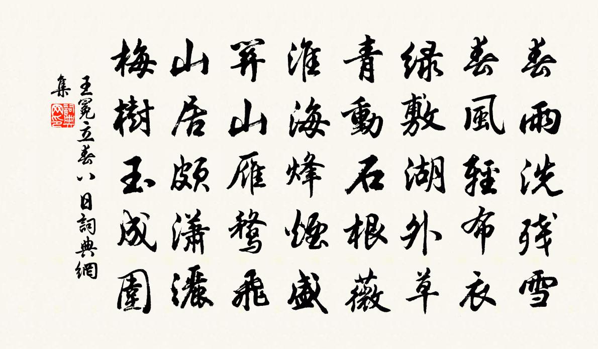 春雨洗殘雪,春風輕布衣。綠敷湖外草,青動石根薇。