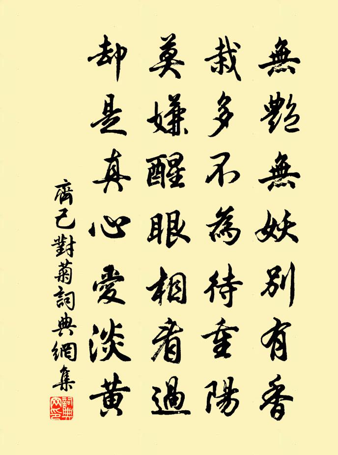 無艷無妖別有香,栽多不為待重陽。莫嫌醒眼相看過,卻是真心愛淡黃。
