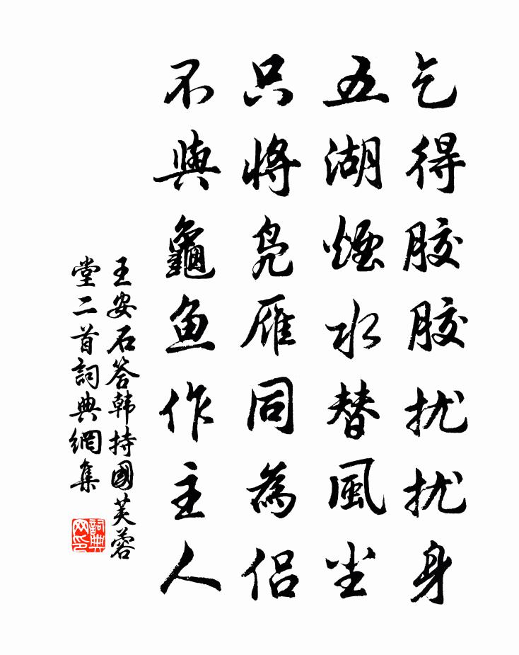 乞得膠膠擾擾身,五湖煙水替風塵。只將鳧雁同為侶,不與龜魚作主人。