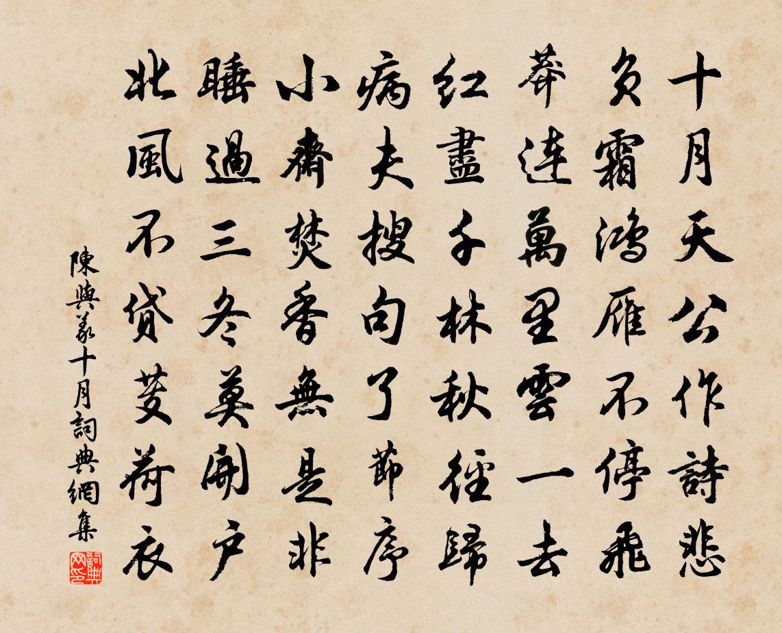 十月天公作詩悲,負霜鴻雁不停飛。莽連萬里雲一去,紅盡千林秋徑歸。