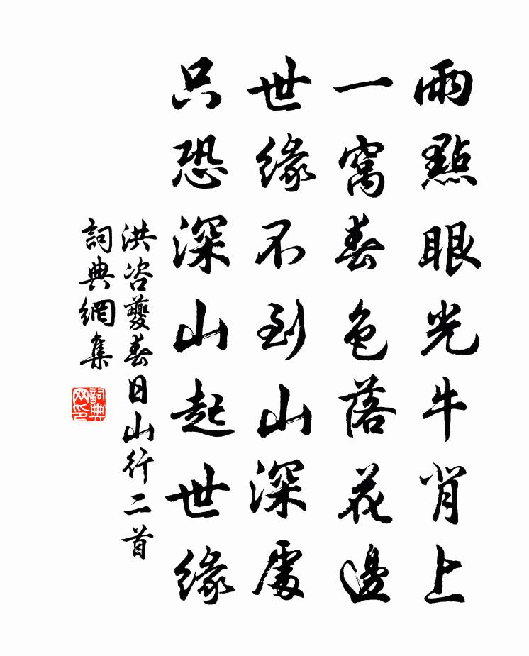 詩詞名句歷史字典書法欣賞書法字典國語詞典說文解字康熙字典古漢語字典標 題 作 者 詩 句 春日山行二首作者:洪咨夔 朝代:宋代春日山行二首原文雨點眼光牛背上,一窩春色落花邊。世緣不到山深處,只恐深山起世緣。詩詞問答問:春日山行二首的作者是誰?答:洪咨夔問:春日山行二首寫於哪個朝代?答:宋代洪咨夔春日山行二首書法欣賞春日山行二首書法作品詩詞推薦寄遠曲用唐人張籍韻楊冠卿〔宋代〕江南淡盪煙波暖,蒲萄淥漲春江滿。日暮汀洲採白苹,芹芽出水蘭心短。美人去矣隔湘江,誰其贈我明月璫。呂洞賓贊李昴英〔宋代〕碧其風巾,皓其雲袍。六合飛遨,仙中之豪。武陵春 王小先問禪劉志淵〔元代〕法界一真心正住,當體滅諸緣。內外輝輝體現前。無地亦無天。取相於禪禪復遠,禪性月沉淵。動靜俱無鎮湛然。孟津歲晚十首宋庠〔宋代〕渥赭隨顏罷,飛霜入鬢新。夜壺寒展刻,冬晷急馳輪。名美誠堪徇,身閒我獨親。聊持一樽酒,不為畫蛇人。離武林方翥〔宋代〕大江東接海漫漫,海氣江風吹雨寒。才出國門三十里,便成回首望長安。春日郊行和郭希魯二首王之道〔宋代〕坐對煙江疊嶂圖,何如門外翠屏紆。尋芳敢擅攜筇去,命友應從折簡呼。酒里光陰閒活計,詩餘情思靜功夫。浪吟河傳秦觀〔宋代〕恨眉醉眼,甚輕輕覷者,神魂迷亂。常記那回,小曲闌乾西畔,鬢雲松、羅襪剗。丁香笑吐嬌無限。語軟聲低,道溧陽邂逅胡安豐赴官送以二詩趙蕃〔宋代〕丈人筆力老波瀾,平處猶能敵建安。暫為時清掌邊角,卻來夜直上金鑾。悵儂三徑歸來引,翻作五溪行路難。邂逅戲書旅況方回〔宋代〕垢癢頻搔虱欠烘,泥行草宿嘆匆匆。欲紉衣苦無針線,每煮羹難得菜蔥。險惡固宜防賊盜,愚頑莫可恕奴僮。閒人偈頌四十一首釋普寧〔宋代〕同飲龍淵,同依師席。切瑳琢磨,相滋相益。分袂東西,各提祖令。越漠來投,心膽傾盡。執別恰恰一擊,千里俯晚登涌金門城望湖方回〔宋代〕煙昏日落更誰知,四十流年一餉時。水次梅花應獨笑,城頭老子尚能詩。畫船綠幕今如夢,雪鬢蒼顏只自悲。淡抹木蘭花/玉樓春晏幾道〔宋代〕念奴初唱離亭宴。會作離聲勾別怨。當時垂淚憶西樓,濕盡羅衣歌未遍。難逢最是身強健。無定莫如人聚散。已拼送韓希道移漕江東周必大〔宋代〕饋餉隨蕭不作難,秦淮今視漢秦關。天開虎踞龍蟠處,地近雞翹豹尾間。洗印先經三峽寺,觀風遍踏九華山。盡收句黃晦叔〔宋代〕大安婦翁舍,時來枕流眠。題豐城驛汪儀鳳〔宋代〕過盡長亭復短亭,修途隨處月同行。明朝買得扁舟去,兩岸匾化夾櫓聲。西江月佚名〔宋代〕翡翠枝頭晚萼,嬋娟月里飄香。春蘭秋蕙作尋常。不與夭桃朋黨。笑見深紅淺白,從教蝶舞蜂忙。風流標緻道家妝和周楚望張耒〔宋代〕宿雨琴生曉潤,琴繁雲滋暑琴陰。我居琴不葺,常苦積雨侵。果墜厭風惡,草沉知潦深。拳拳抱幽嘆,耿耿嬰煩襟天台梵才師長吉在都數以詩筆見授因答以轉句宋祁〔宋代〕第一多聞師子兒,碧雲餘力嗣工詩。盡把天光注言語,真將清氣入肝脾。送鑒禪人自天童之江心釋紹曇〔宋代〕東谷生涯徹骨貧,煩君說與了師兄。一從鳳宿龍巢後,寶殿無人步月明。空城雀陳陶〔唐代〕古城蒙蒙花覆水,昔日住人今住鬼。野雀荒台遺子孫,千年飲啄枯桑根。不隨海燕柏梁去,應無玉環銜報恩。近村名句推薦我最憐君中宵舞,道男兒到死心如鐵。辛棄疾《賀新郎·同父見和再用韻答之》 對酒當歌,強樂還無味。柳永《蝶戀花·佇倚危樓風細細》 為有雲屏無限嬌,鳳城寒盡怕春宵。李商隱《為有》 銀燭秋光冷畫屏,輕羅小扇撲流螢。杜牧《秋夕》 觀天下書未遍,不得妄下雌黃。顏之推《顏氏家訓·勉學篇》 東君也不愛惜,雪壓霜欺。晁沖之《漢宮春·梅》 居庸關上子規啼,飲馬流泉落日低。朱彝尊《出居庸關》 遼東小婦年十五,慣彈琵琶解歌舞。李頎《古意》 蠻姜豆蔻相思味。算卻在、春風舌底。吳文英《杏花天·詠湯》 上馬擊狂胡,下馬草軍書。陸游《觀大散關圖有感》